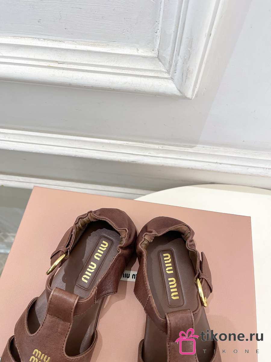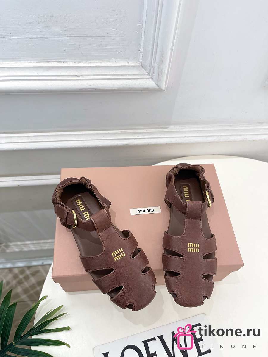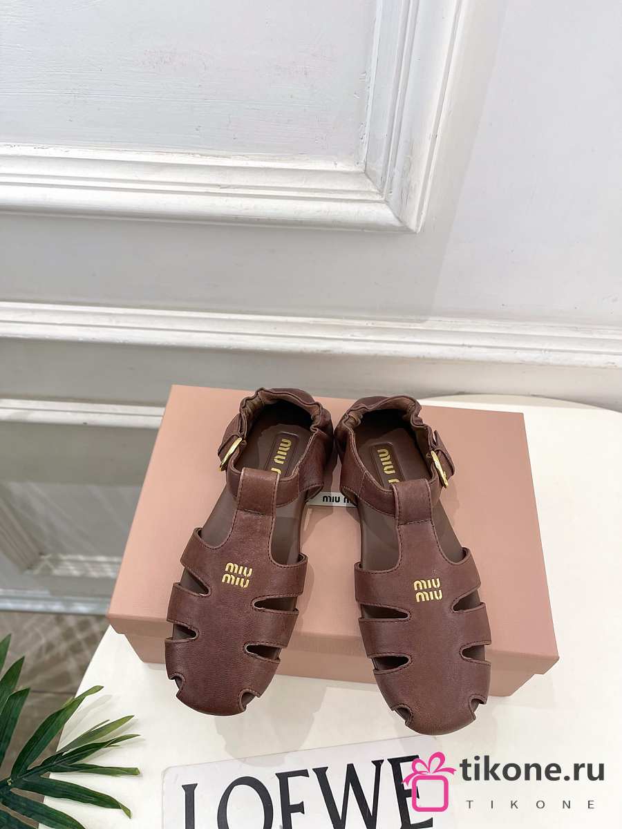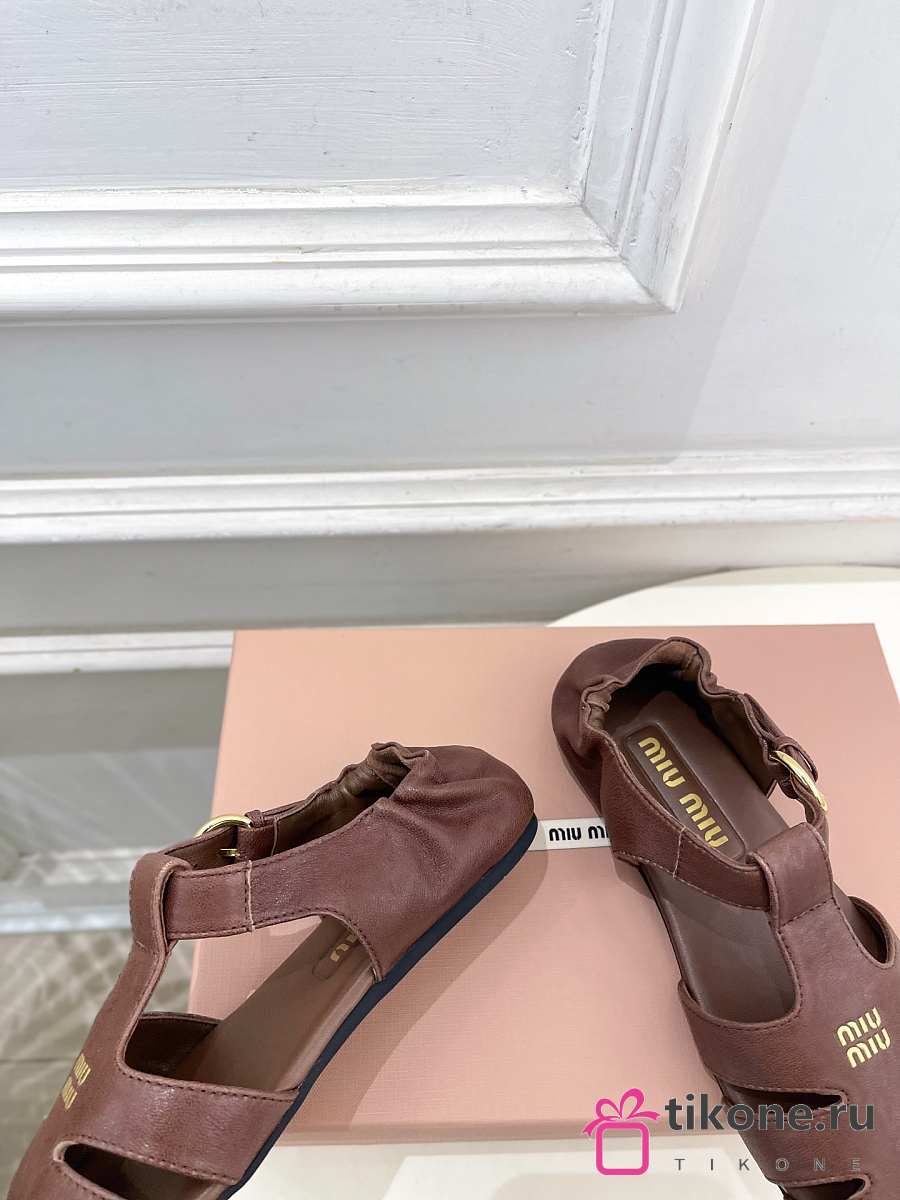 Miumiu Ruches Nappa Leather Fisherman's Sandals Briarwood