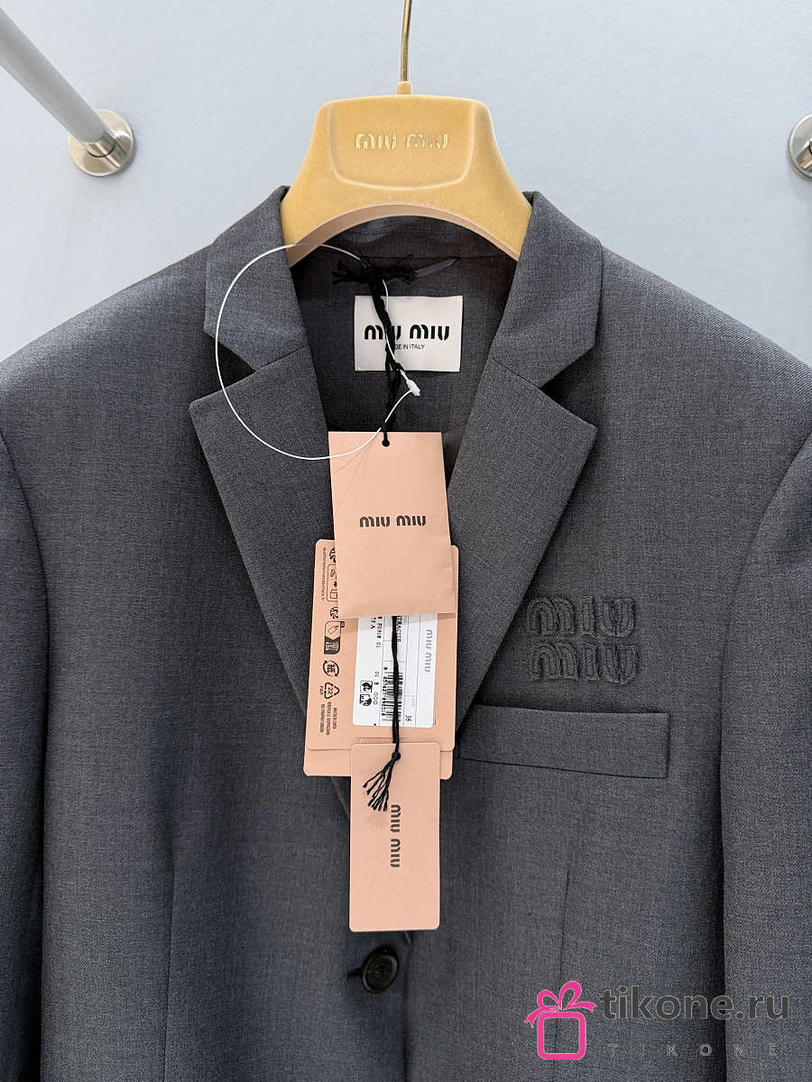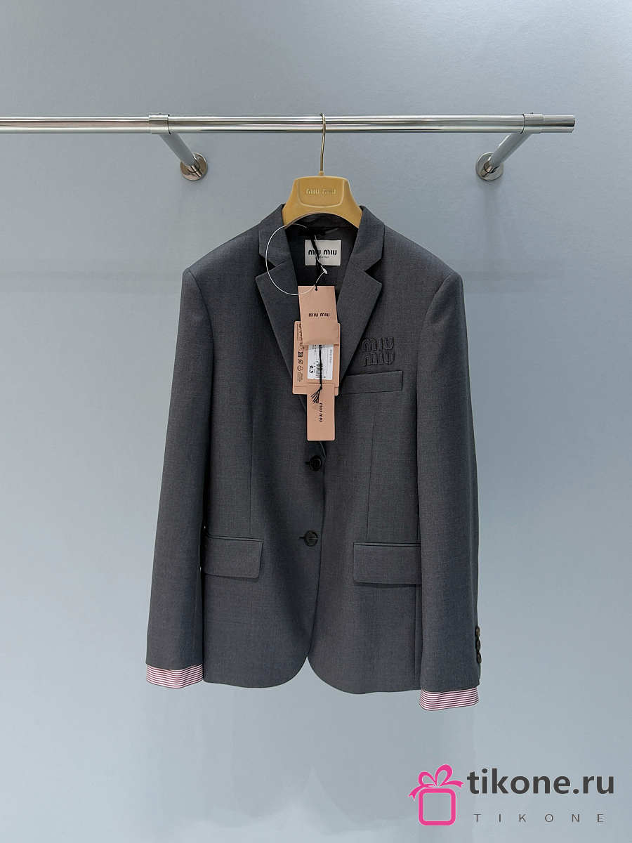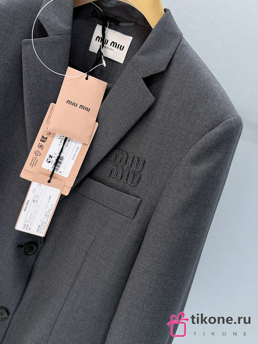Miumiu Single-breasted Gabardine Jacket Anthracite Gray