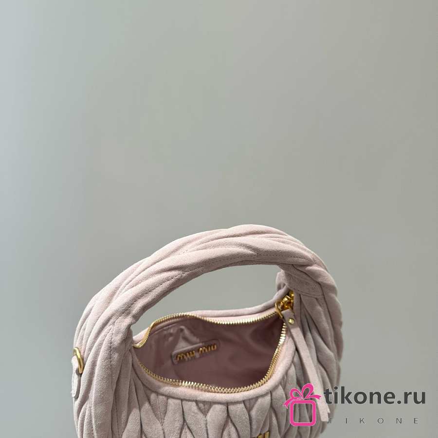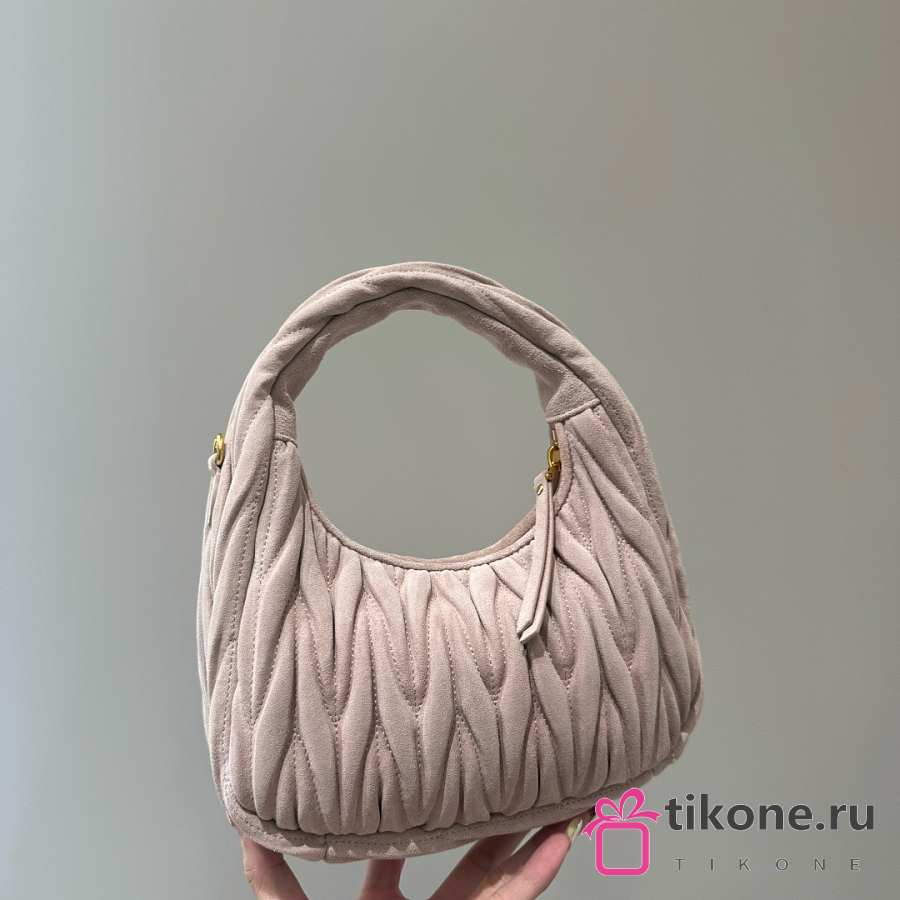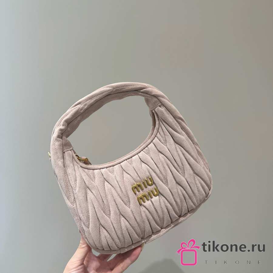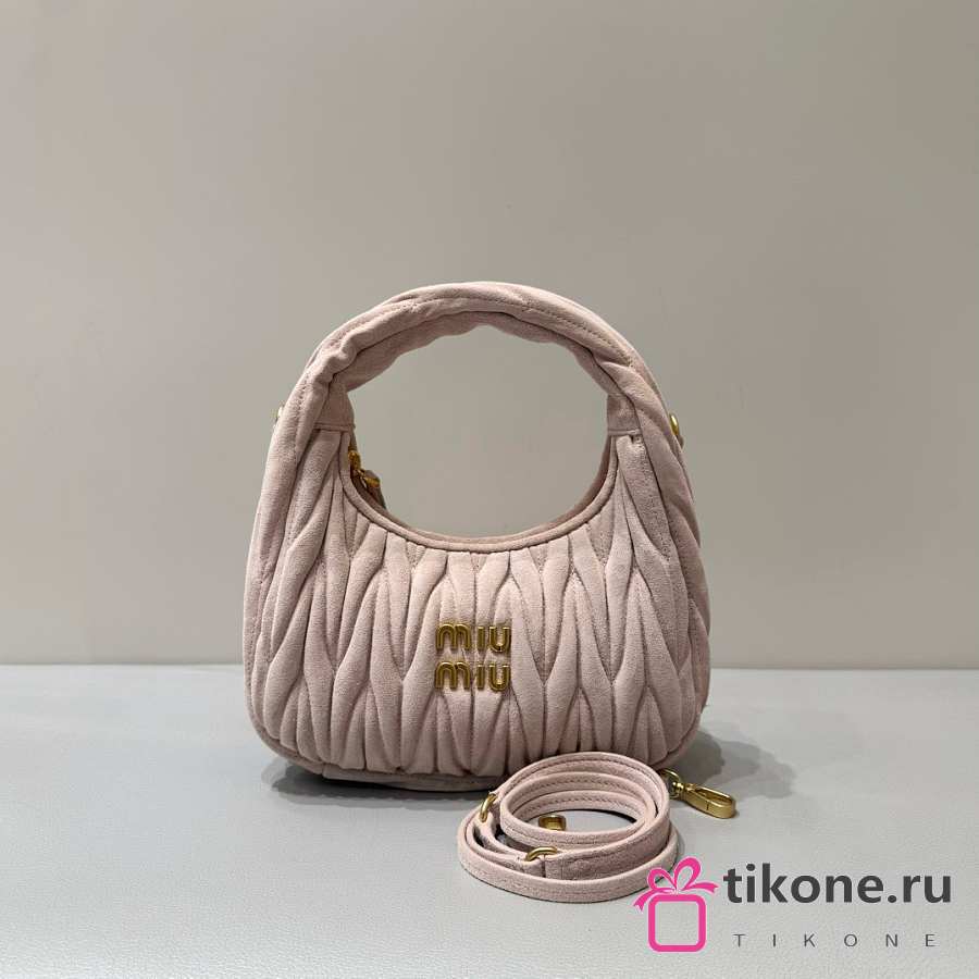Miumiu Small Wander Matelasse Suede Bag Peach 5BC125 - 20x17x6cm