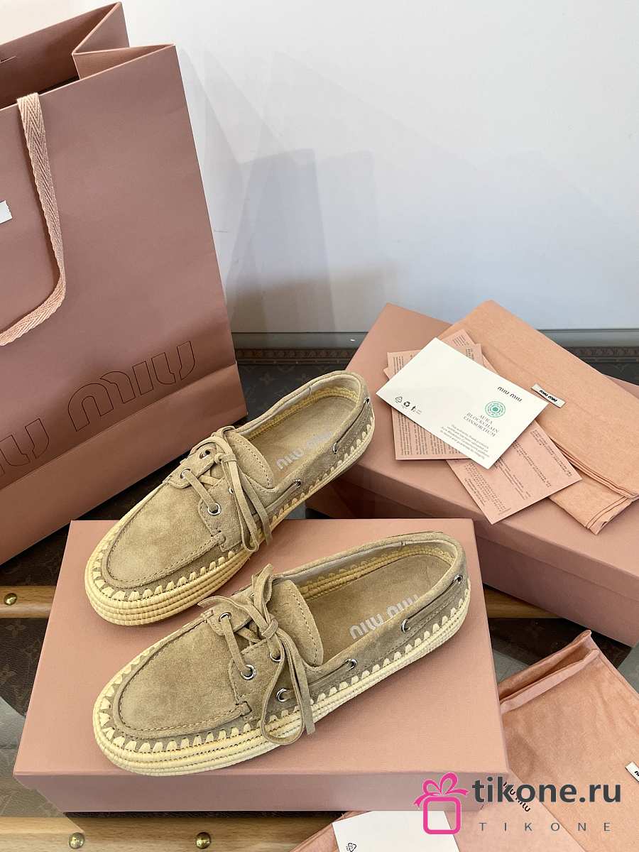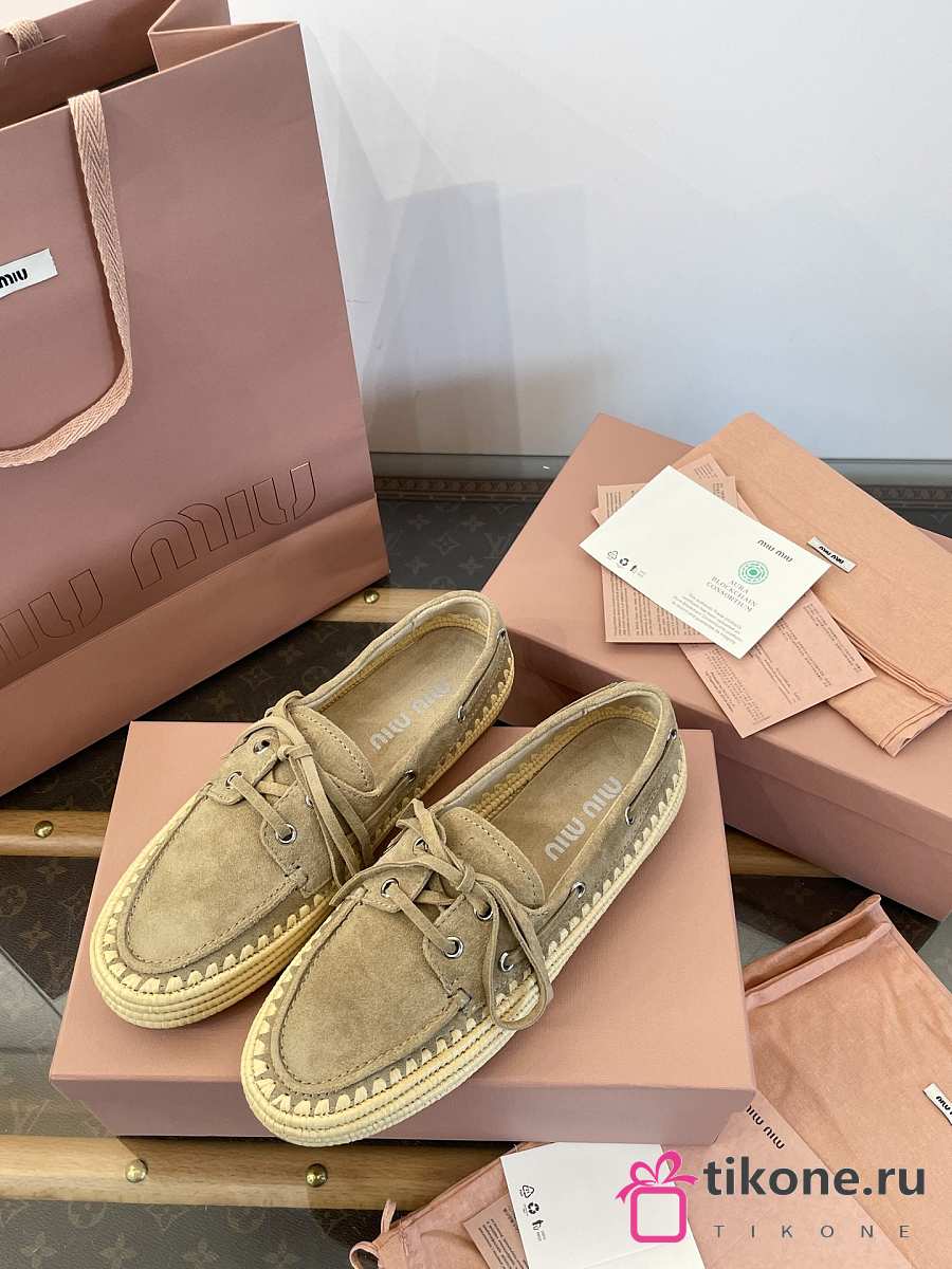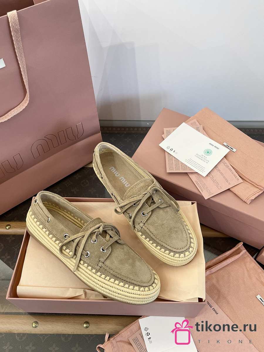 Miumiu Suede And Raffia Boat Shoes Ecru