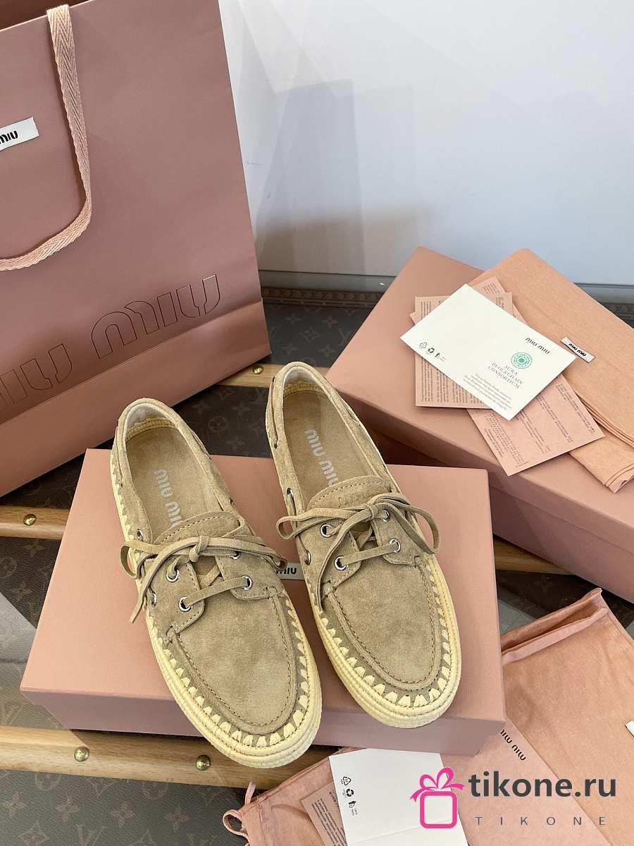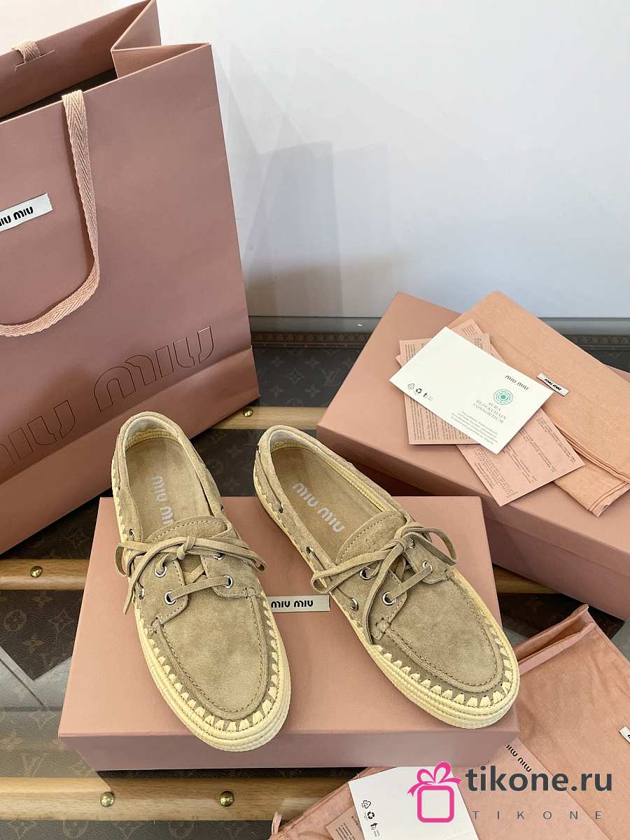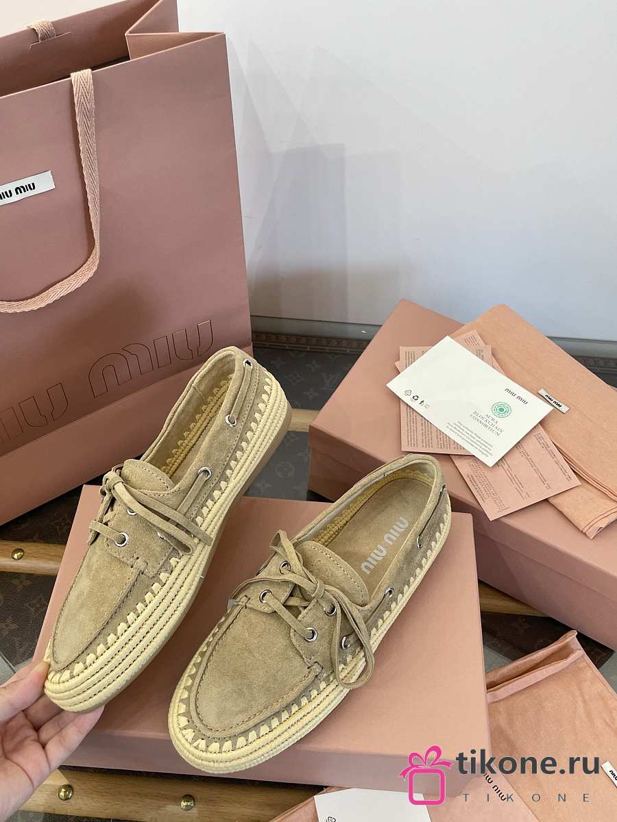 Miumiu Suede And Raffia Boat Shoes Ecru