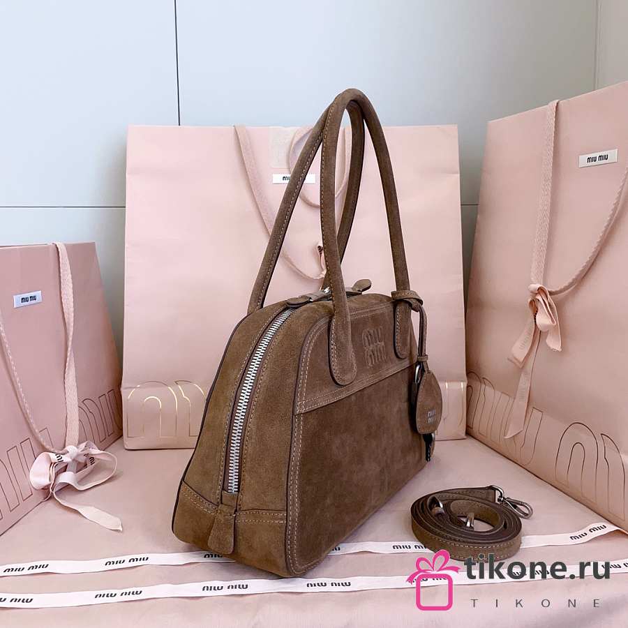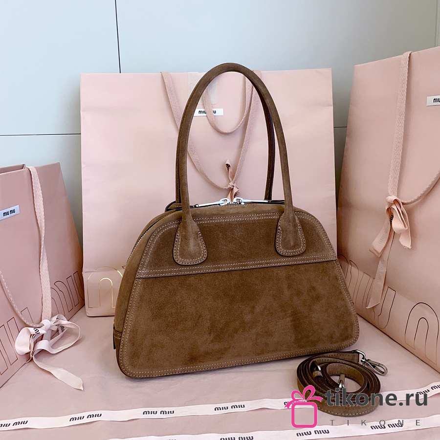 Miumiu Vivant Suede Bag Brown 5BB199 - 32x19.5x11cm