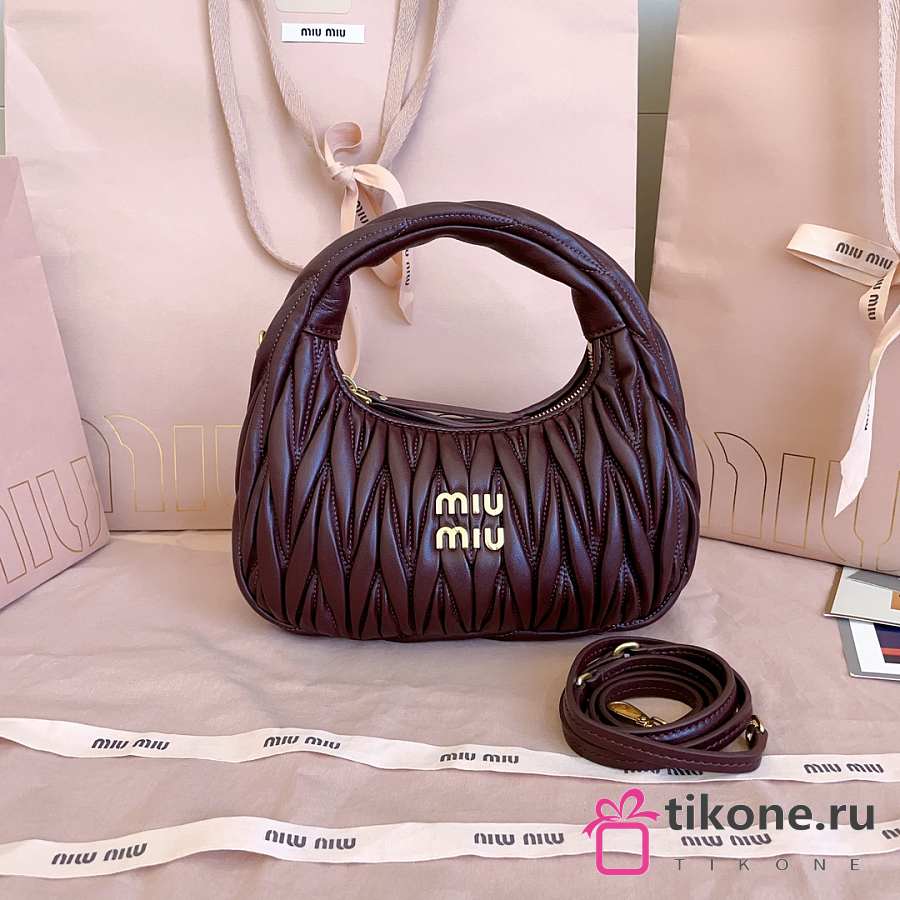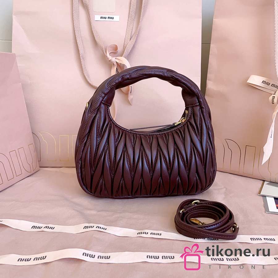 Miumiu Wander Matelasse Nappa Leather Hobo Bag Burgundy - 20x17x6cm