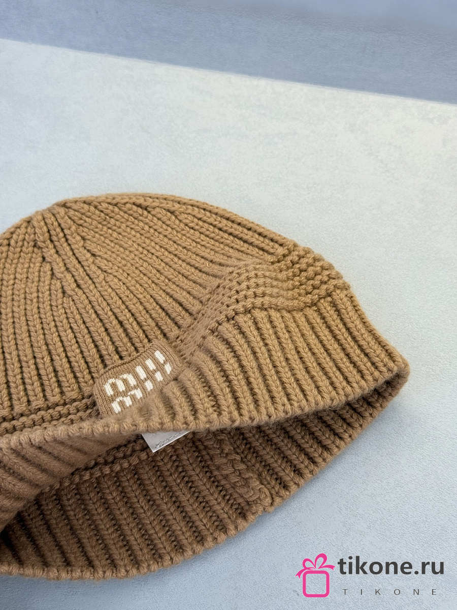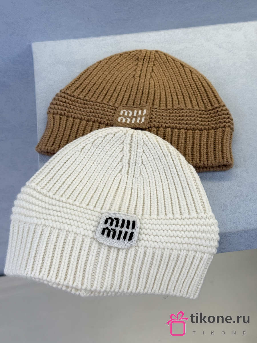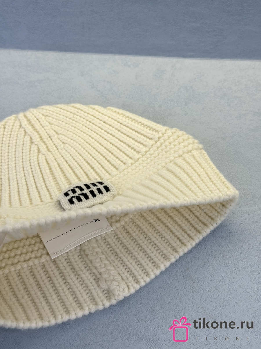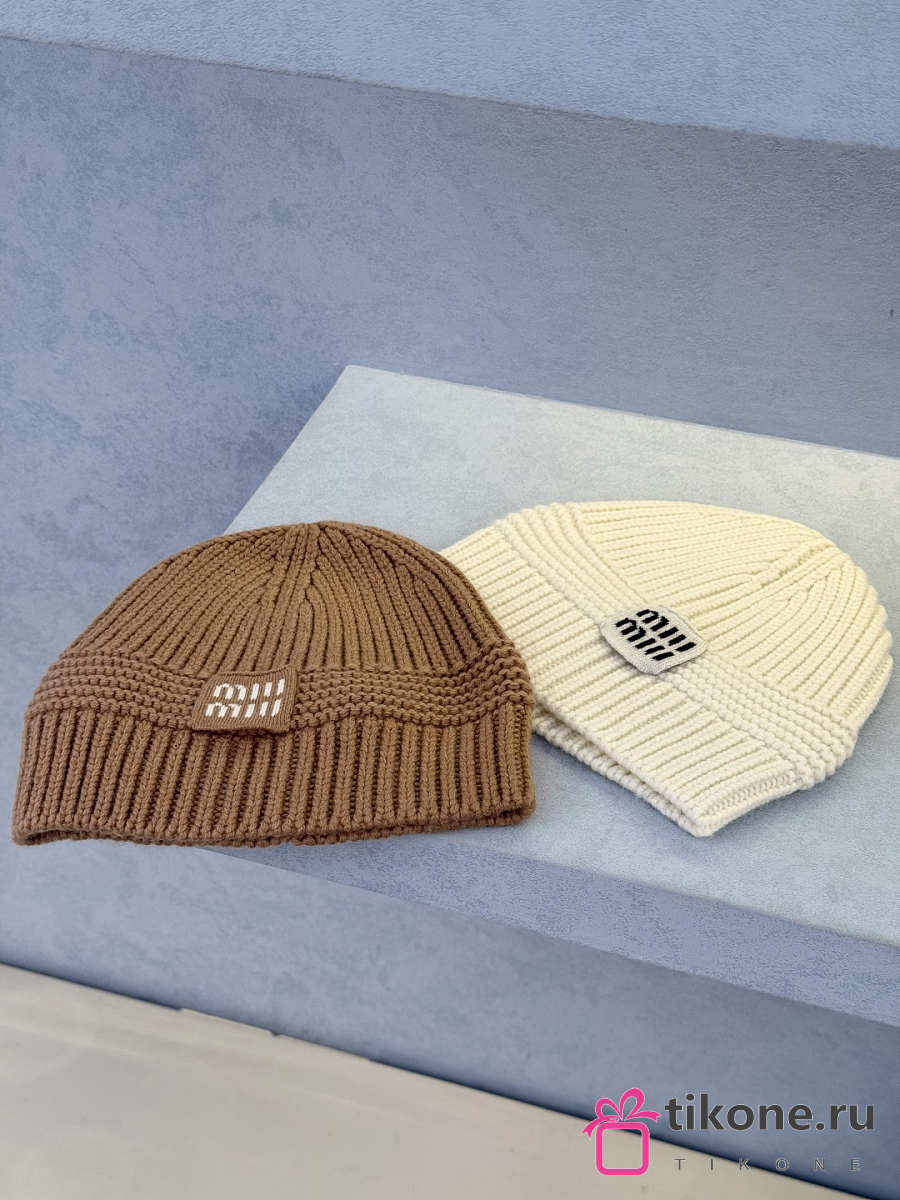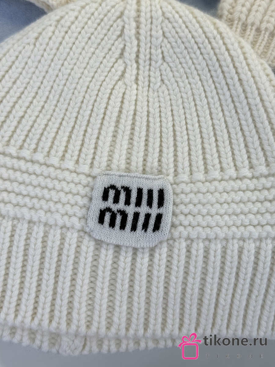 Miumiu Wool And Cashmere Beanie White/ Camel Brown