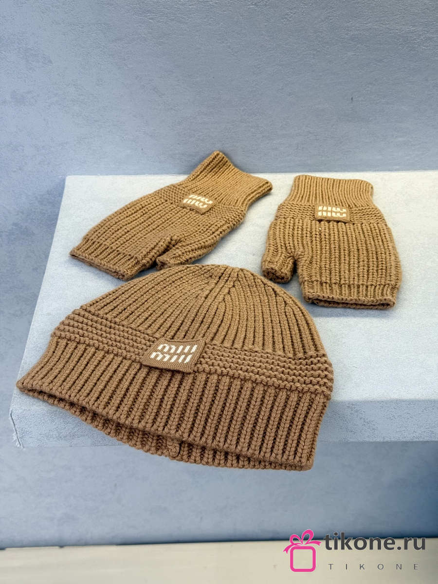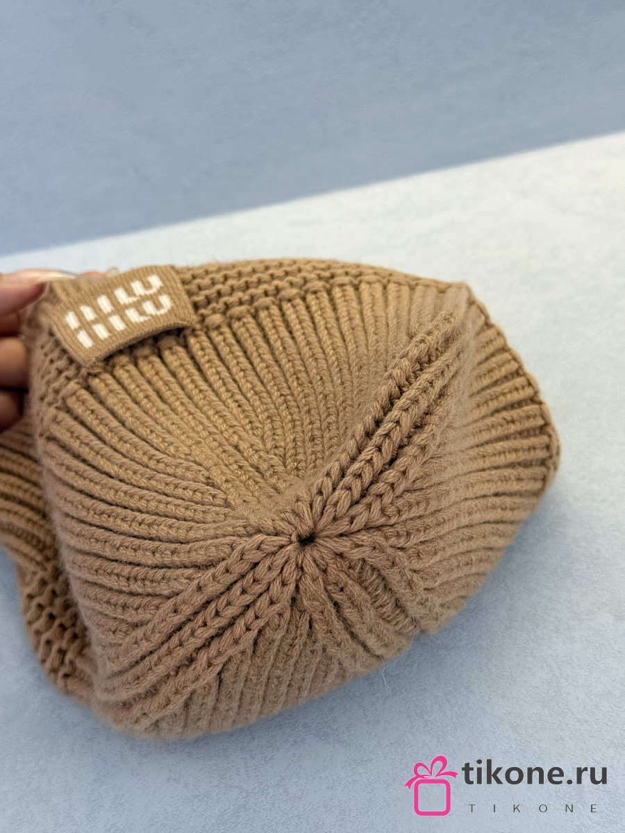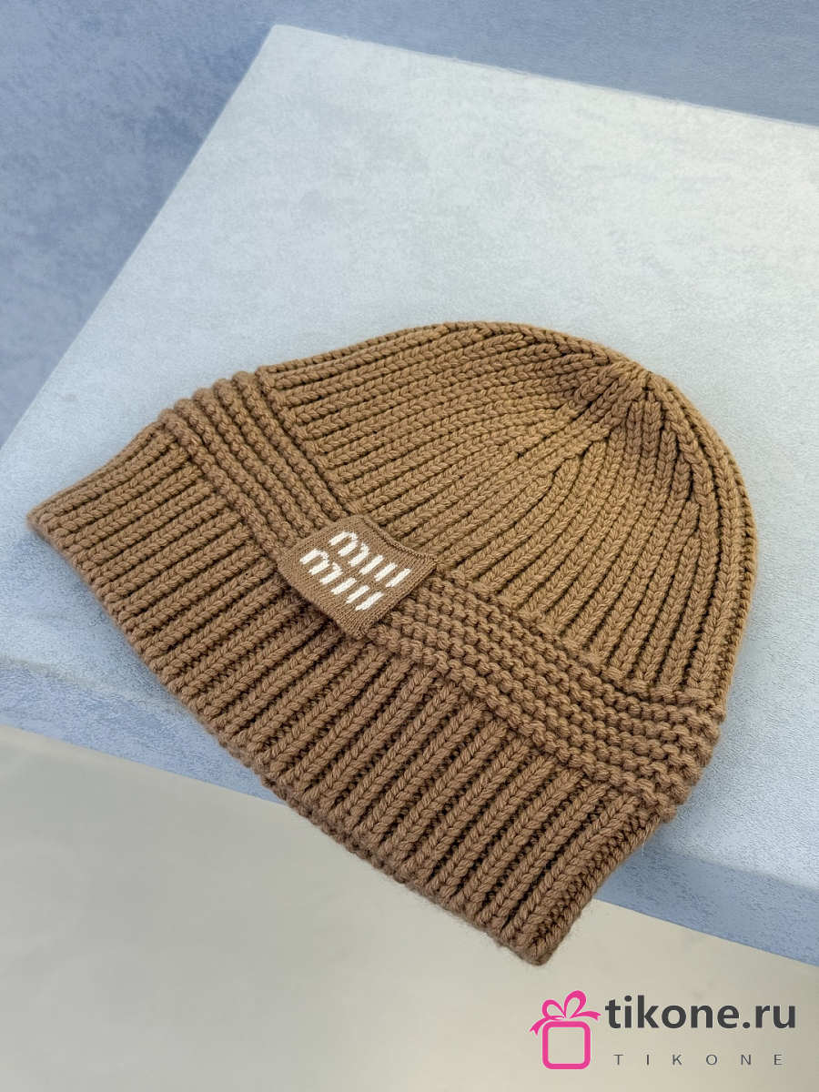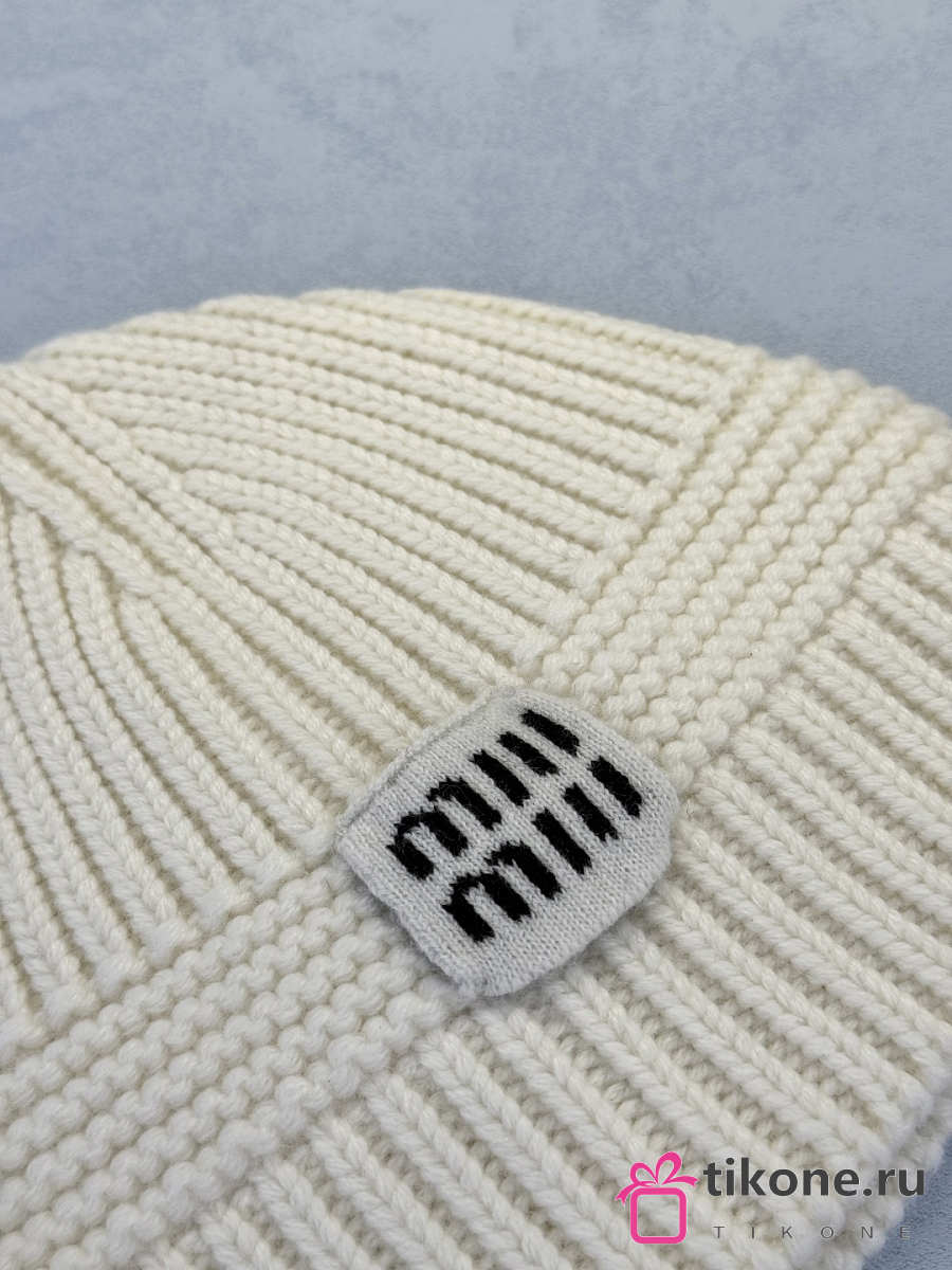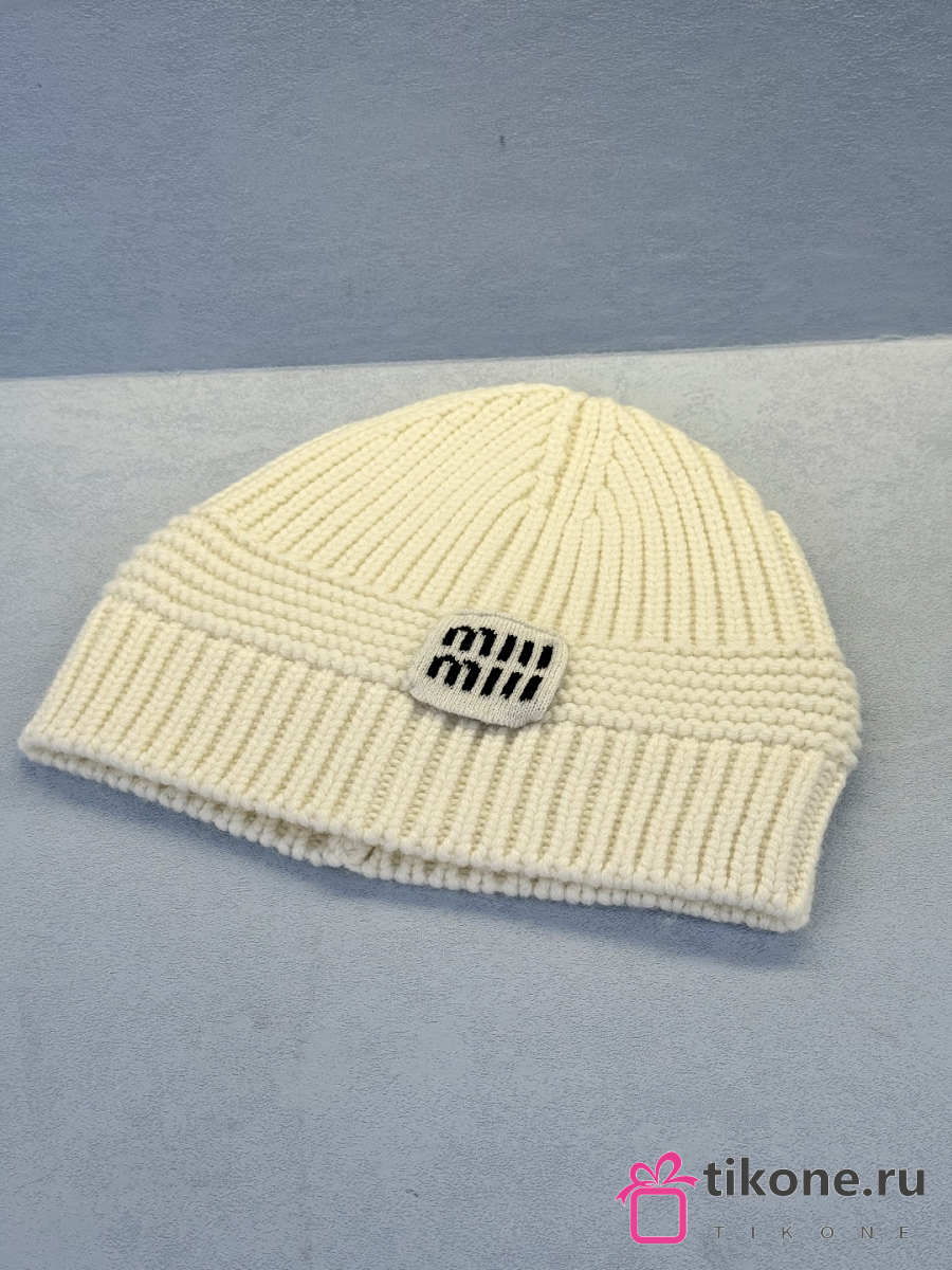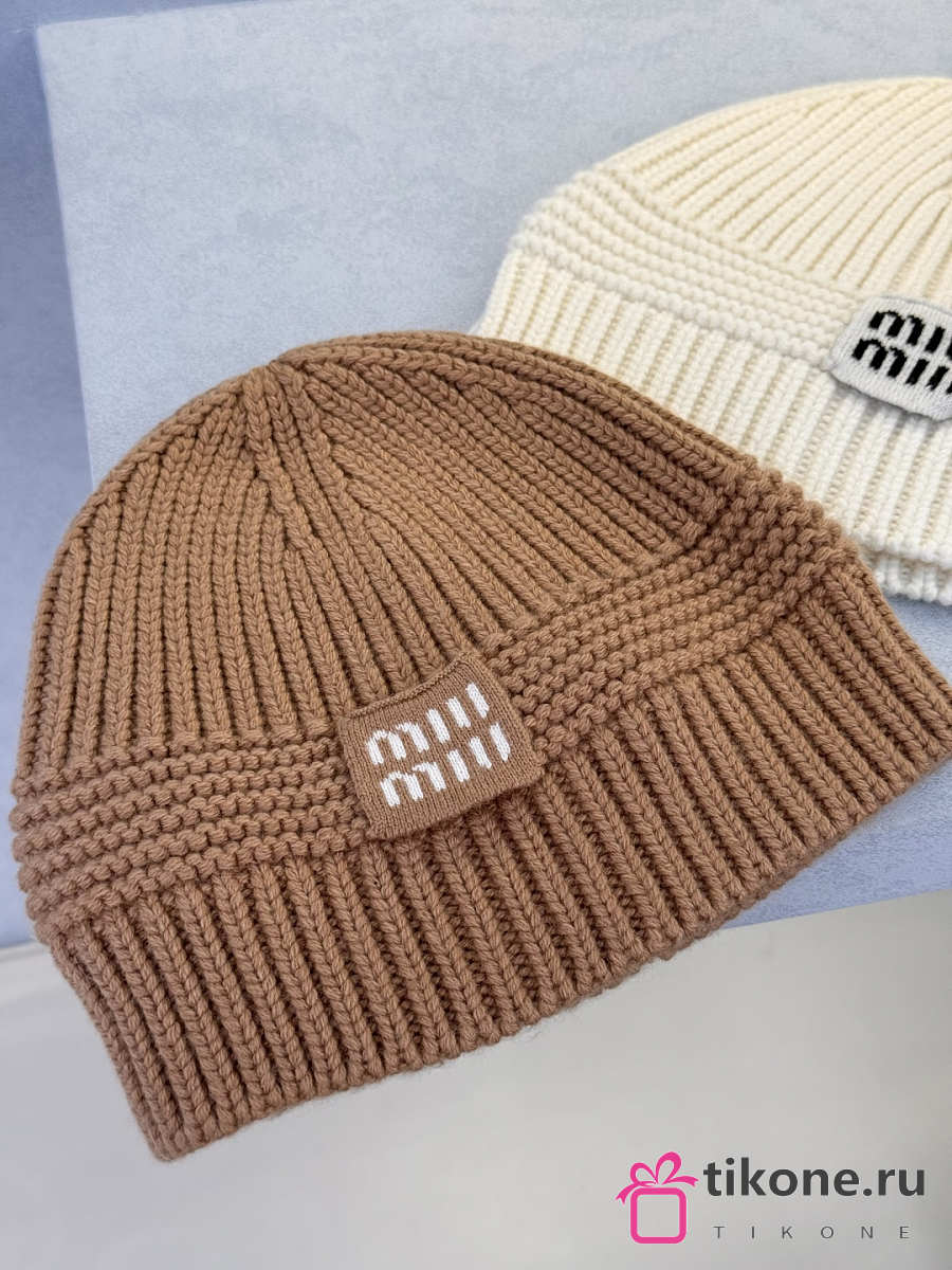 Miumiu Wool And Cashmere Beanie White/ Camel Brown