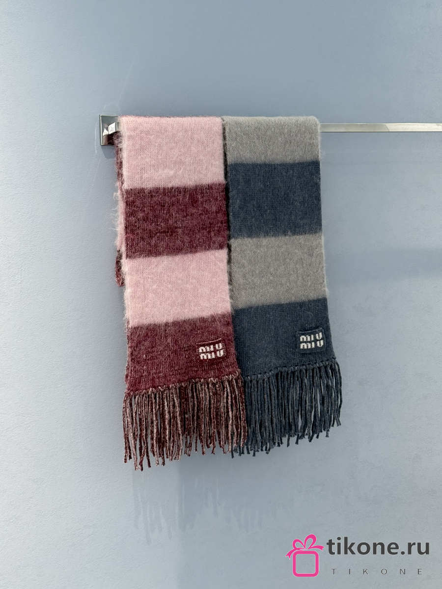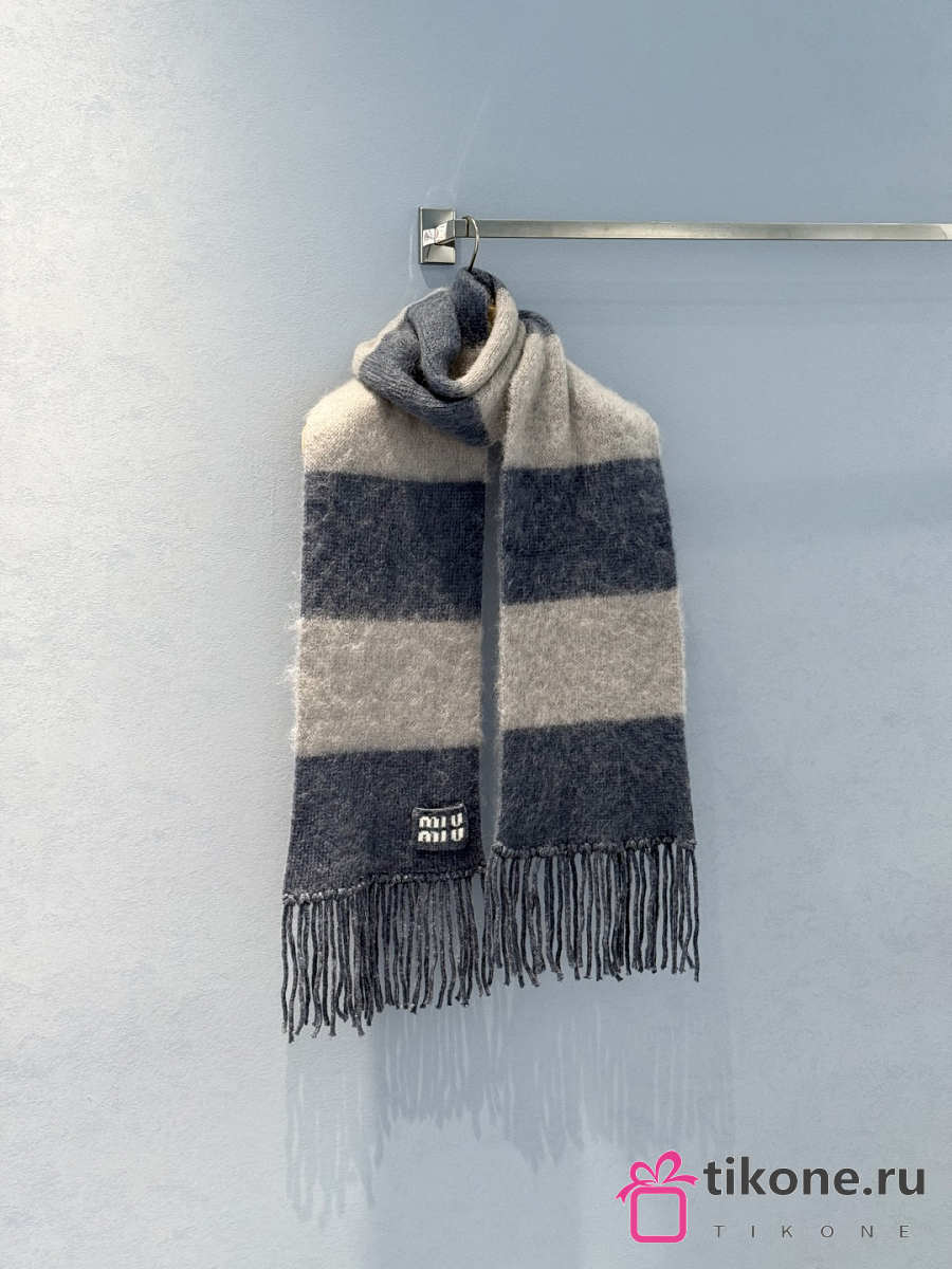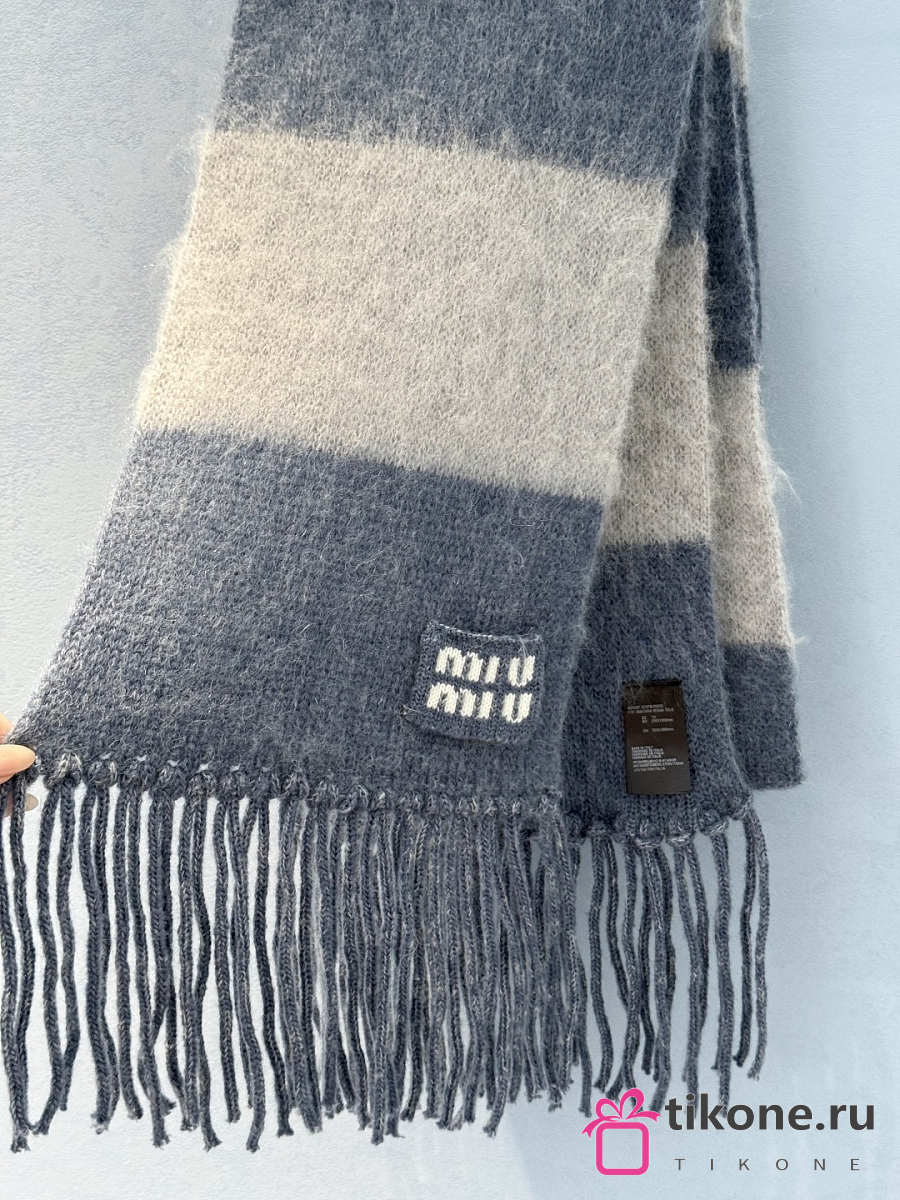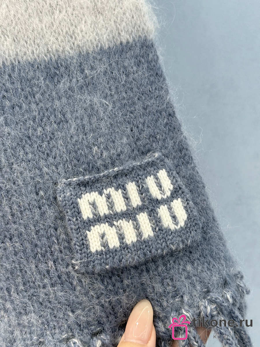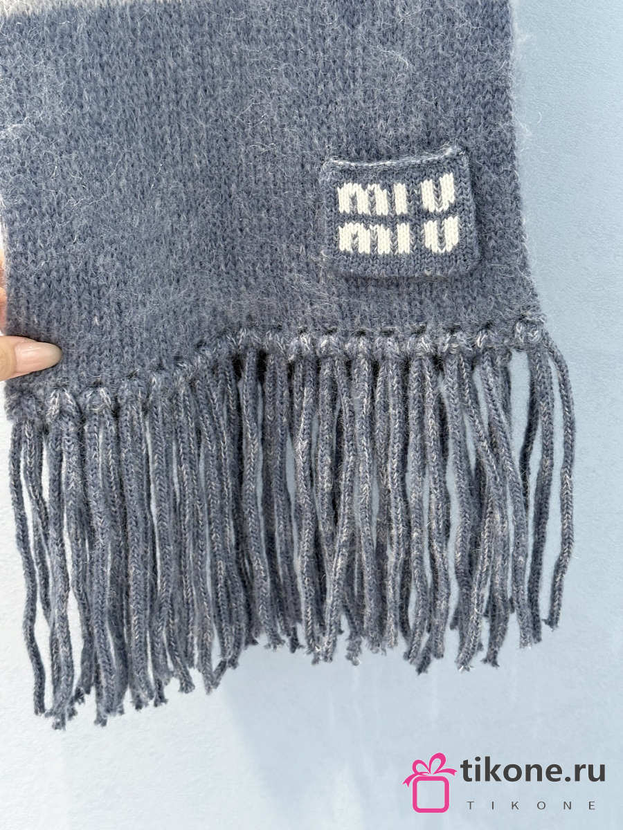 Miumiu Wool Scarf With Fringes Blue/Sky Blue