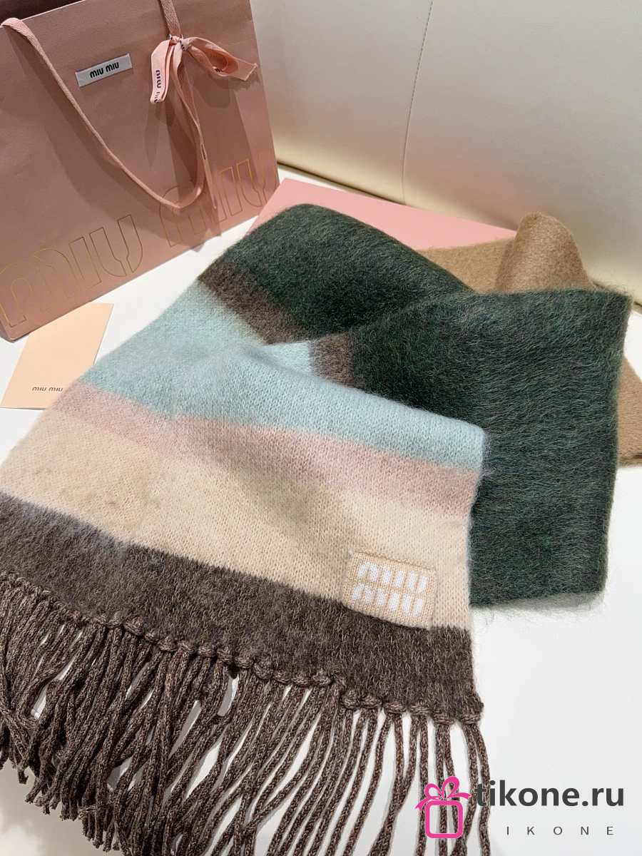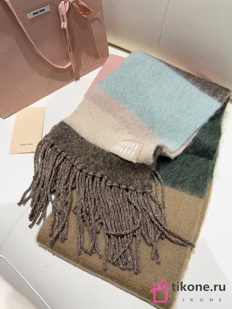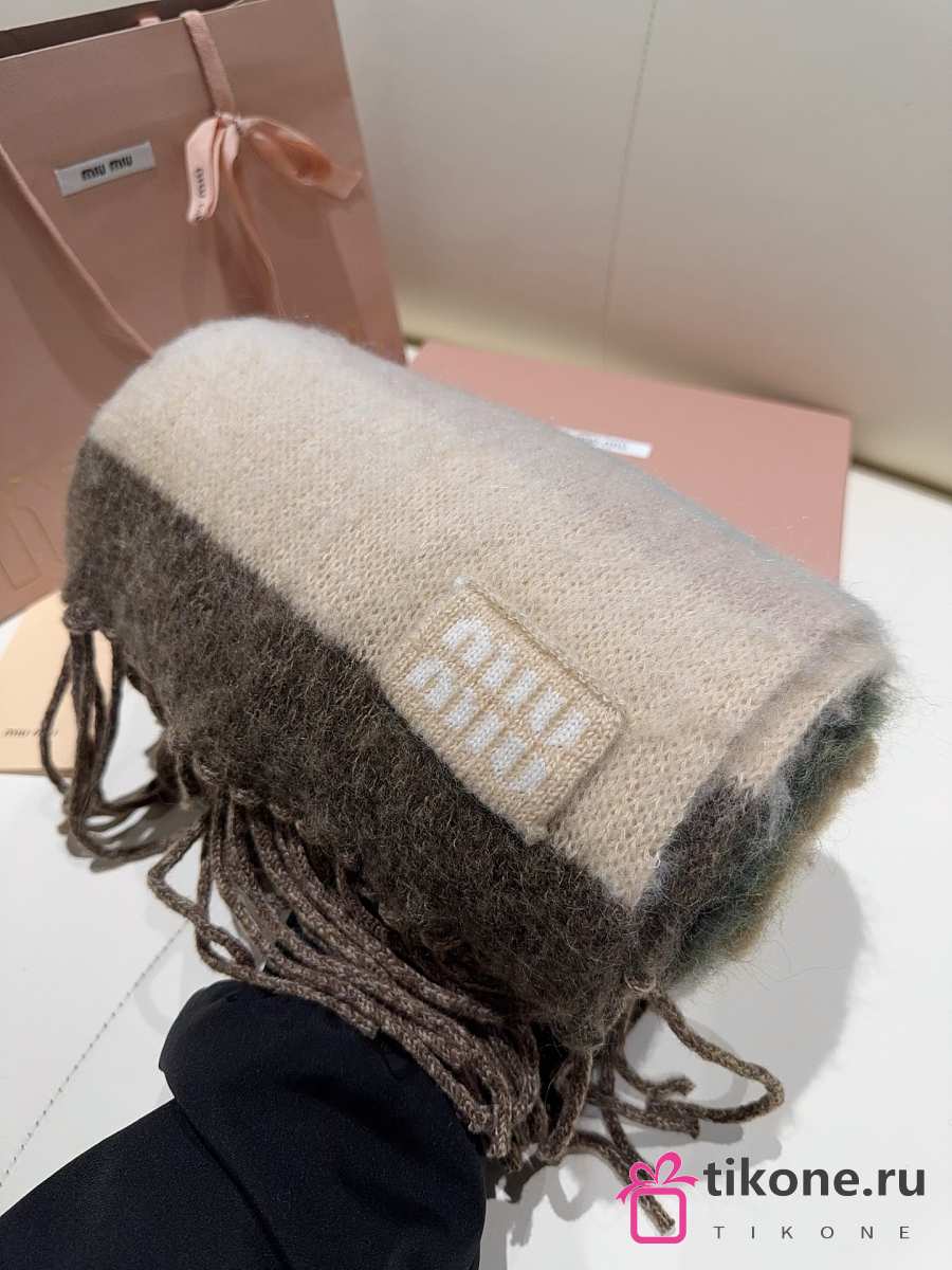 Miumiu Wool Scarf With Fringes Cognac/Tundra - 23x185cm