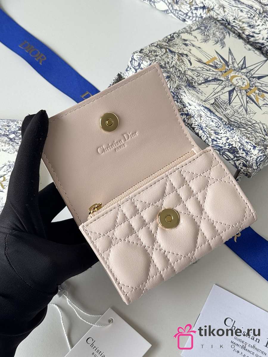 My Dior Glycine Wallet Powde Light Pink Cannage Lambskin - 11x7.5x3cm
