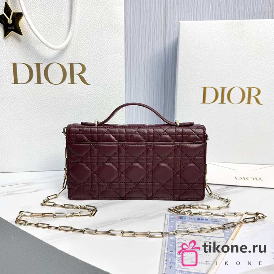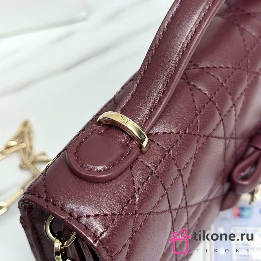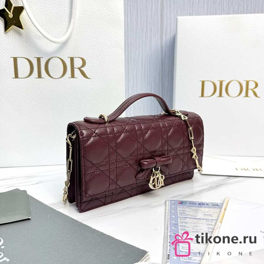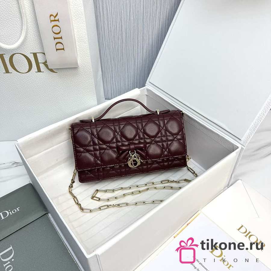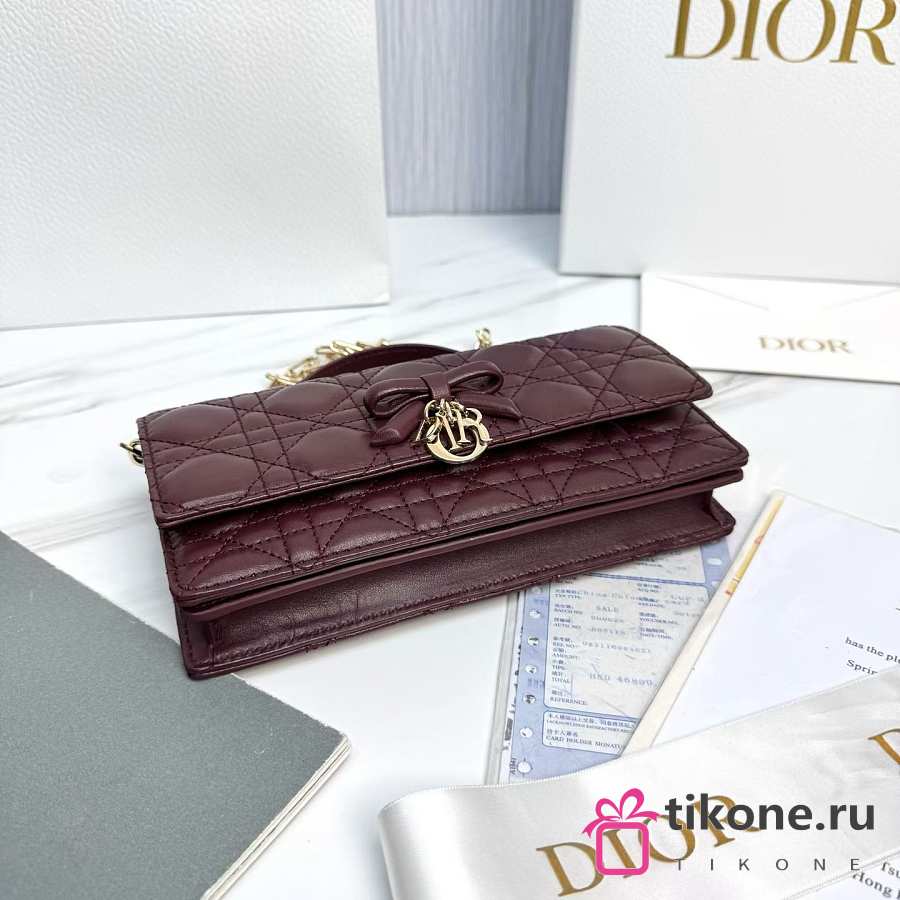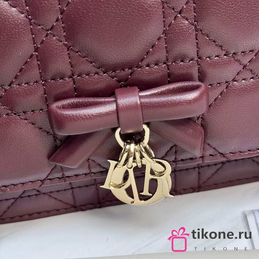 My Dior Mini Bag Burgubdy Cannage Lambskin Bow - 21x11.5x4.5cm