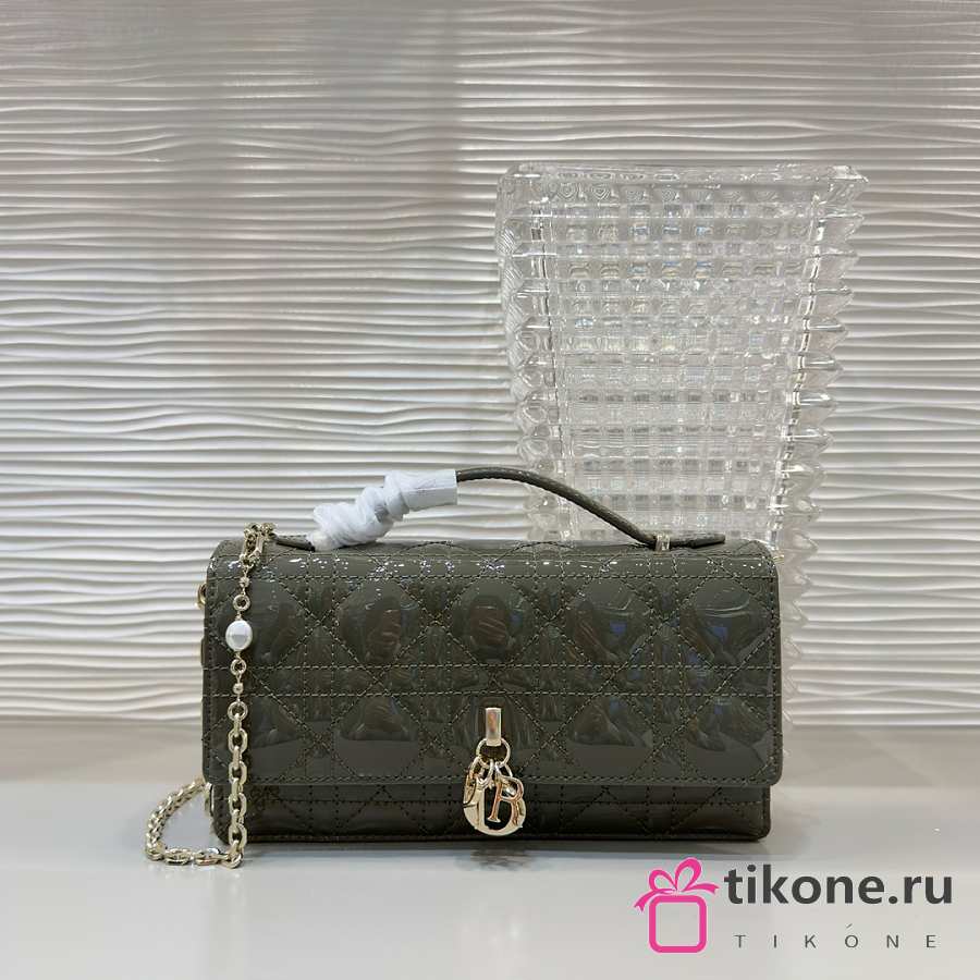 My Dior Mini Bag Olive Taupe Patent Cannage Calfskin - 21x11.5x4.5cm