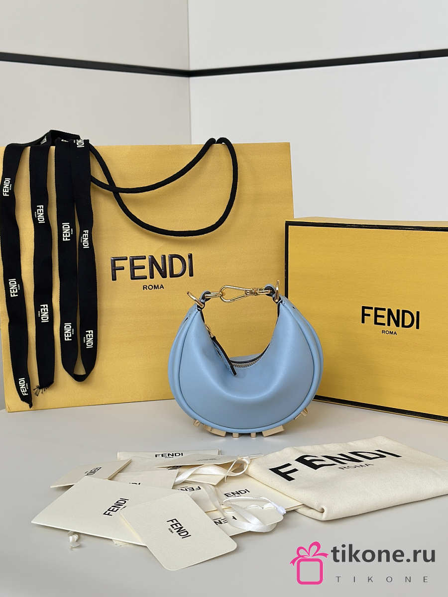 Fendi Mini Roll Blue Denim Effect FF Jacquard Mini Bag - 15.5x13x11cm
