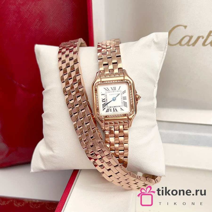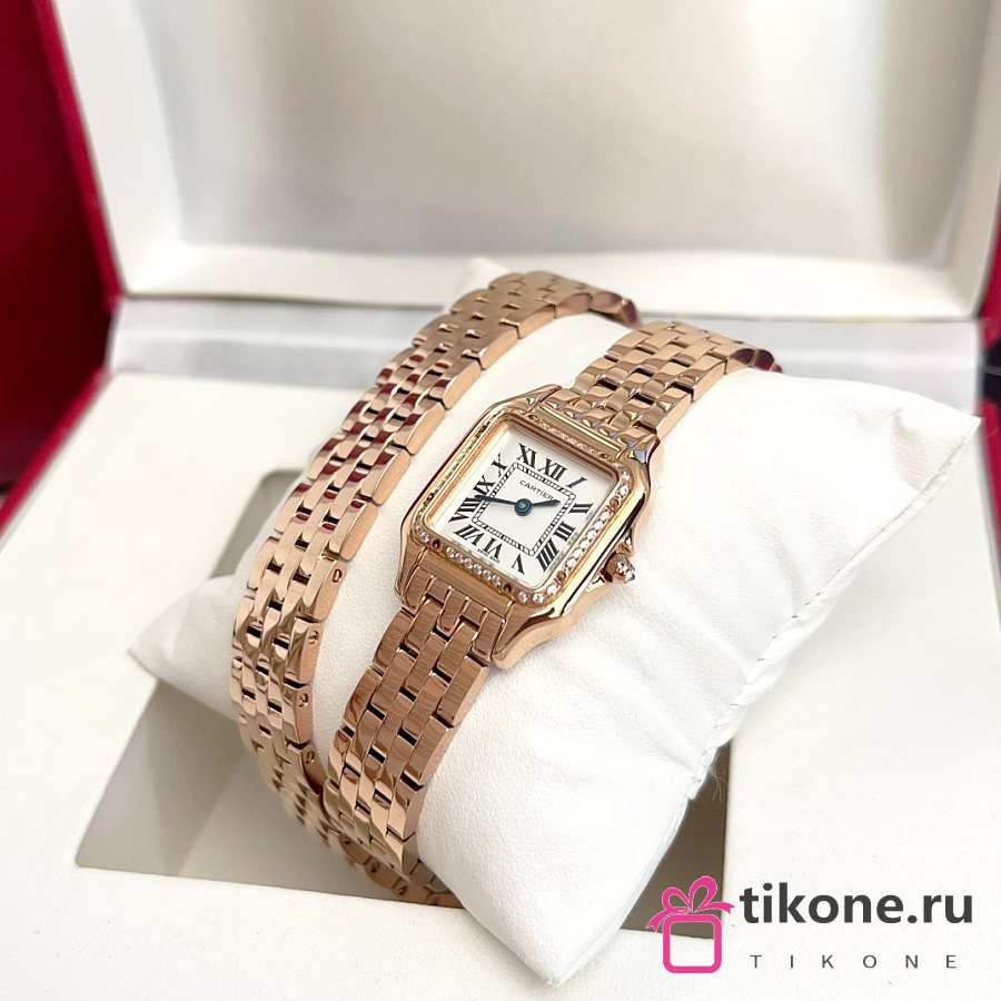 Panthere De Cartier Watch Doulbe Chain Small Model Rose Gold Diamonds 22x30mm