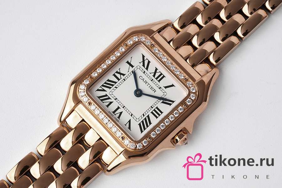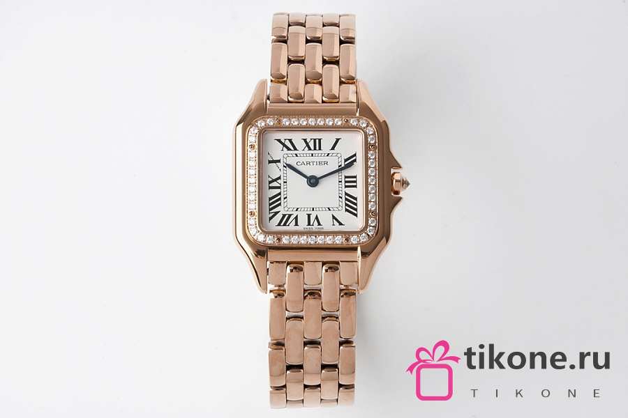 Panthere de Cartier Watch Rose/ White Gold Medium Model Bezel Set with Brilliant-cut Diamonds 27x37mm