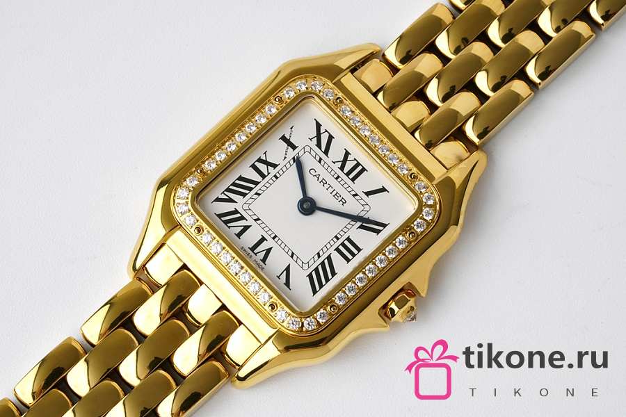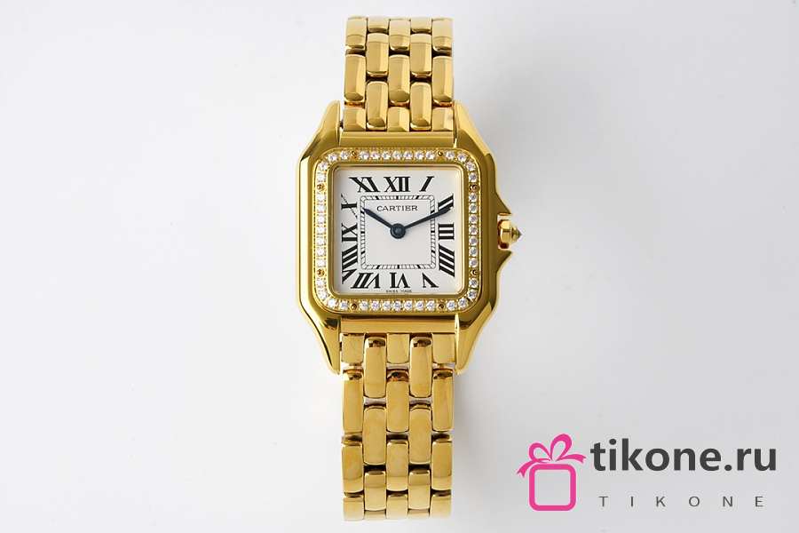 Panthere de Cartier Watch Yellow Gold Medium Model Bezel Set with Brilliant-cut Diamonds 27x37mm