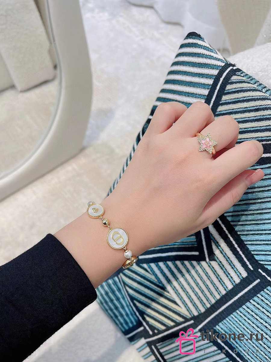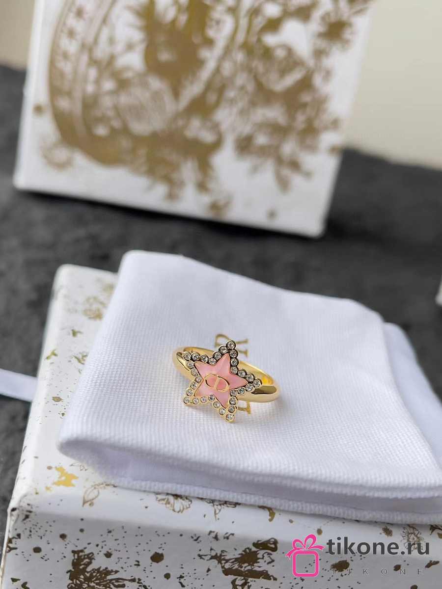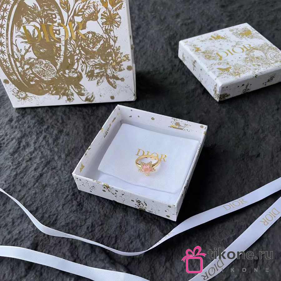 Petit CD Lucky Baroque Ring Gold Finish Metal Silver Tone Crystals and Macaron Pink Glass