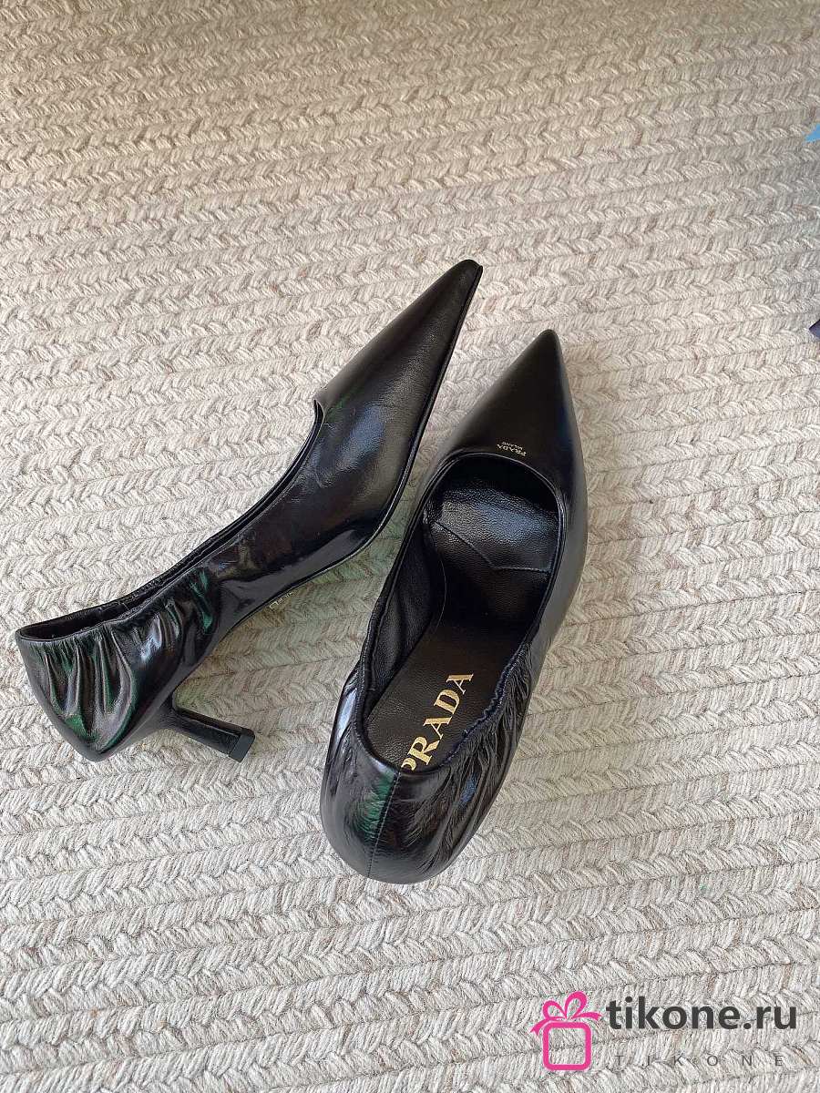 Prada 55mm Ruched-Effect Pointed-Toe Leather Pumps Black 1I188O