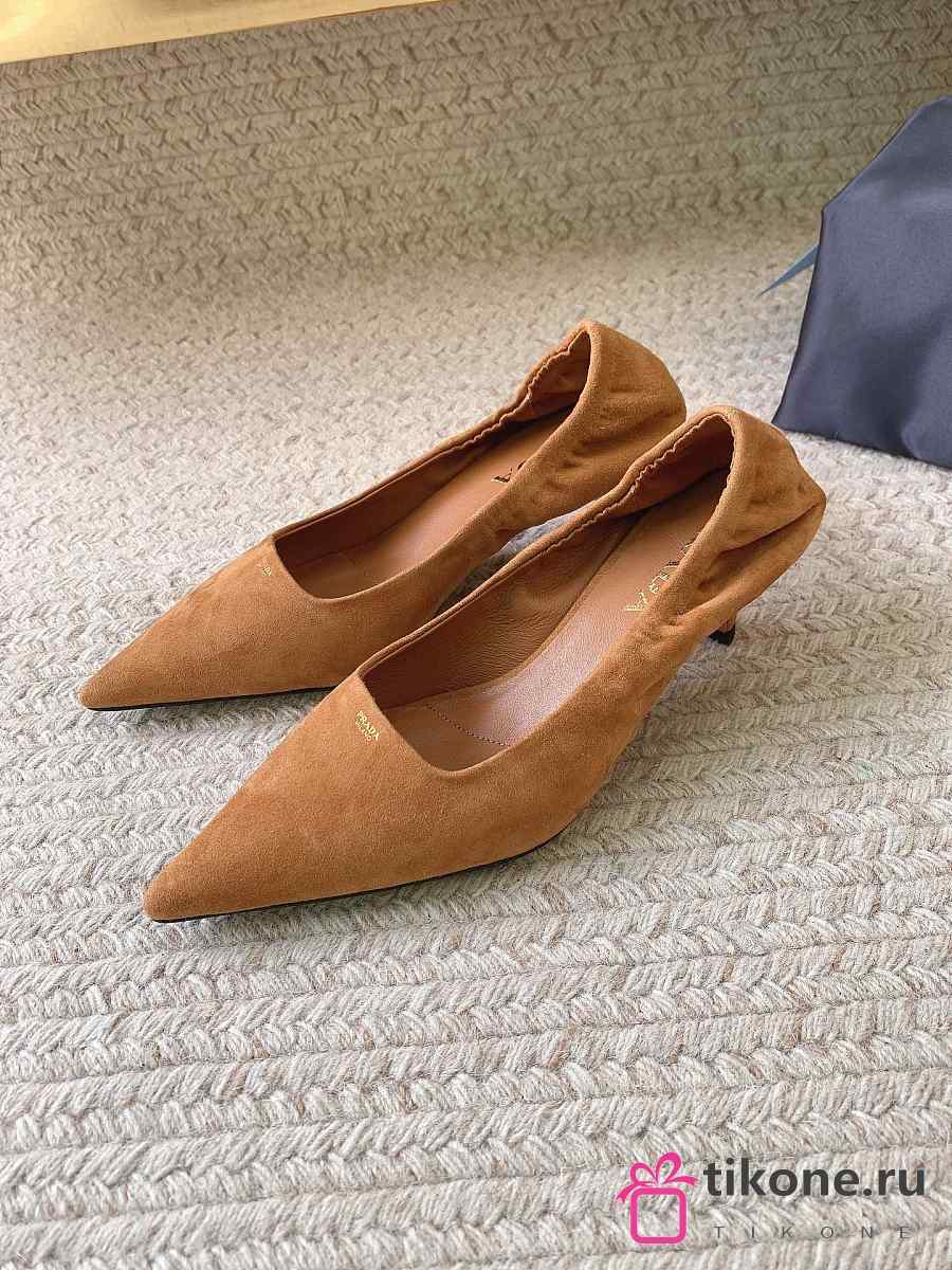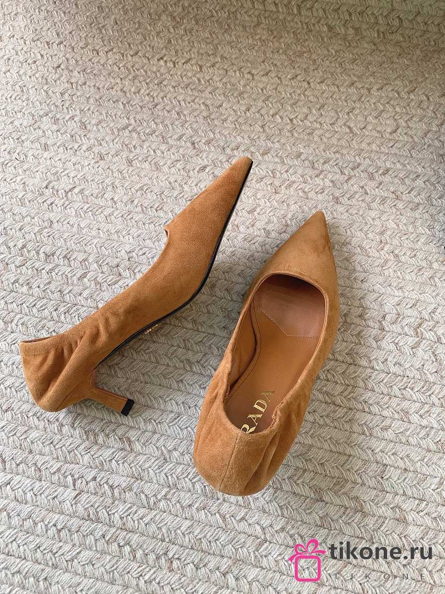 Prada 55mm Ruched-Effect Pointed-Toe Suede Pumps Cinnamon 1I188O