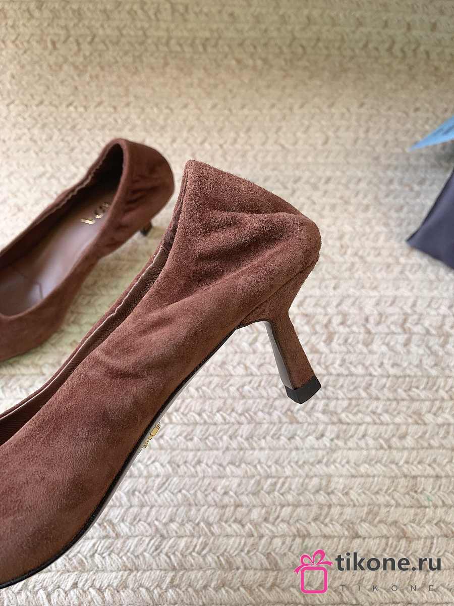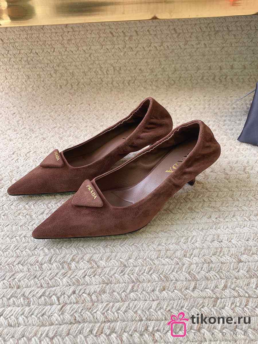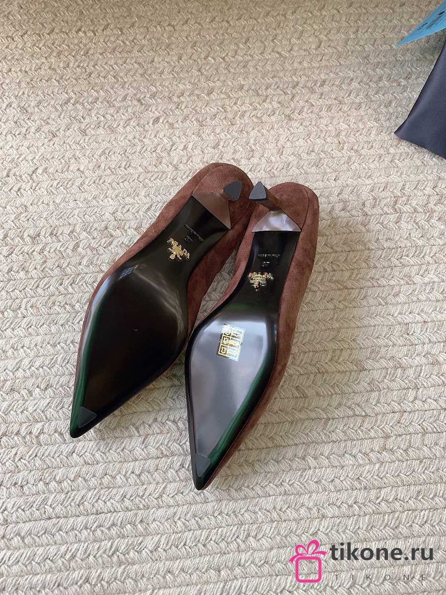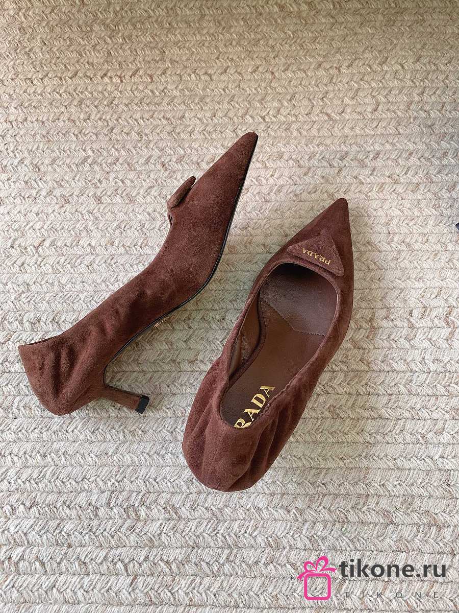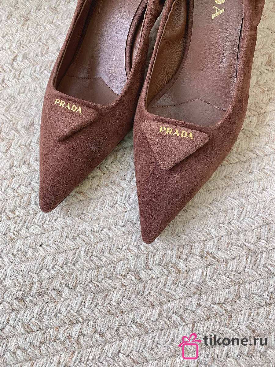 Prada 55mm Triangle Logo Suede Pumps Dark Brown