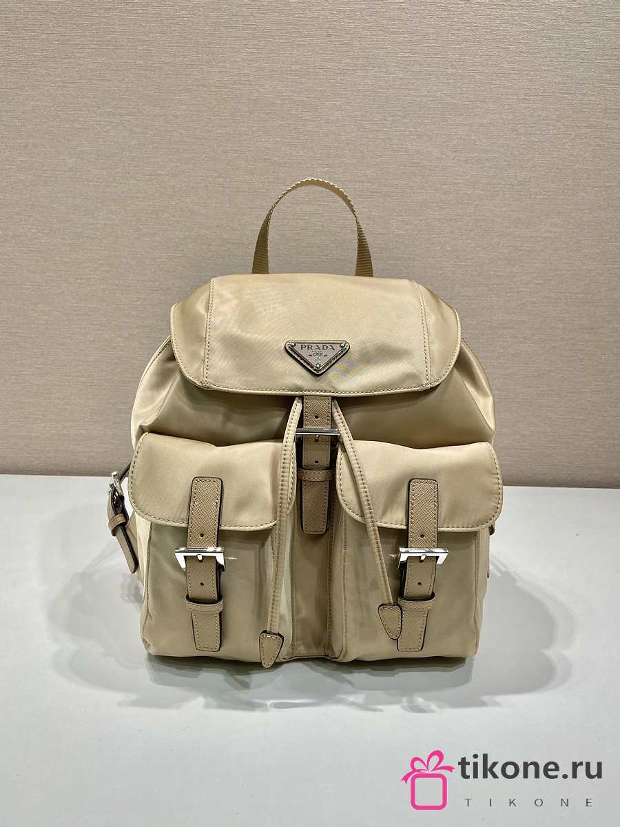 Prada Beige Silver Small Re-nylon Backpack 1BZ677 - 28×23.5×12cm