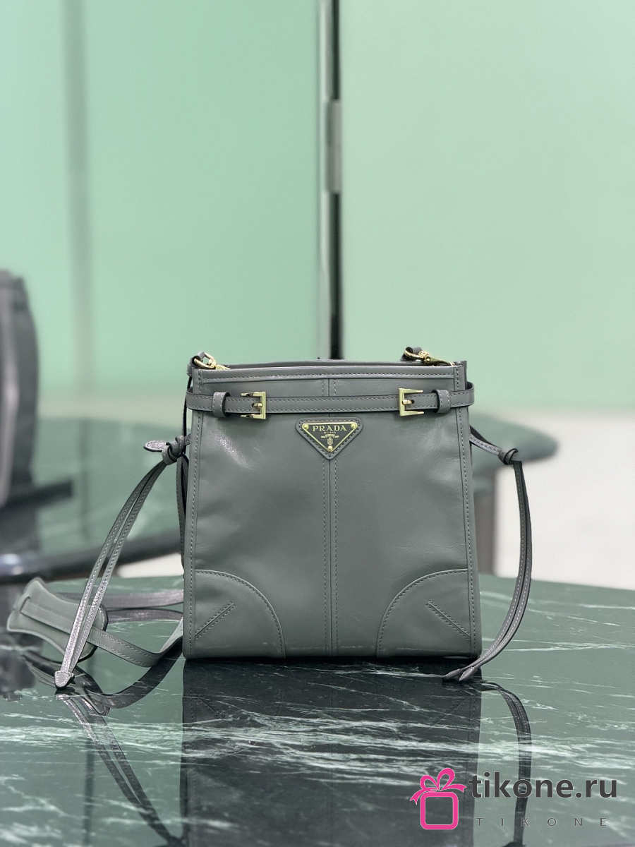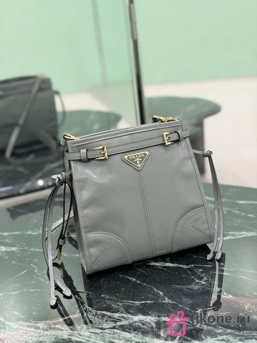 Prada Bonnie Leather Mini Shoulder Bag Gray 1BH229 - 20x19.5x7cm