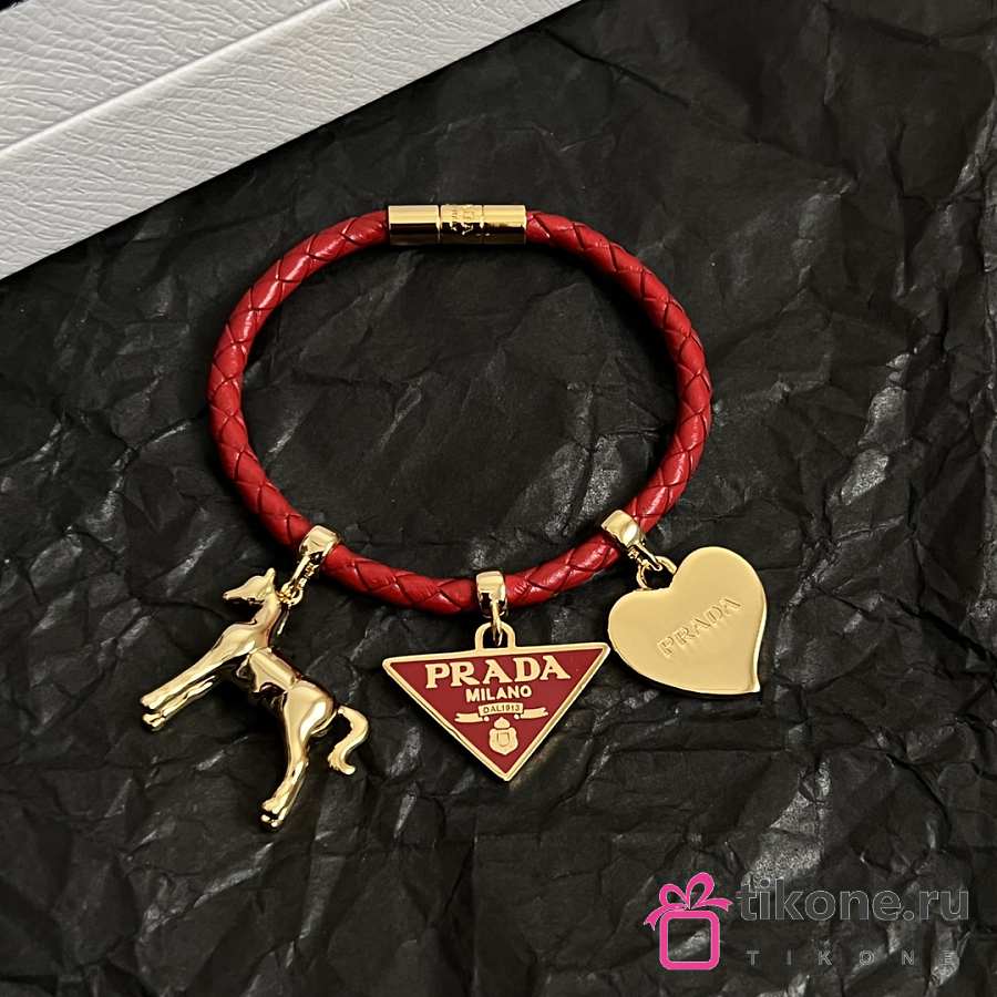 Prada Braided Nappa Leather Bracelet Red 1IB732