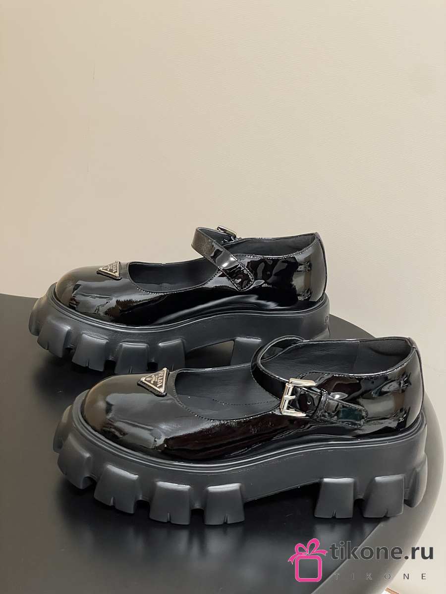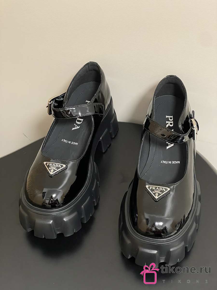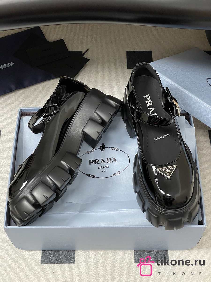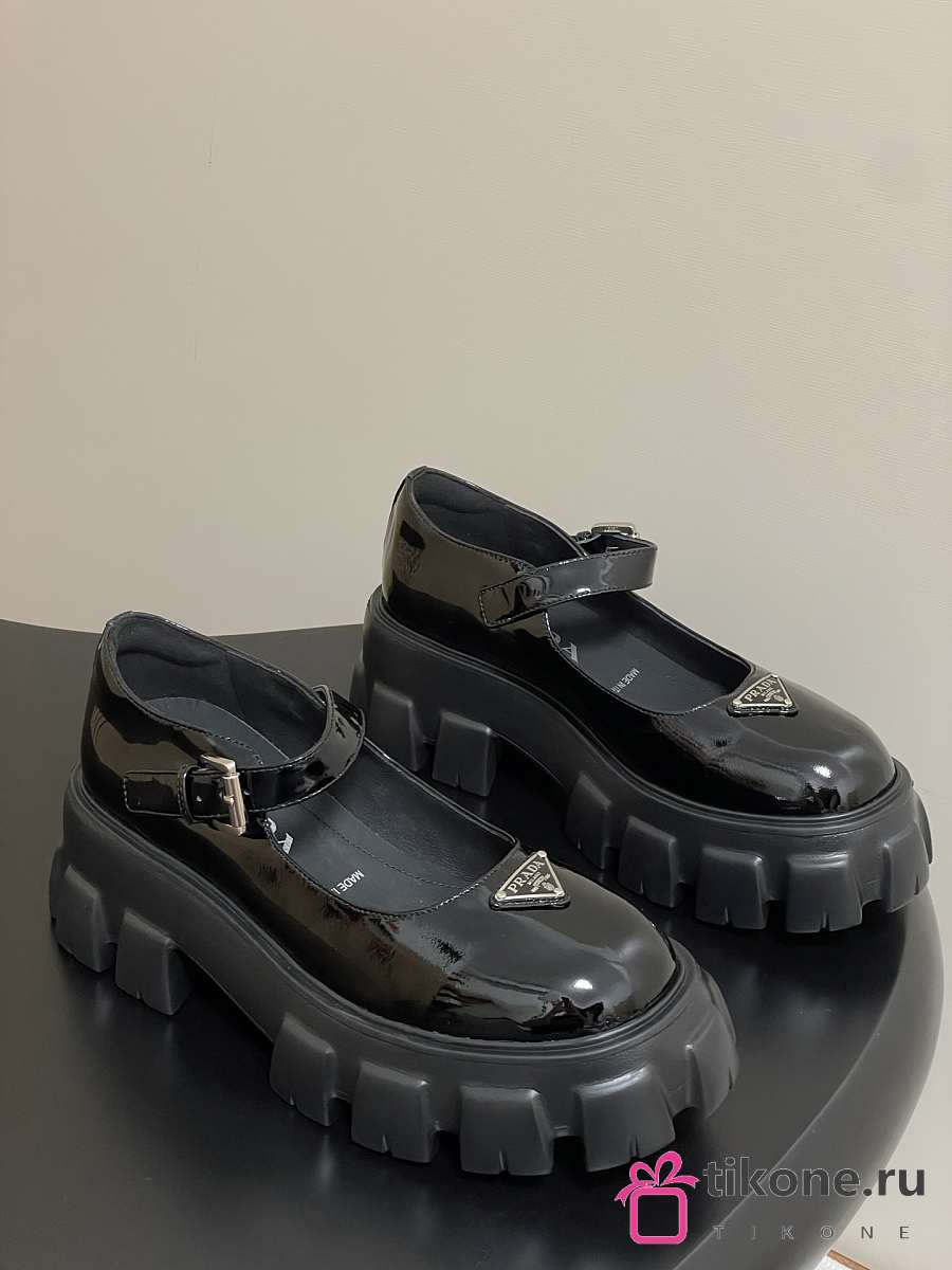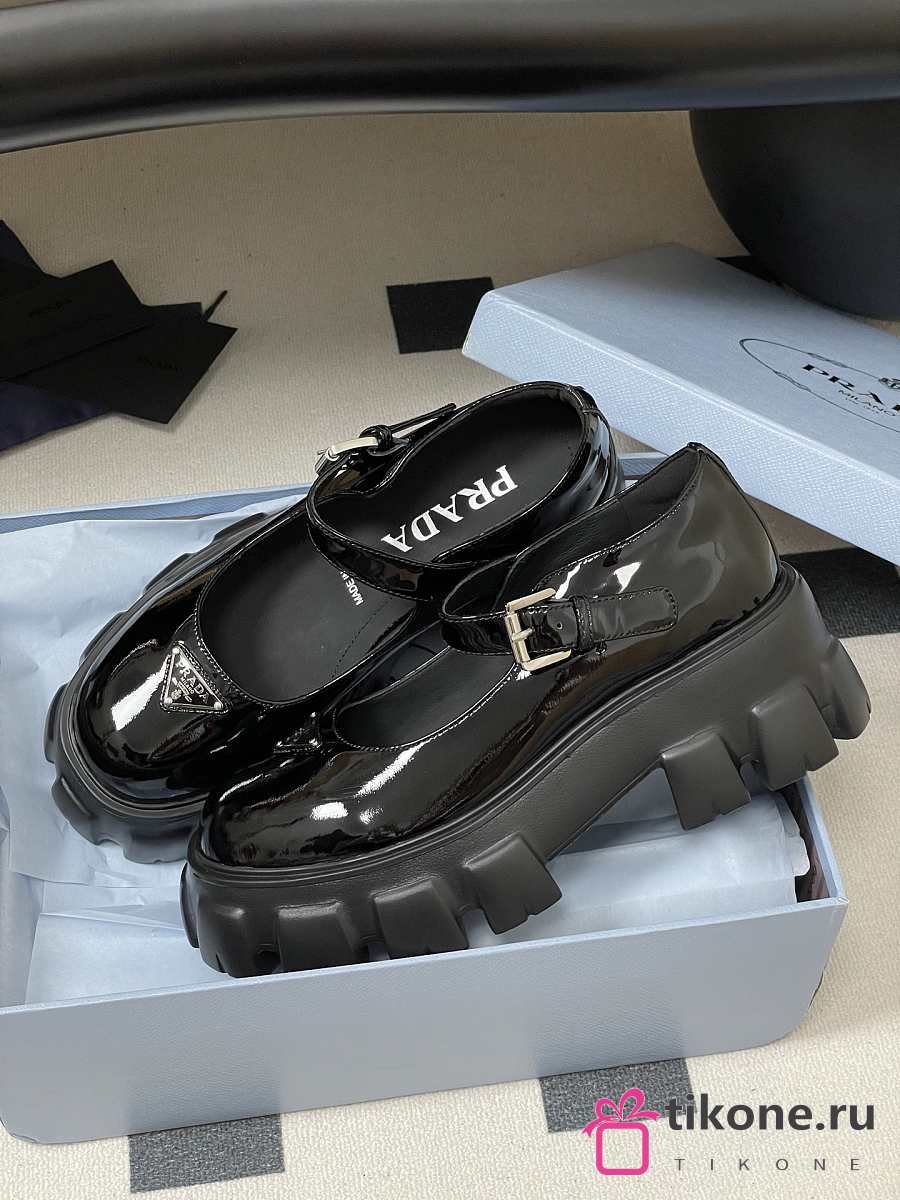 Prada Brushed Patent Leather Monolith Mary Janes Black