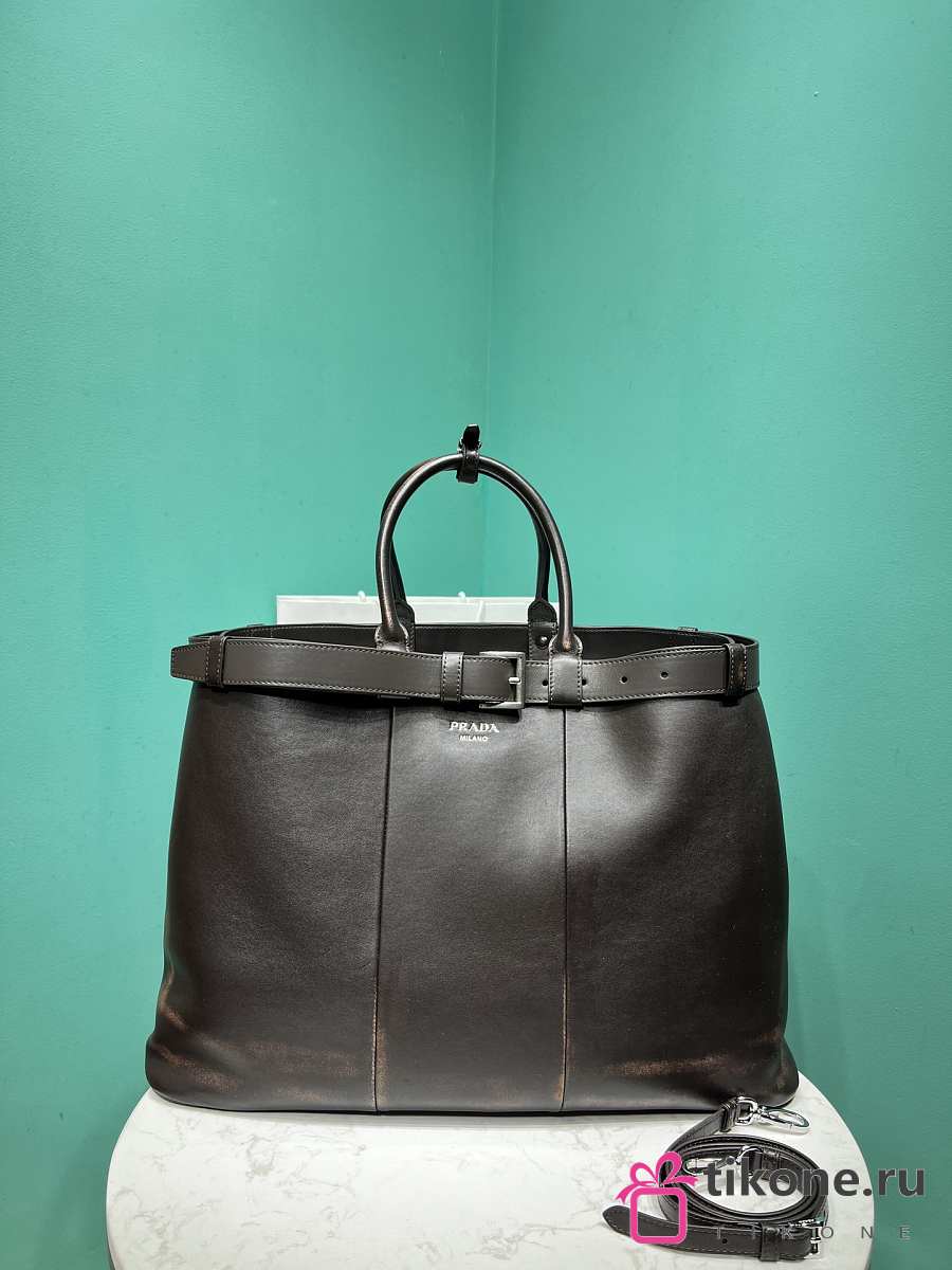 Prada Buckle Nappa Leather Bag With Belt Dark Brown 2VG126 - 48x34x18cm
