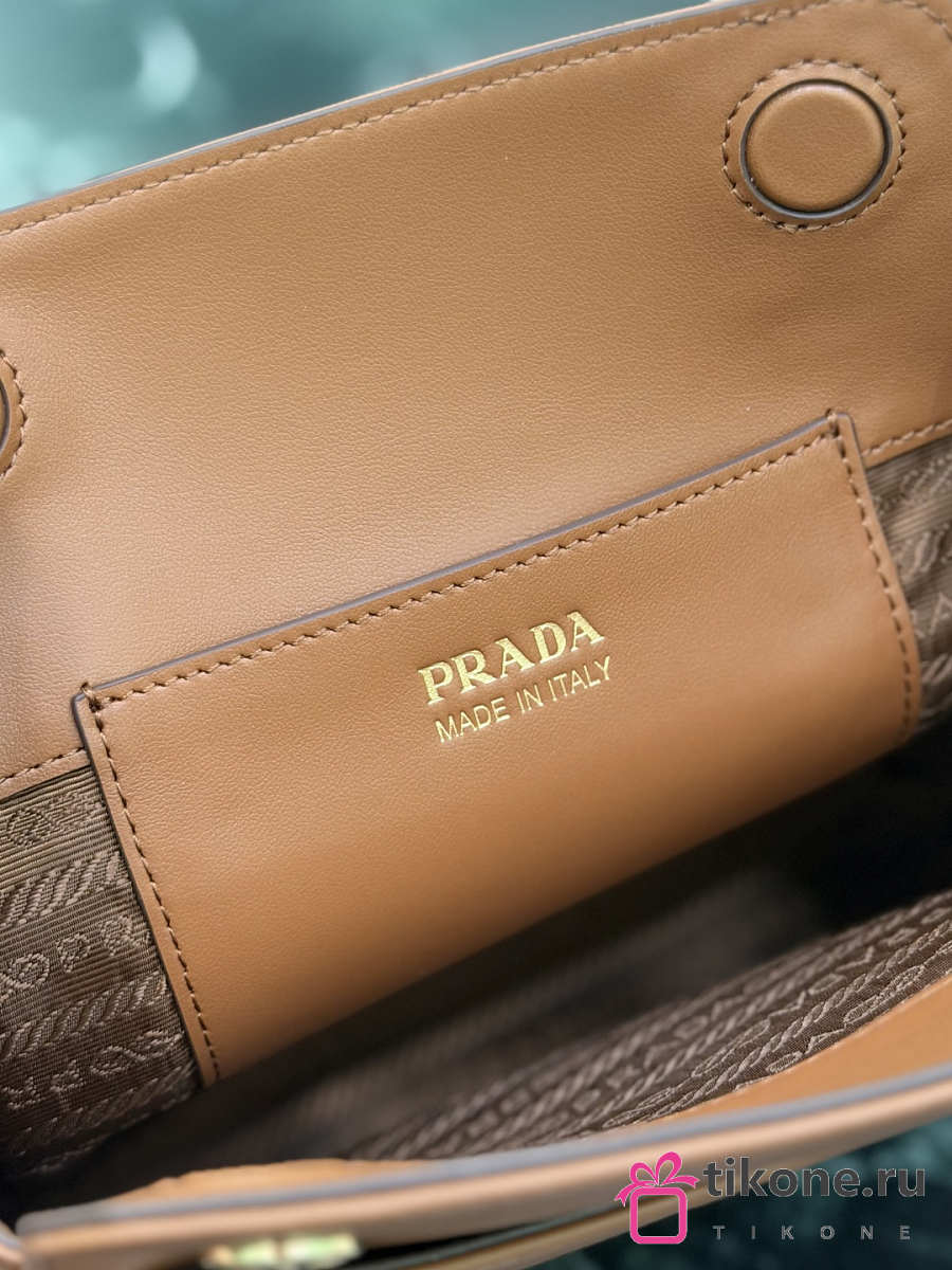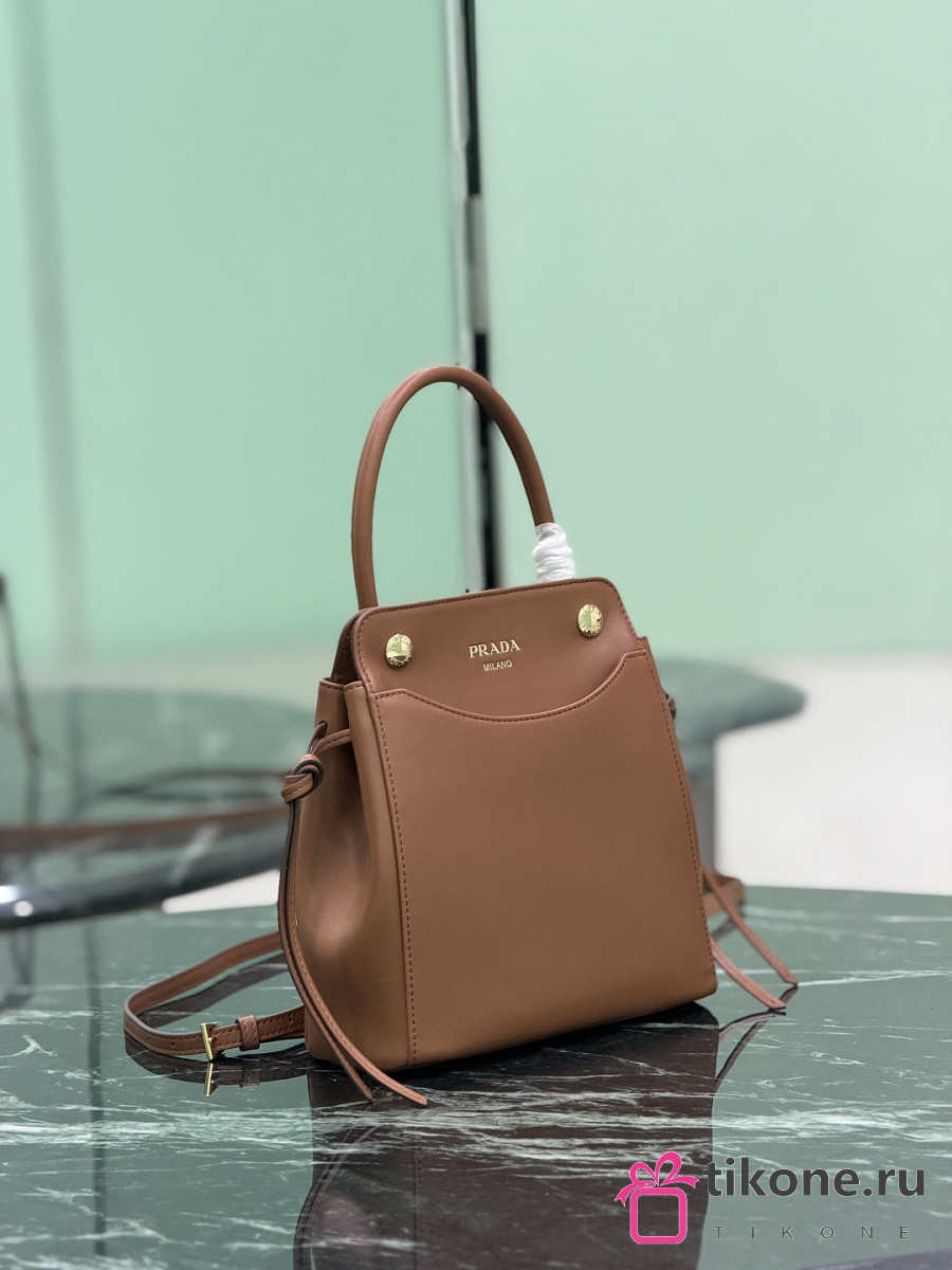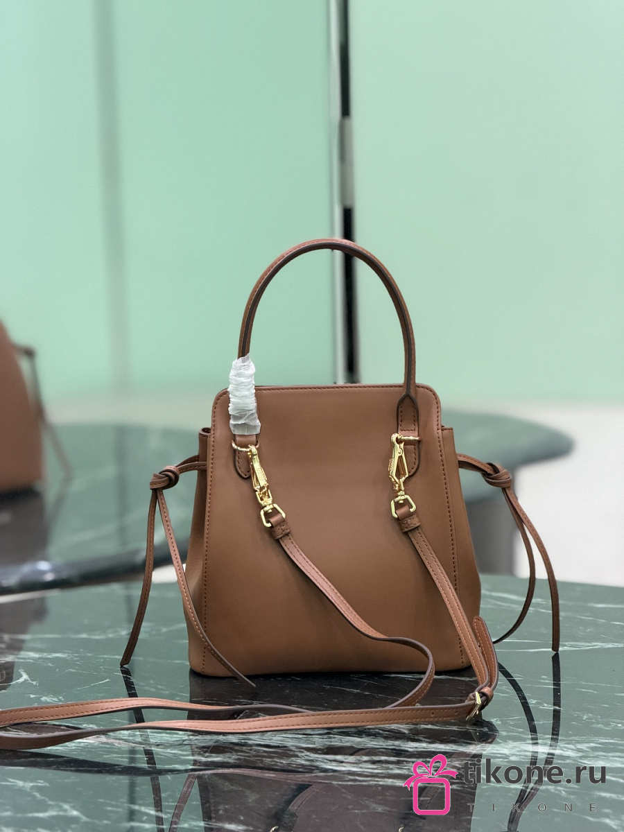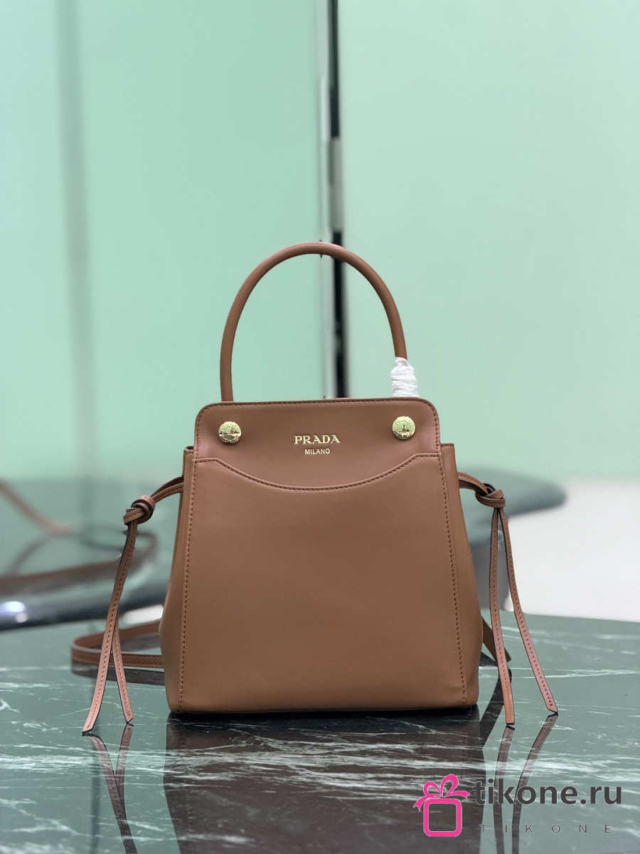 Prada Carry Mini Leather Handbag Brown 1BA496 - 21x19x7cm