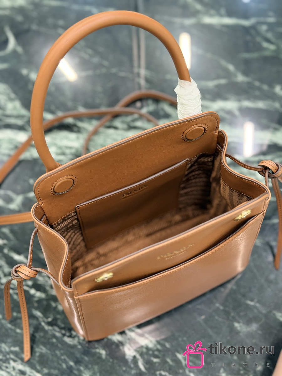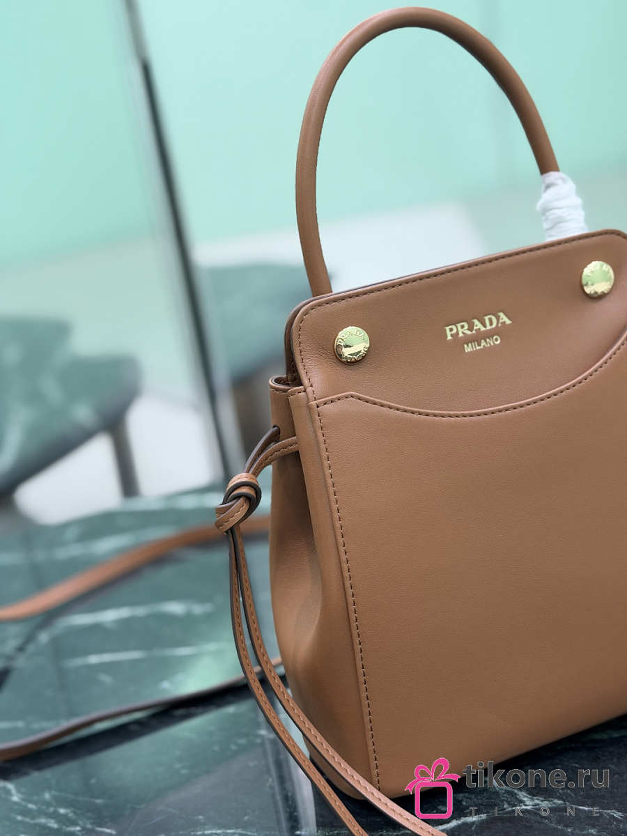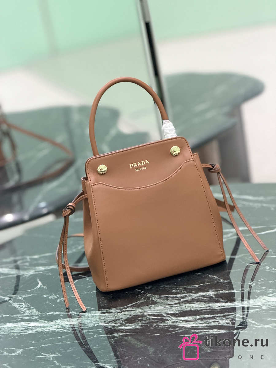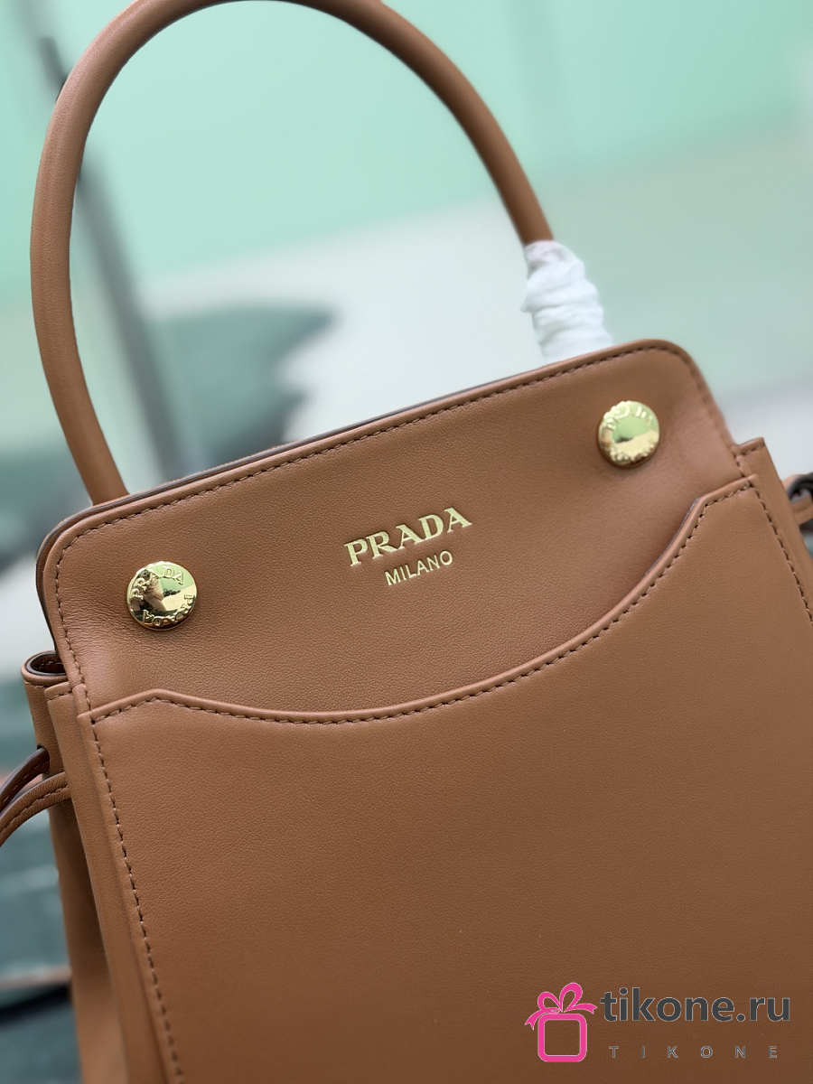 Prada Carry Mini Leather Handbag Brown 1BA496 - 21x19x7cm