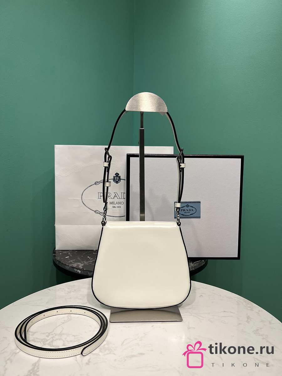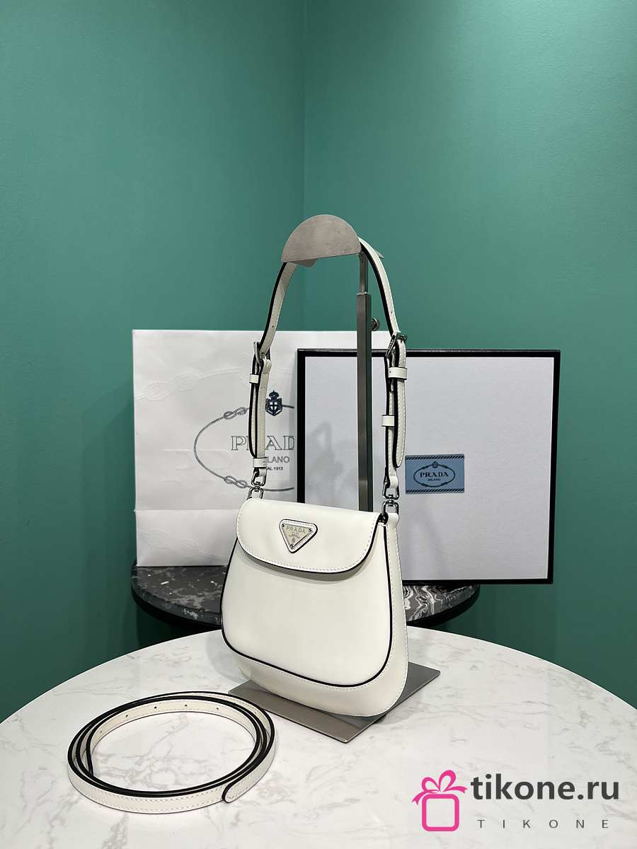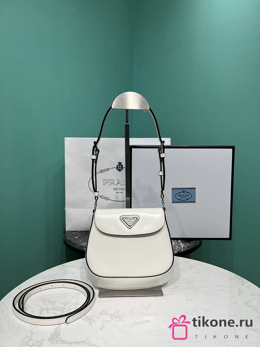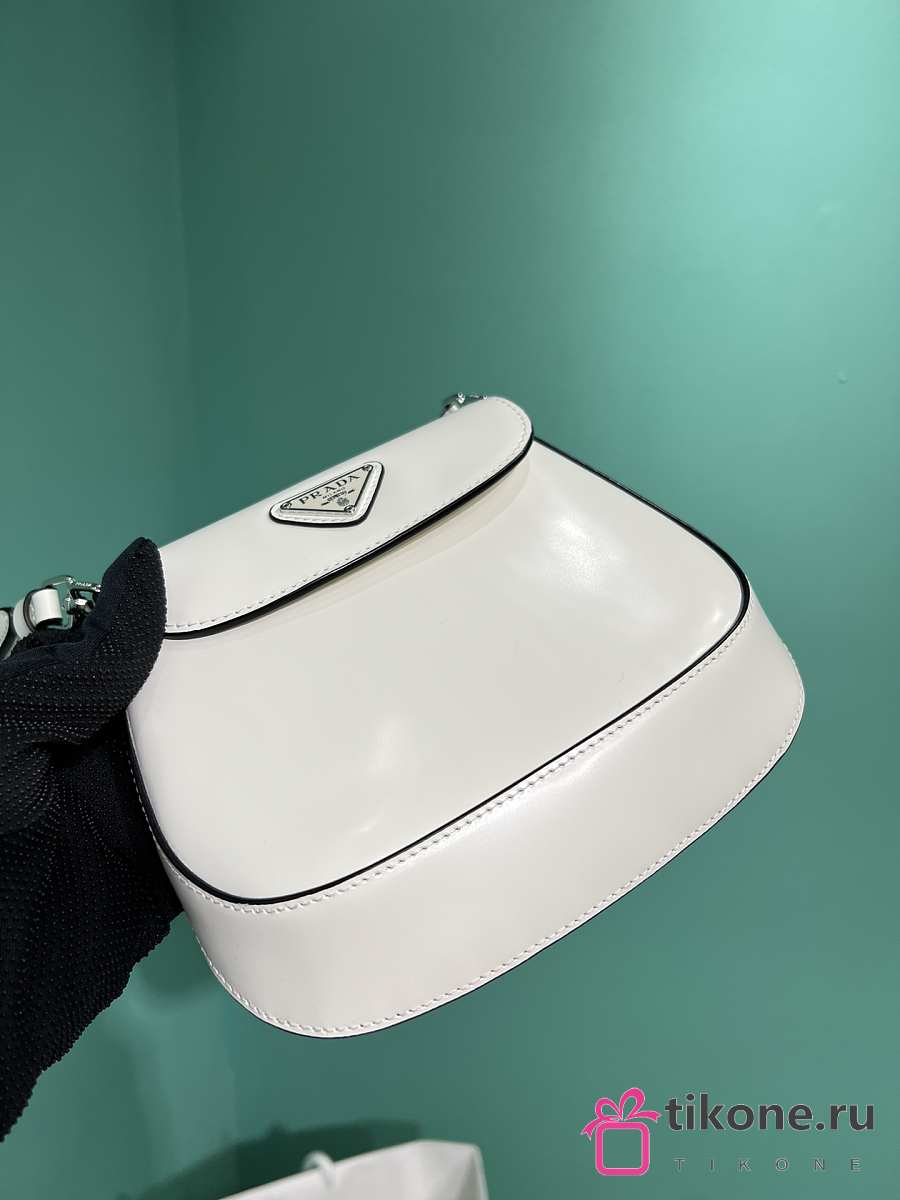Prada Cleo Small Brushed Leather Shoulder Bag With Flap White - 17x14.5x3cm