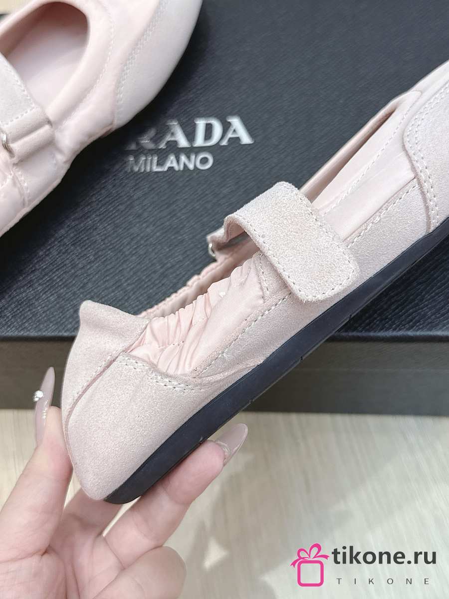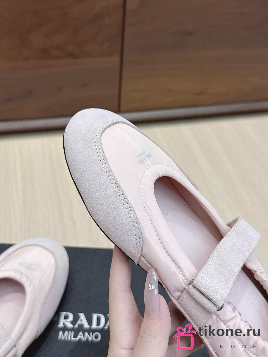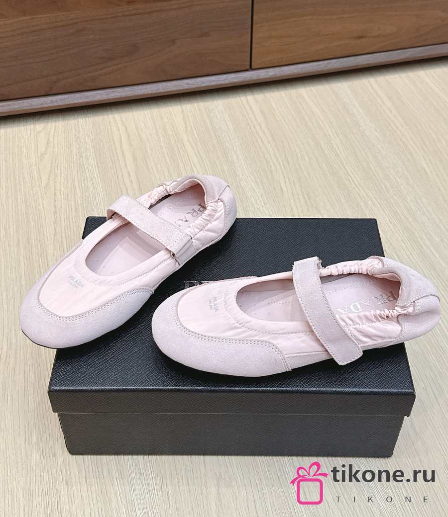 Prada Collapse Re-Nylon And Suede Ballerinas Pink