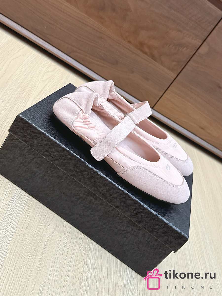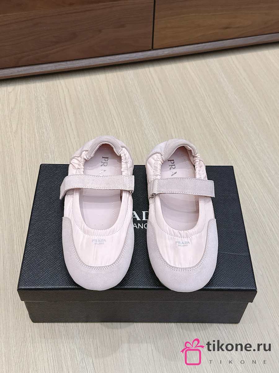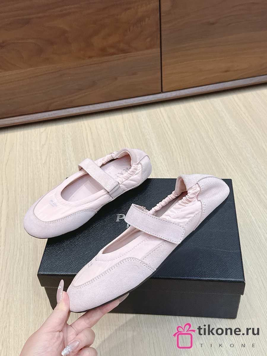 Prada Collapse Re-Nylon And Suede Ballerinas Pink