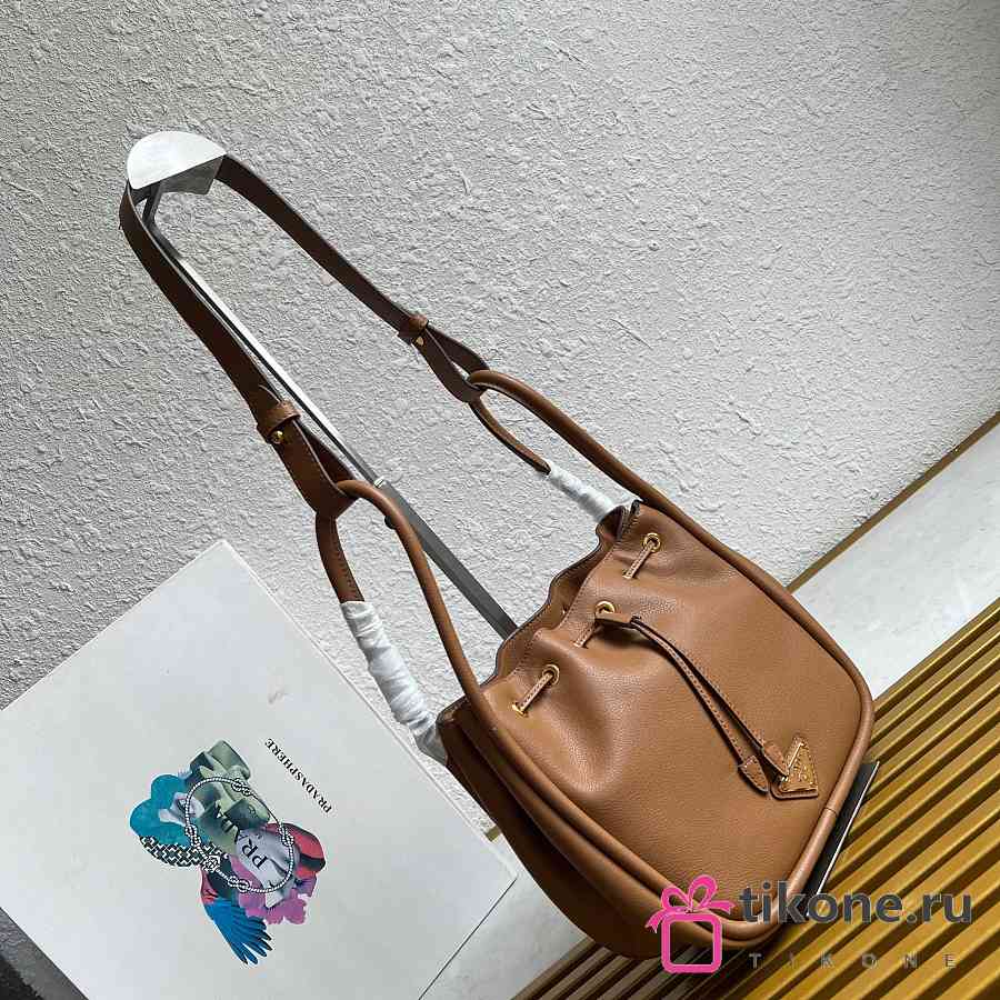 Prada Darling Mini Leather Bucket Bag Brown 1BE087 - 22x21x10.5cm