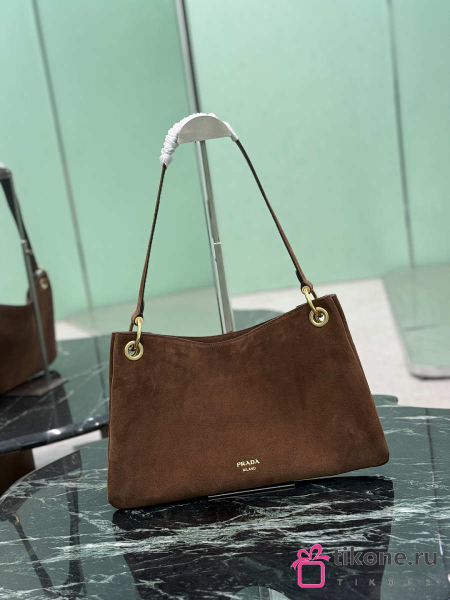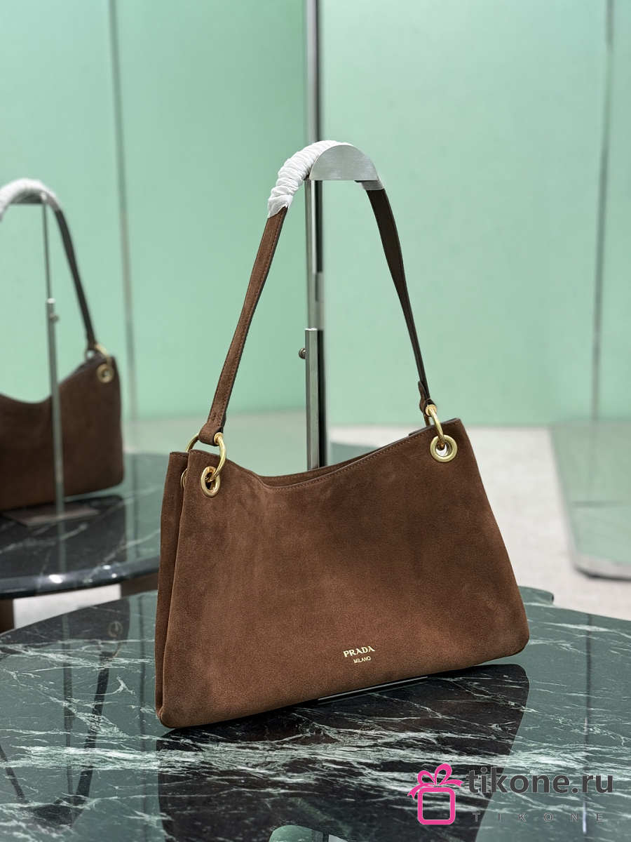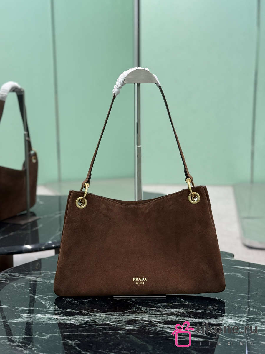 Prada Etude Large Suede Shoulder Bag Cocoa Brown 1BC259 - 40.5×24.5cm