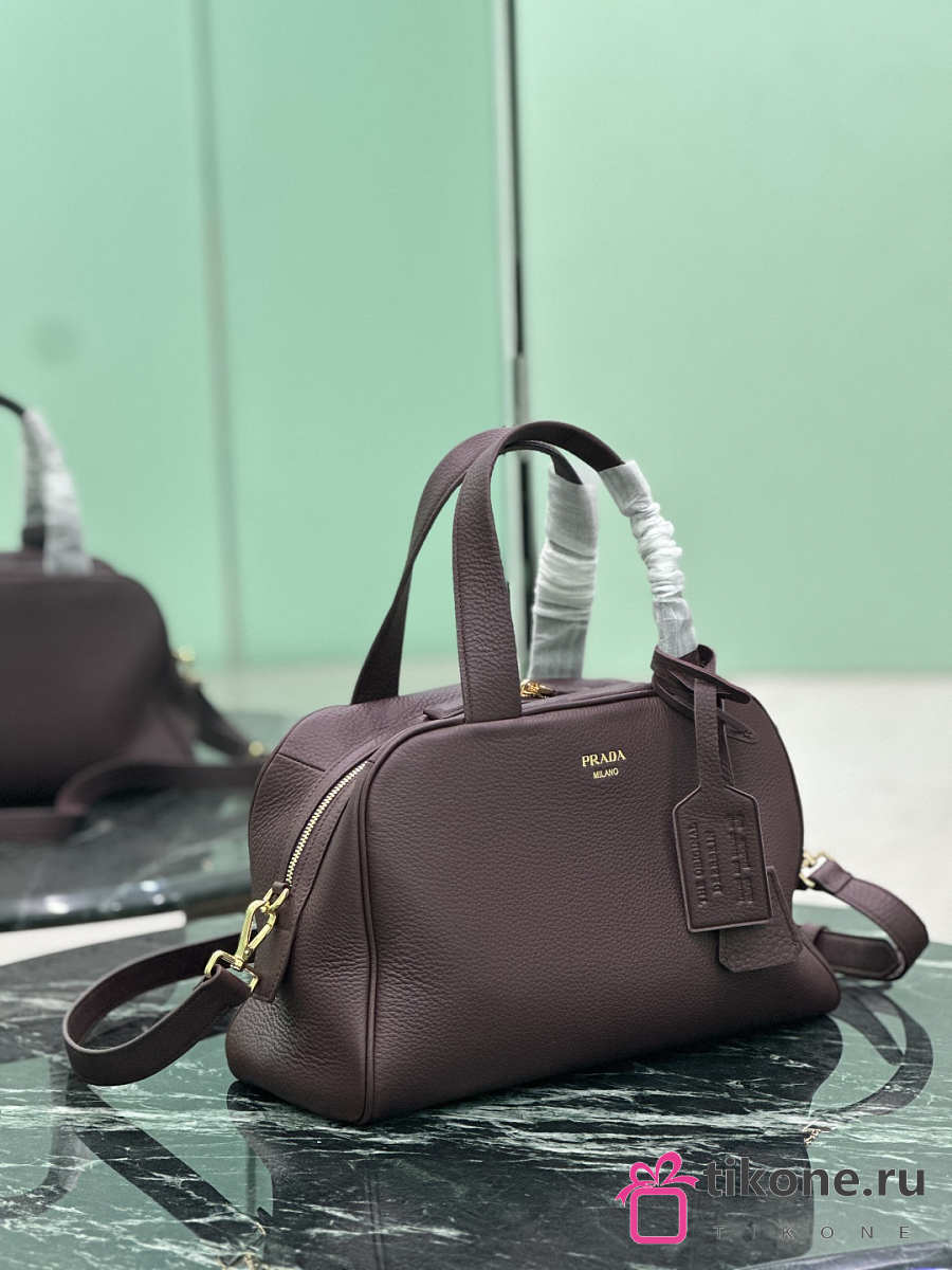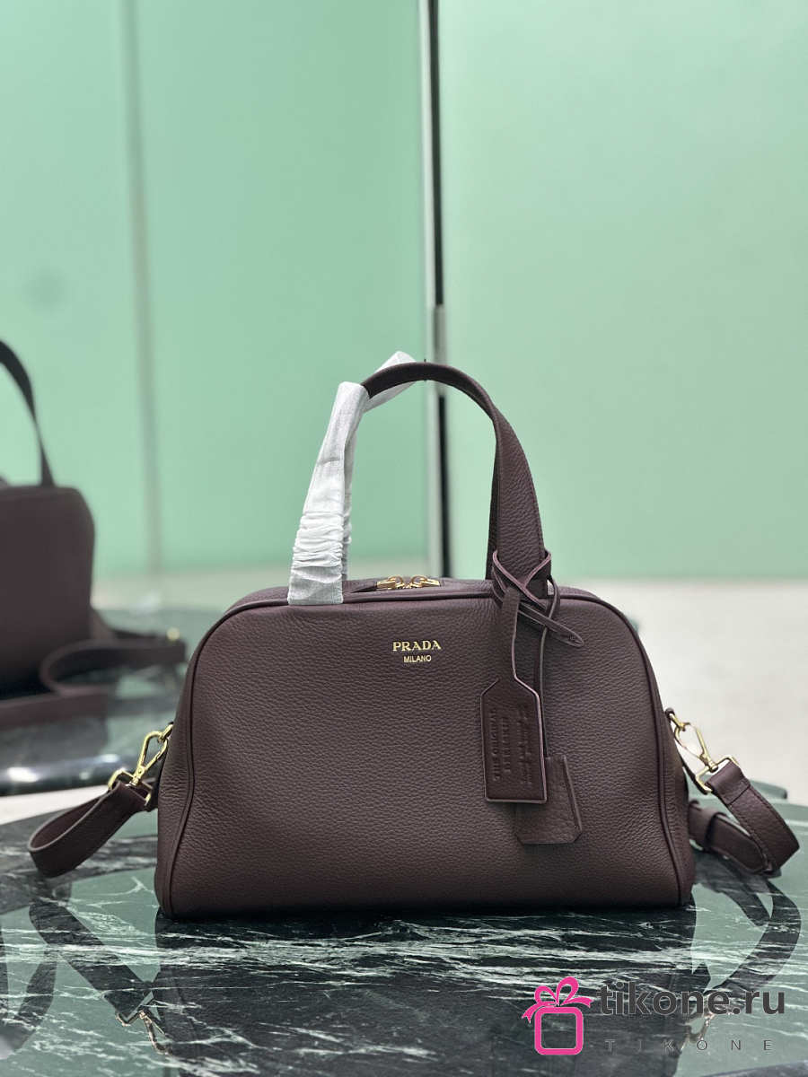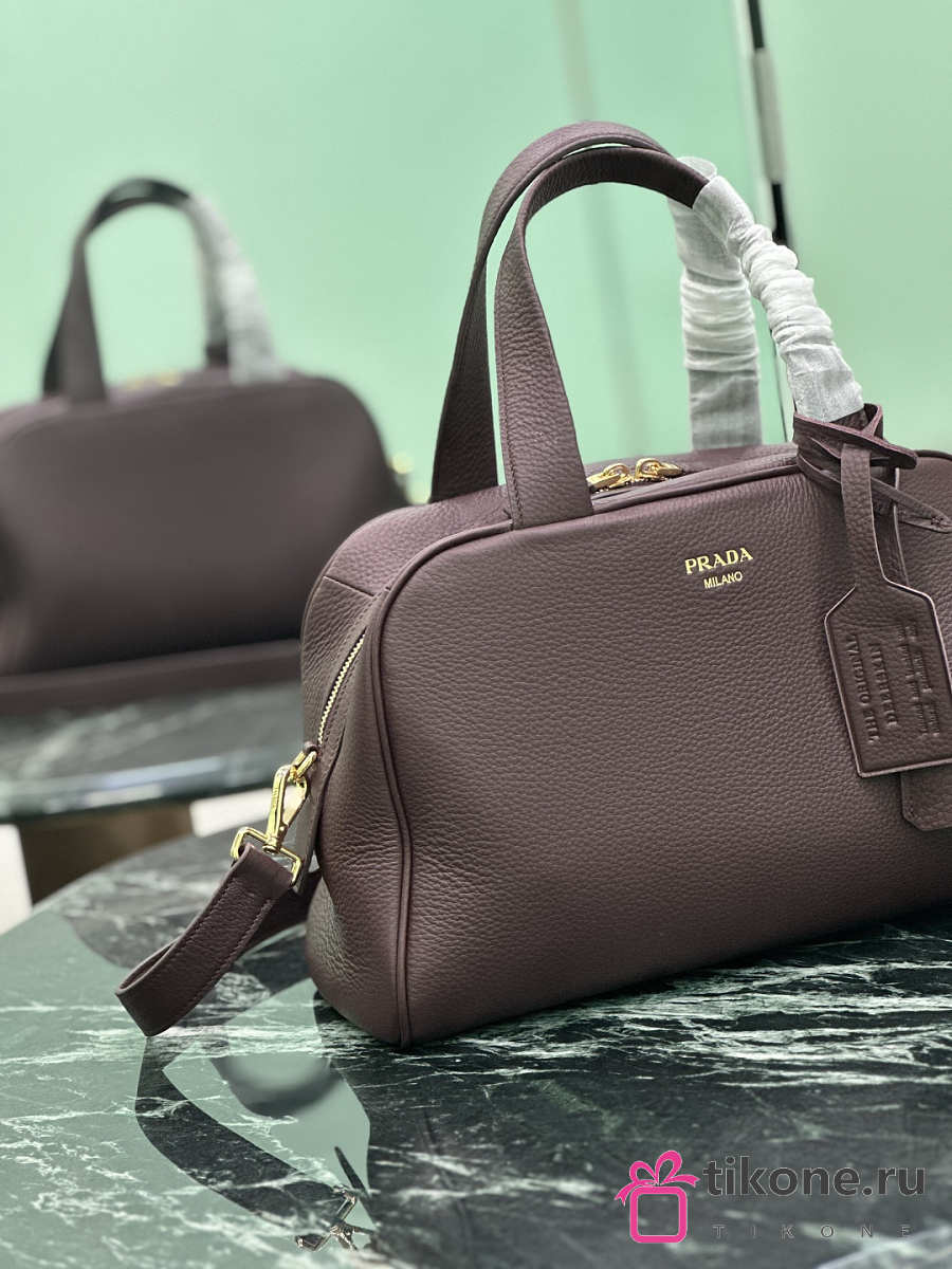 Prada Large Leather Top Handle Bag Clay Burgundy 1BB148 - 33x22x14cm