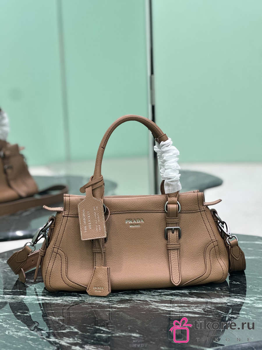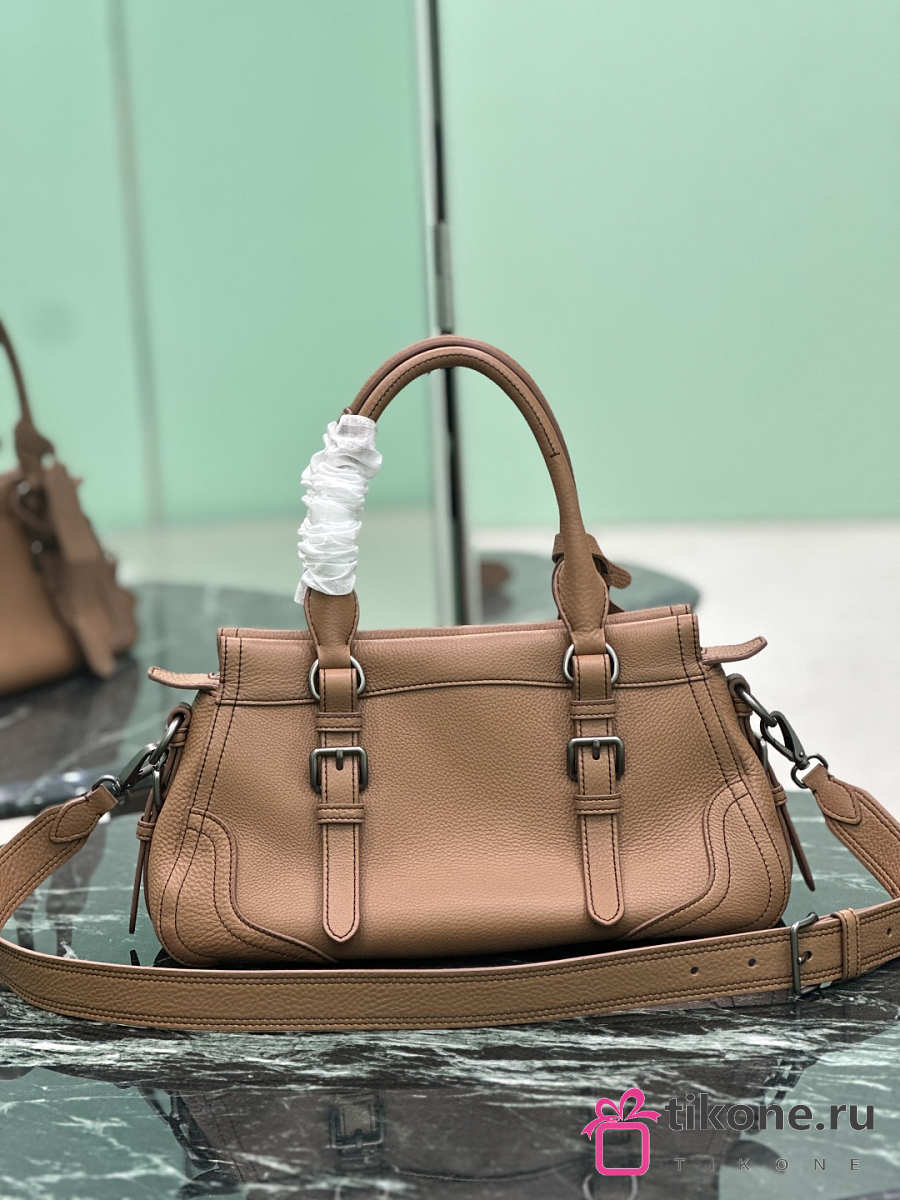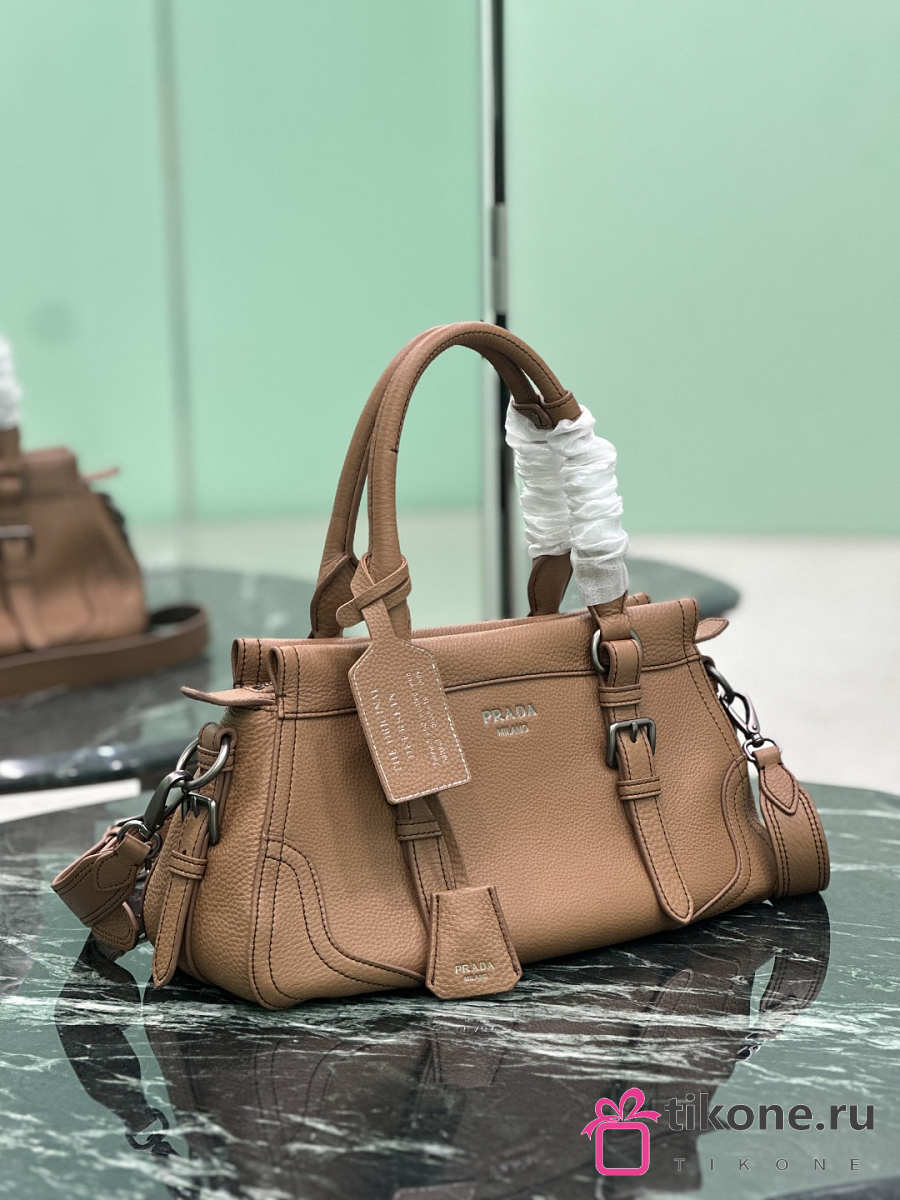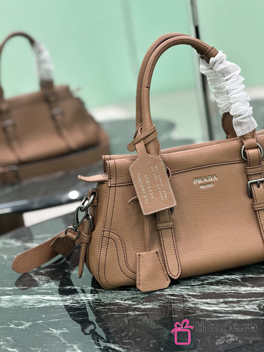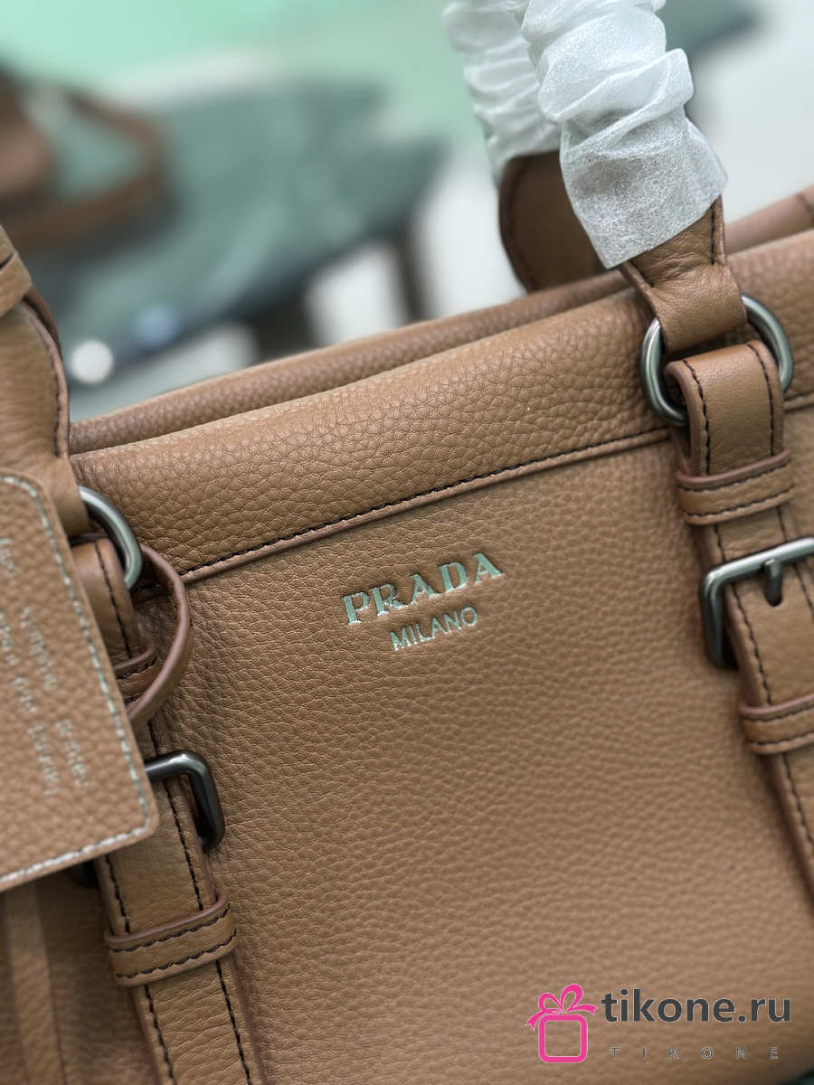 Prada Large Leather Tote Bag In Irregular Grain Brown 1BG604 - 35×22×11cm