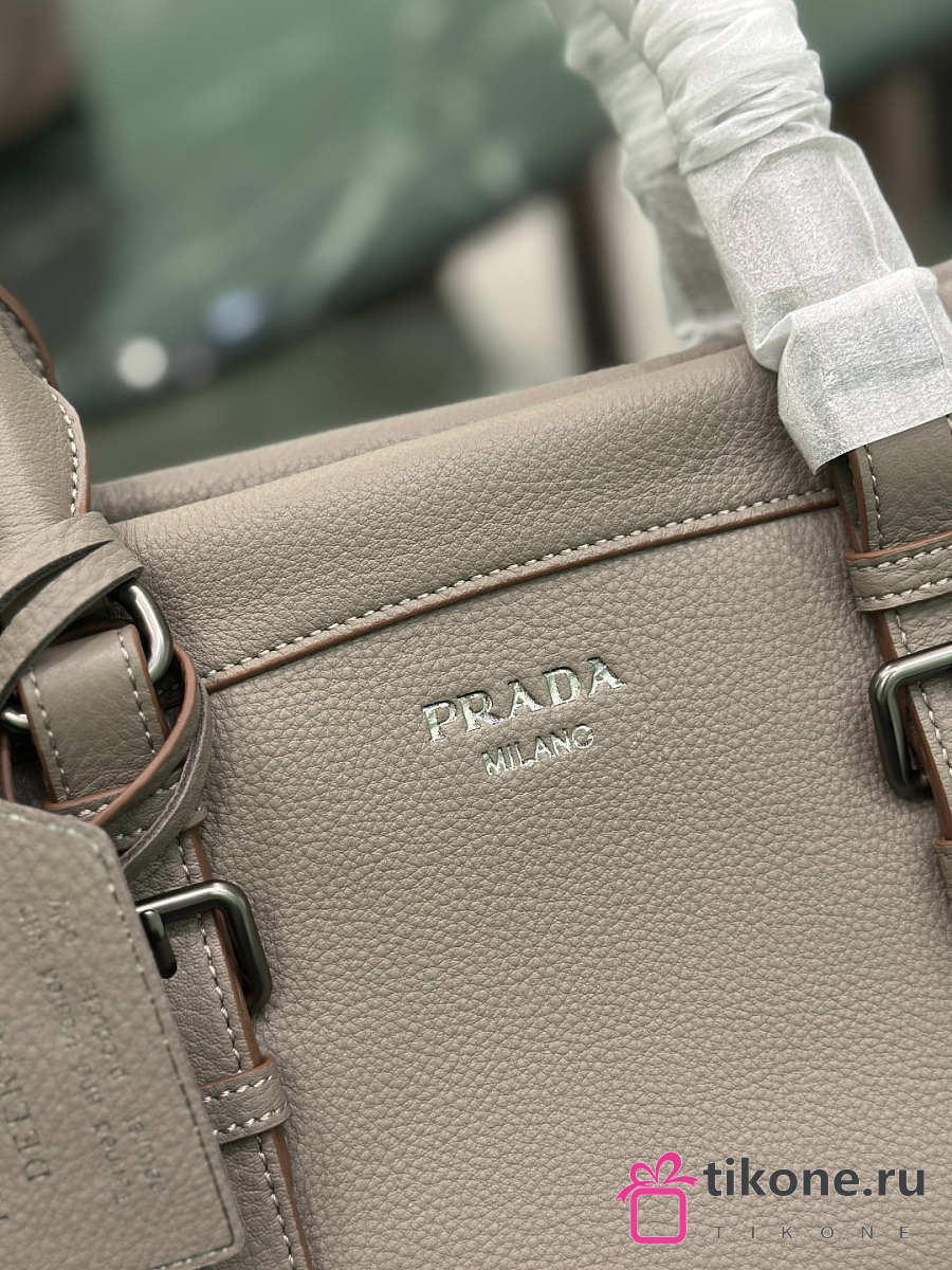 Prada Large Leather Tote Bag In Irregular Grain Gray 1BG604 - 35×22×11cm