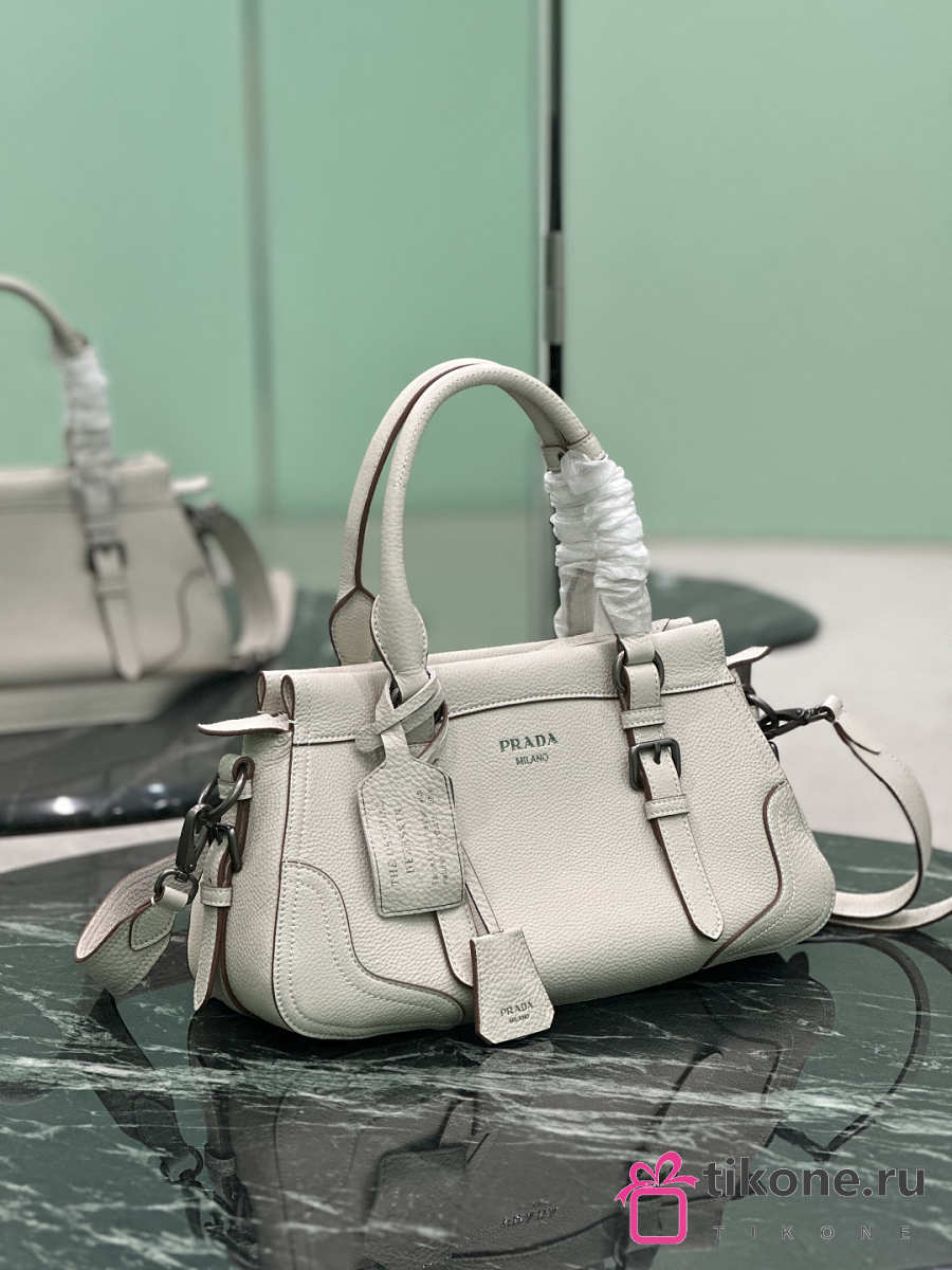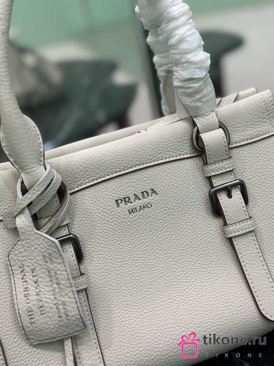 Prada Large Leather Tote Bag In Irregular Grain White 1BG604 - 35×22×11cm