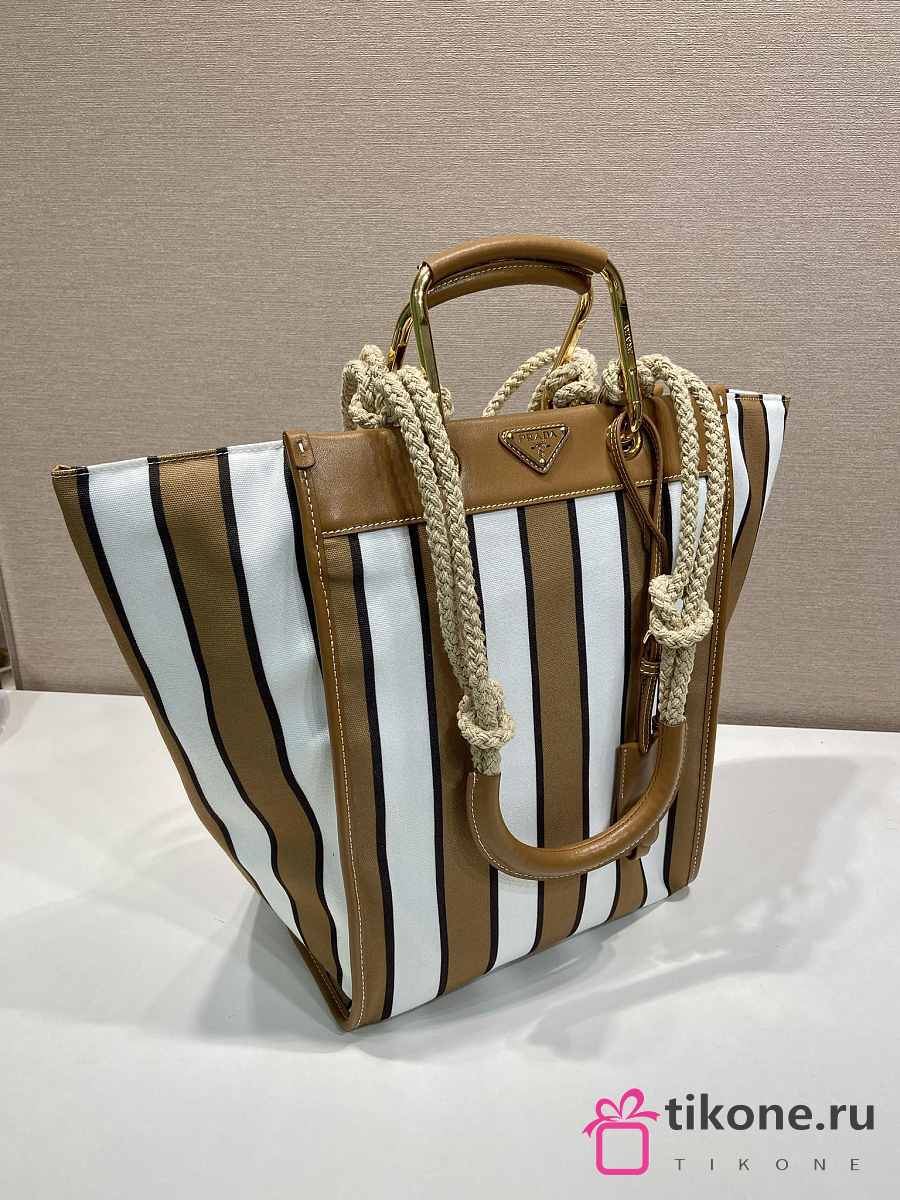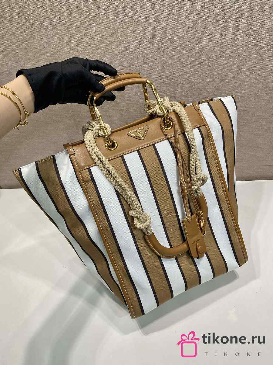 Prada Large Printed Canvas And Leather Tote Bag Camel/Caramel 1BG561 - 35x26x17cm