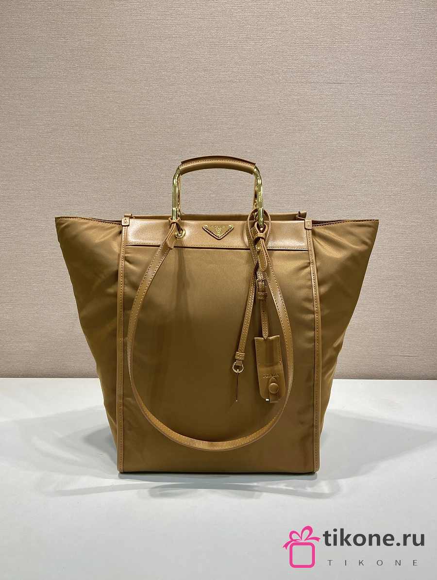 Prada Large Printed Canvas And Leather Tote Bag Caramel 1BG561 - 35x26x17cm