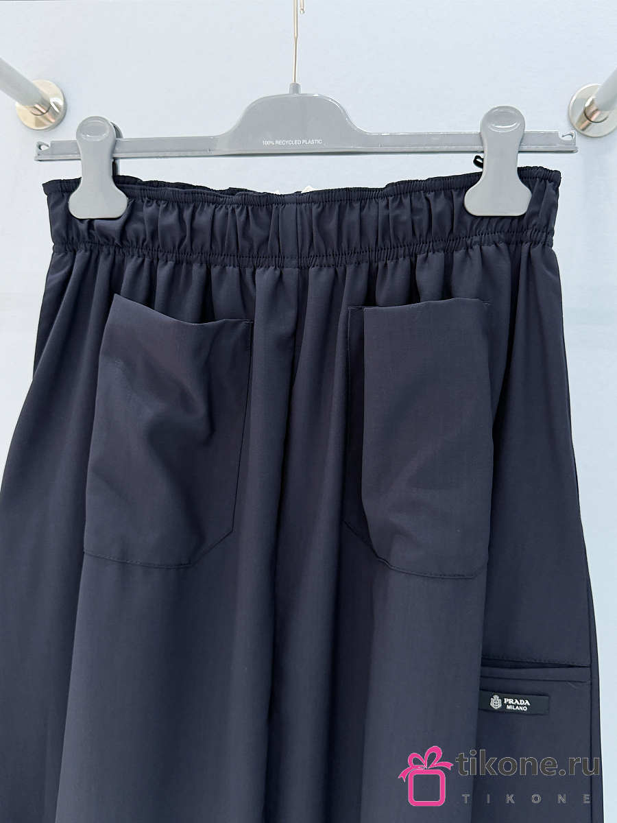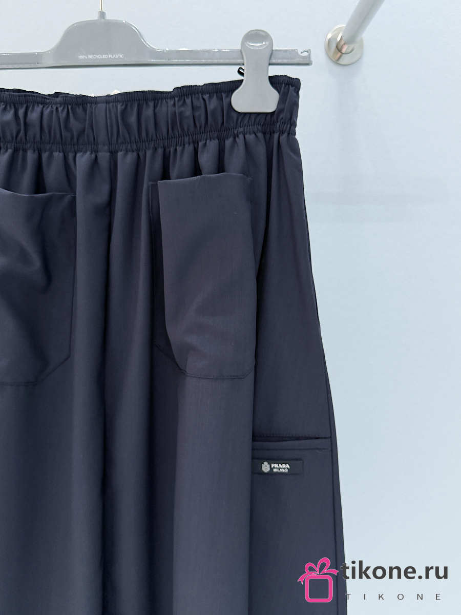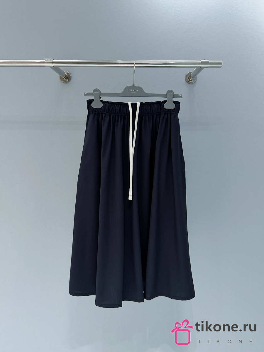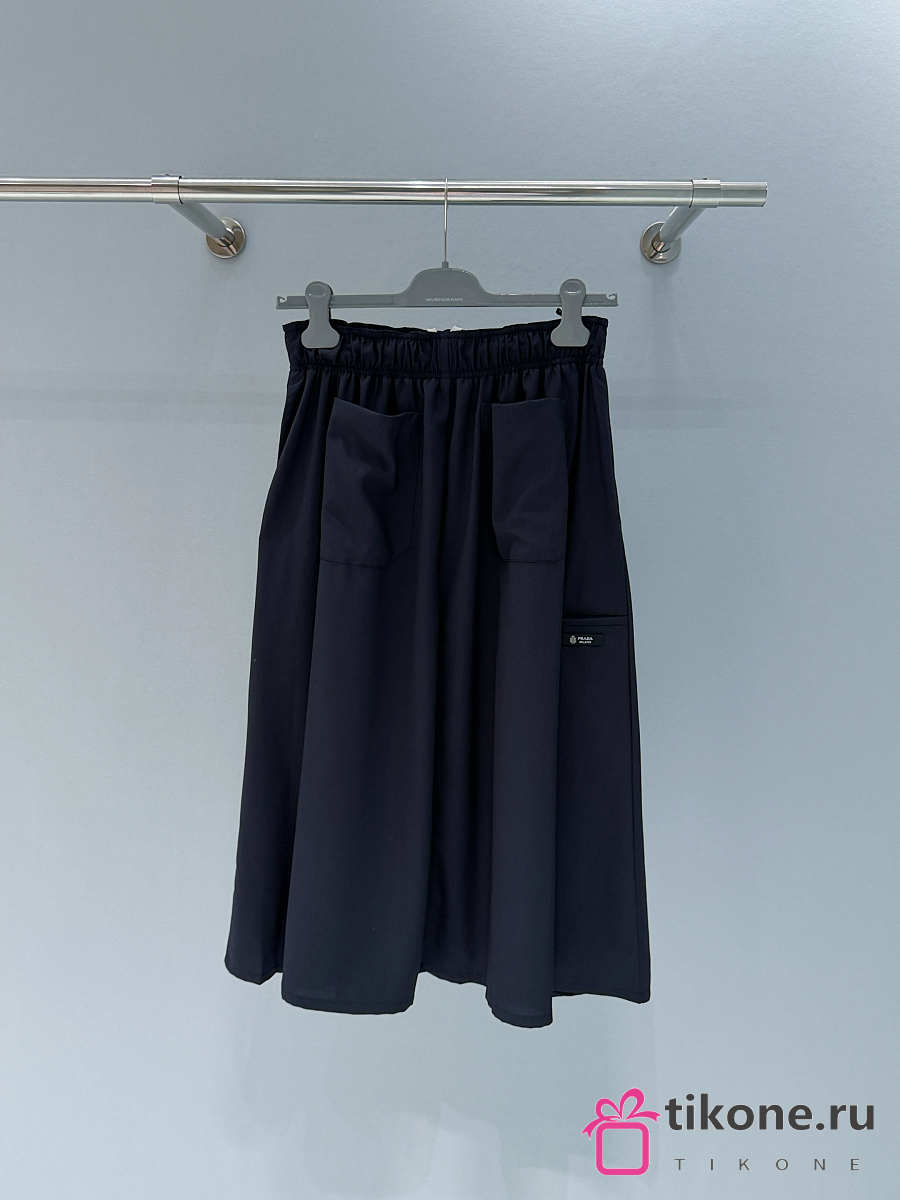 Prada Light Wool Midi-Skirt Navy P196Z
