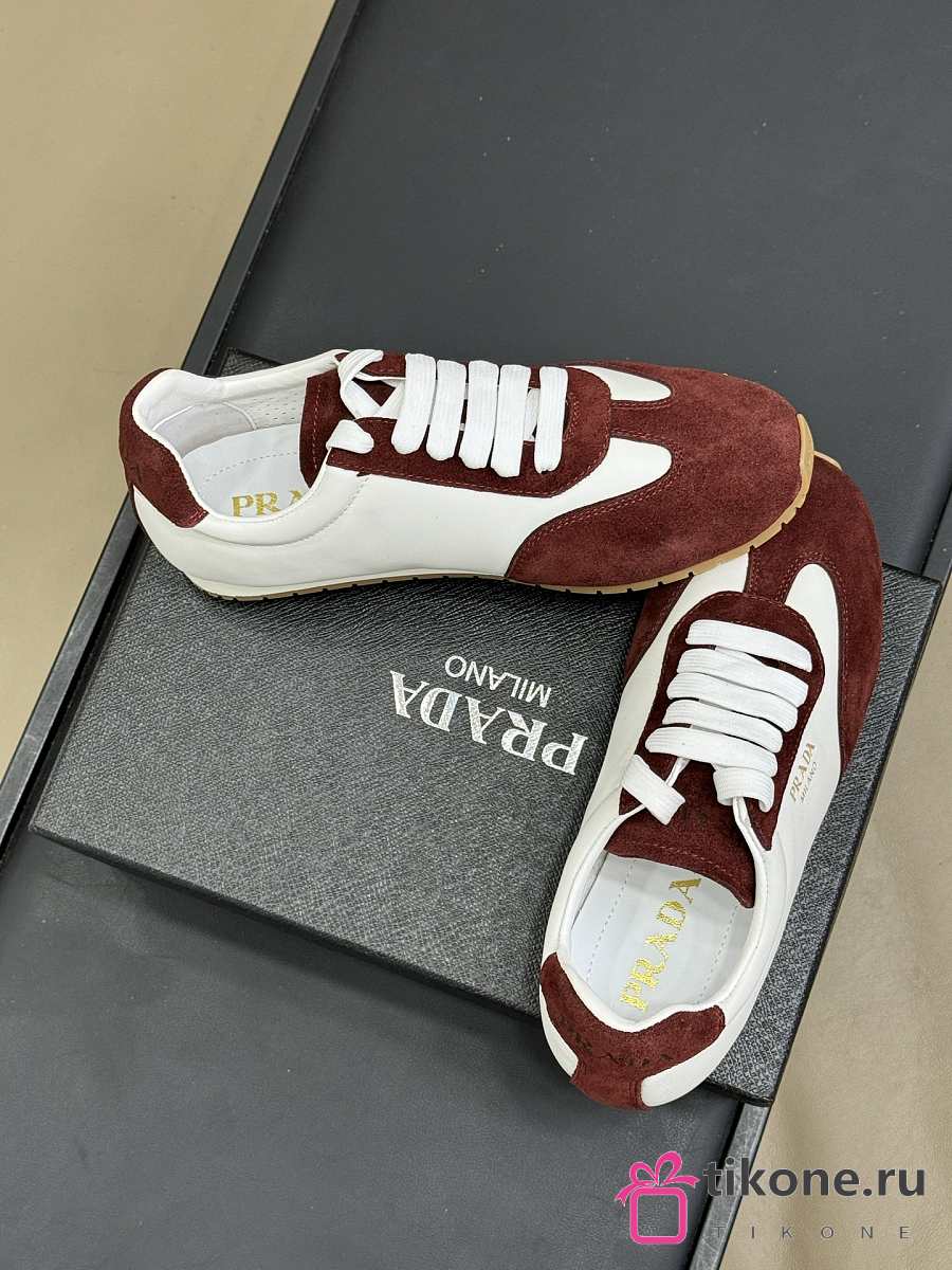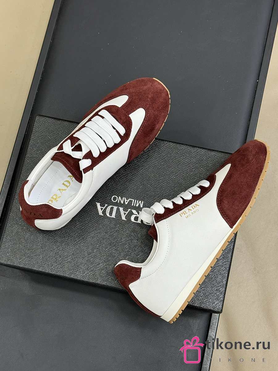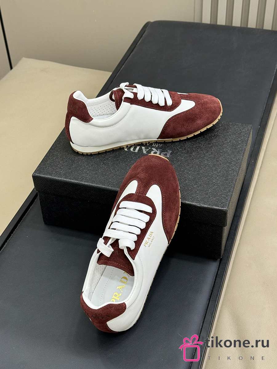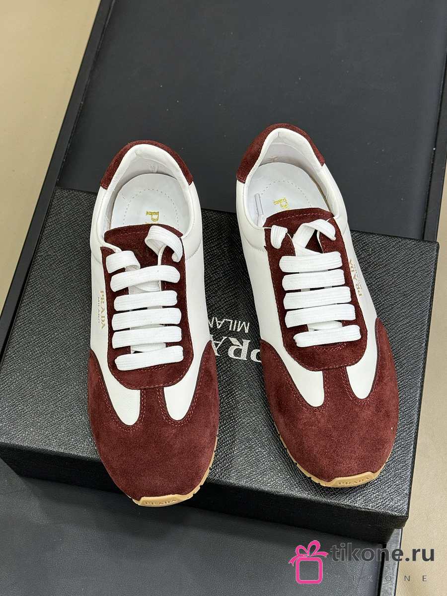 Prada Nappa Leather And Suede Sneakers Ivory/ Burgundy