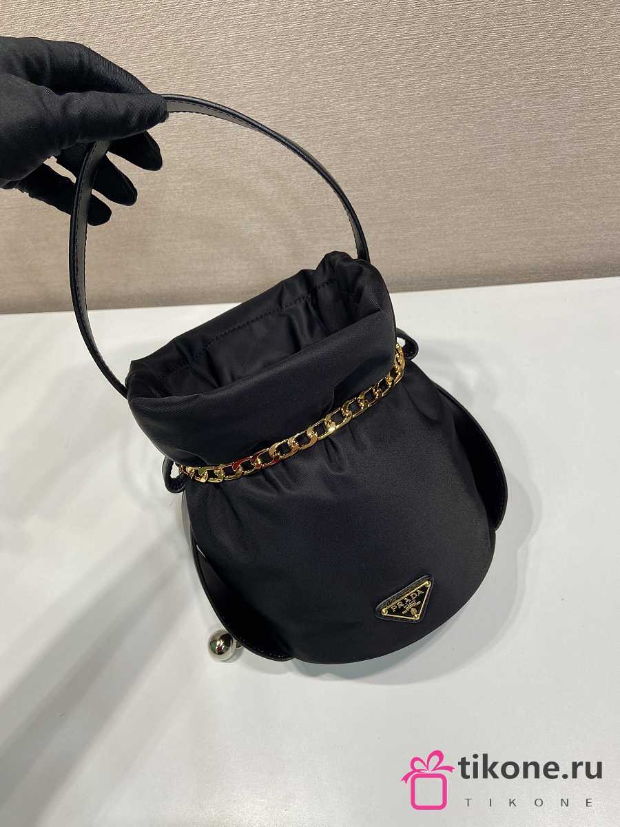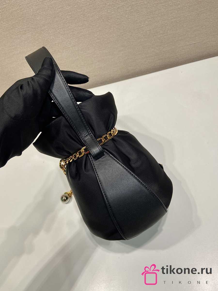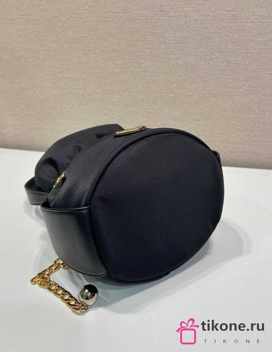 Prada Petit Sac Noir Mini Re-Nylon And Nappa Leather Bucket Bag Black 1BE088 - 10x15x6cm