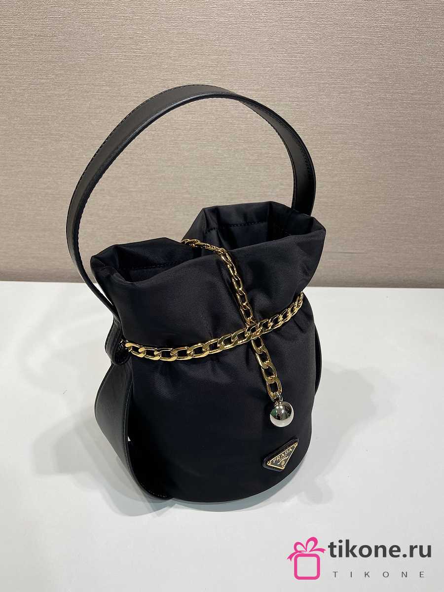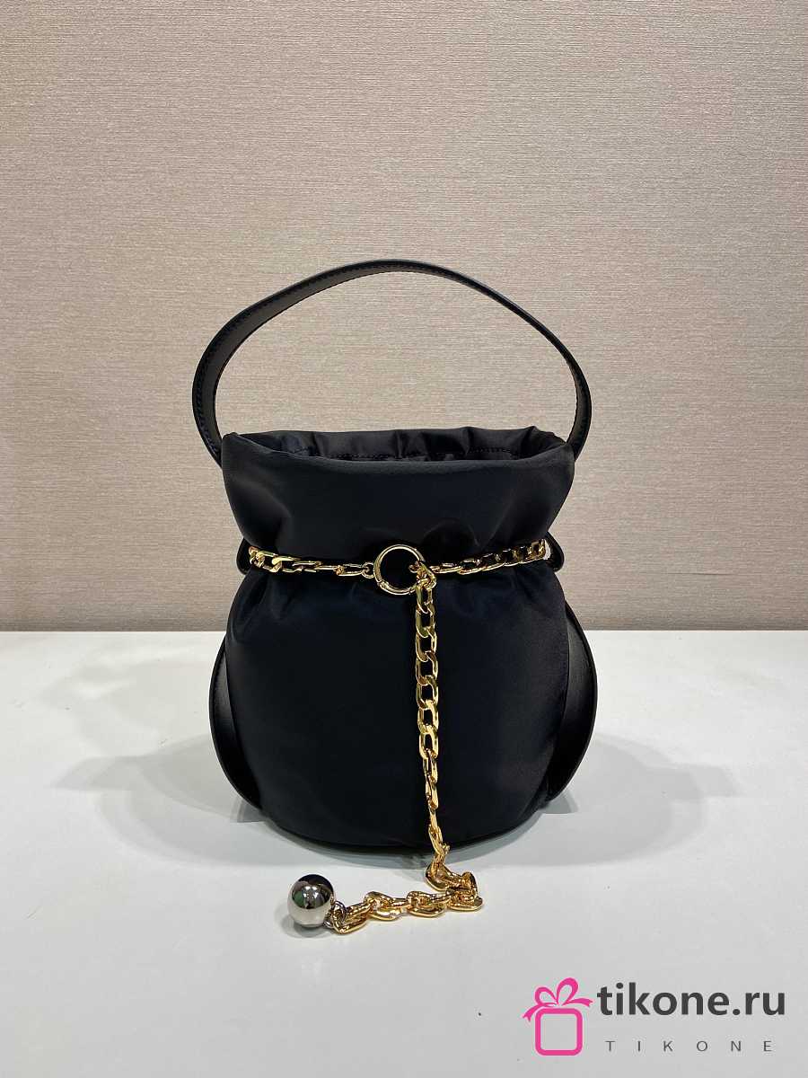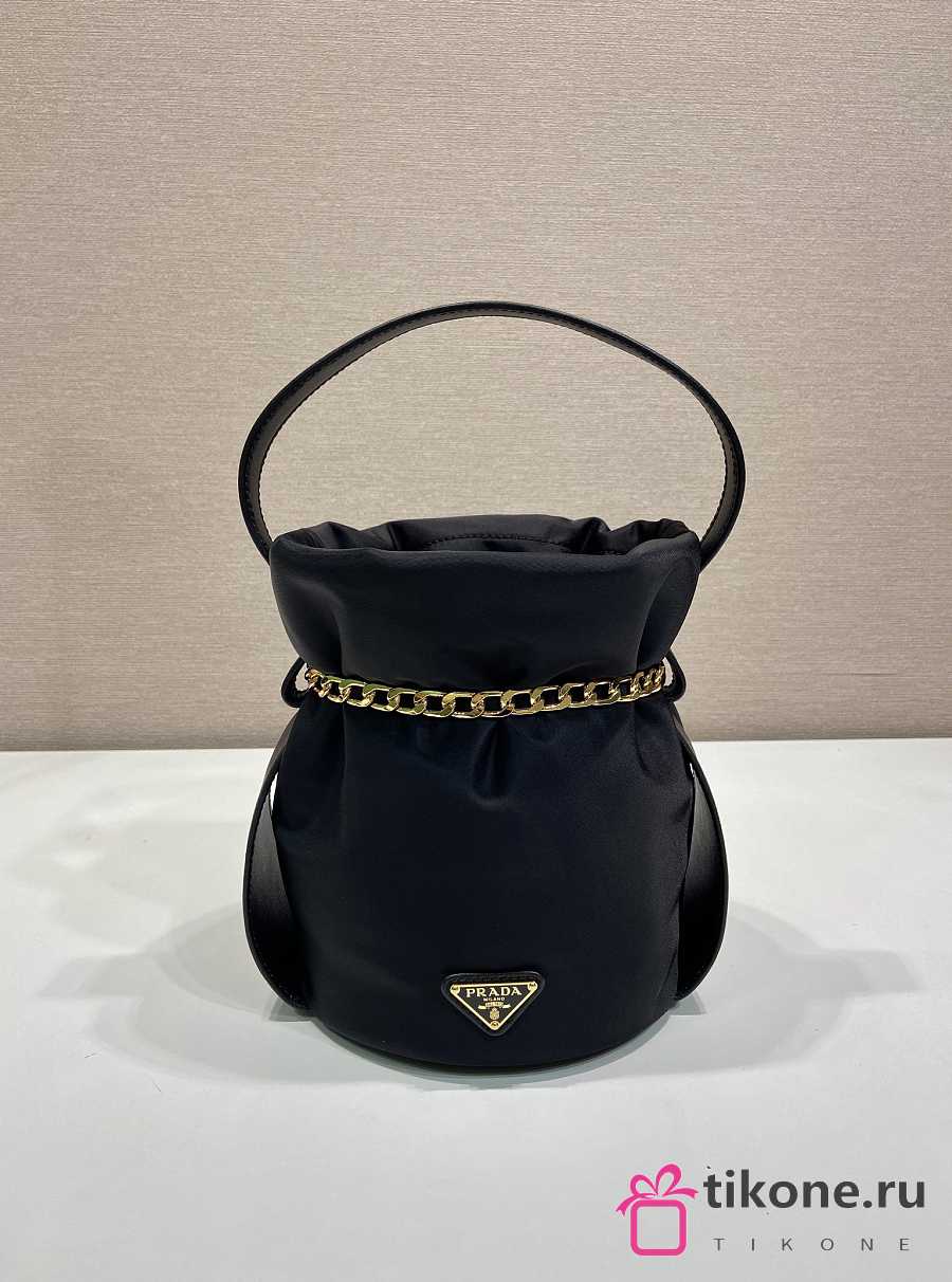 Prada Petit Sac Noir Mini Re-Nylon And Nappa Leather Bucket Bag Black 1BE088 - 10x15x6cm