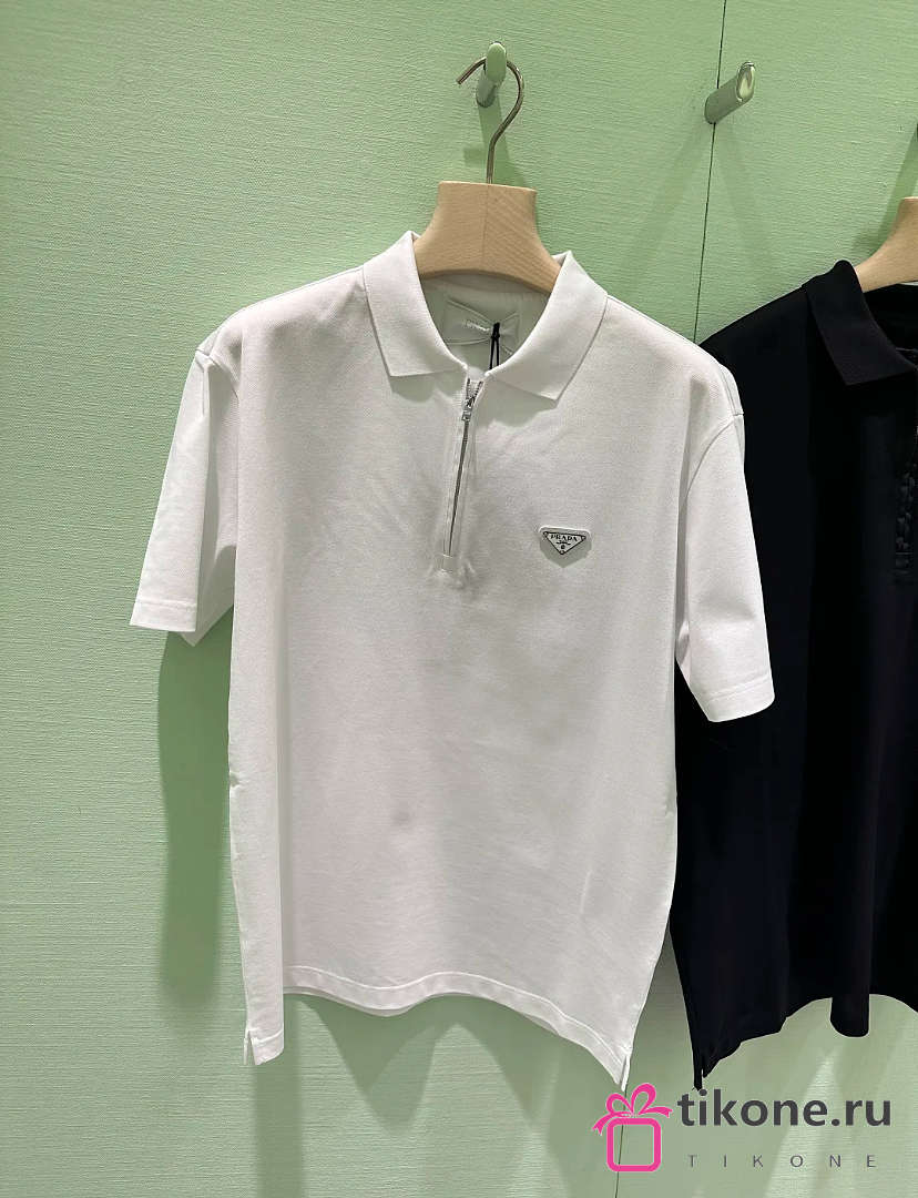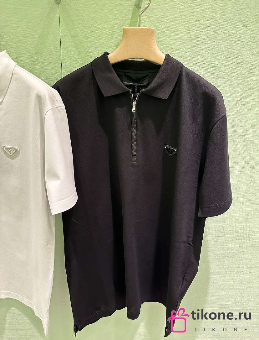Prada Piqué polo shirt with Re-Nylon details black/ white