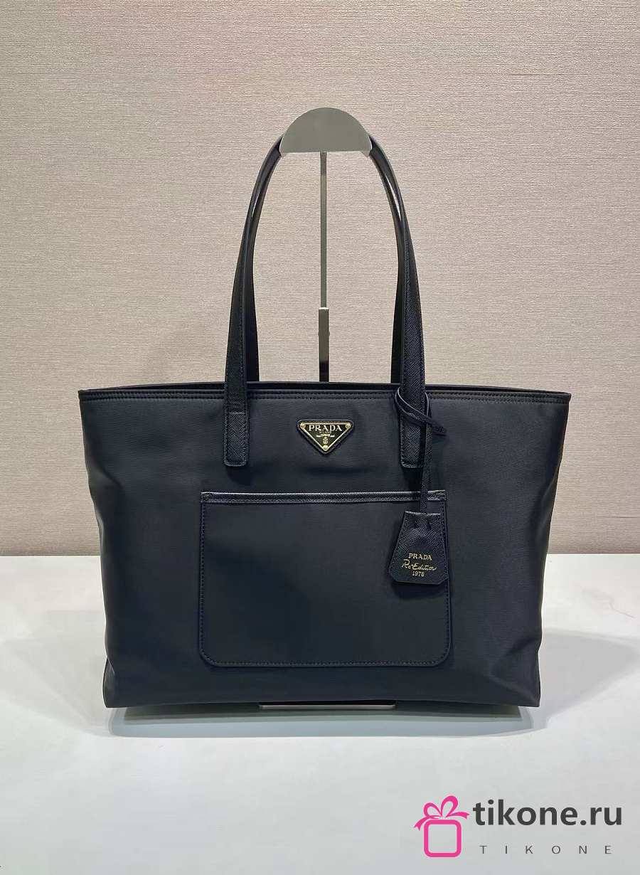 Prada Re-Edition 1978 Medium Re-Nylon And Saffiano Leather Tote Bag Black 1BG555 - 35x26x15cm