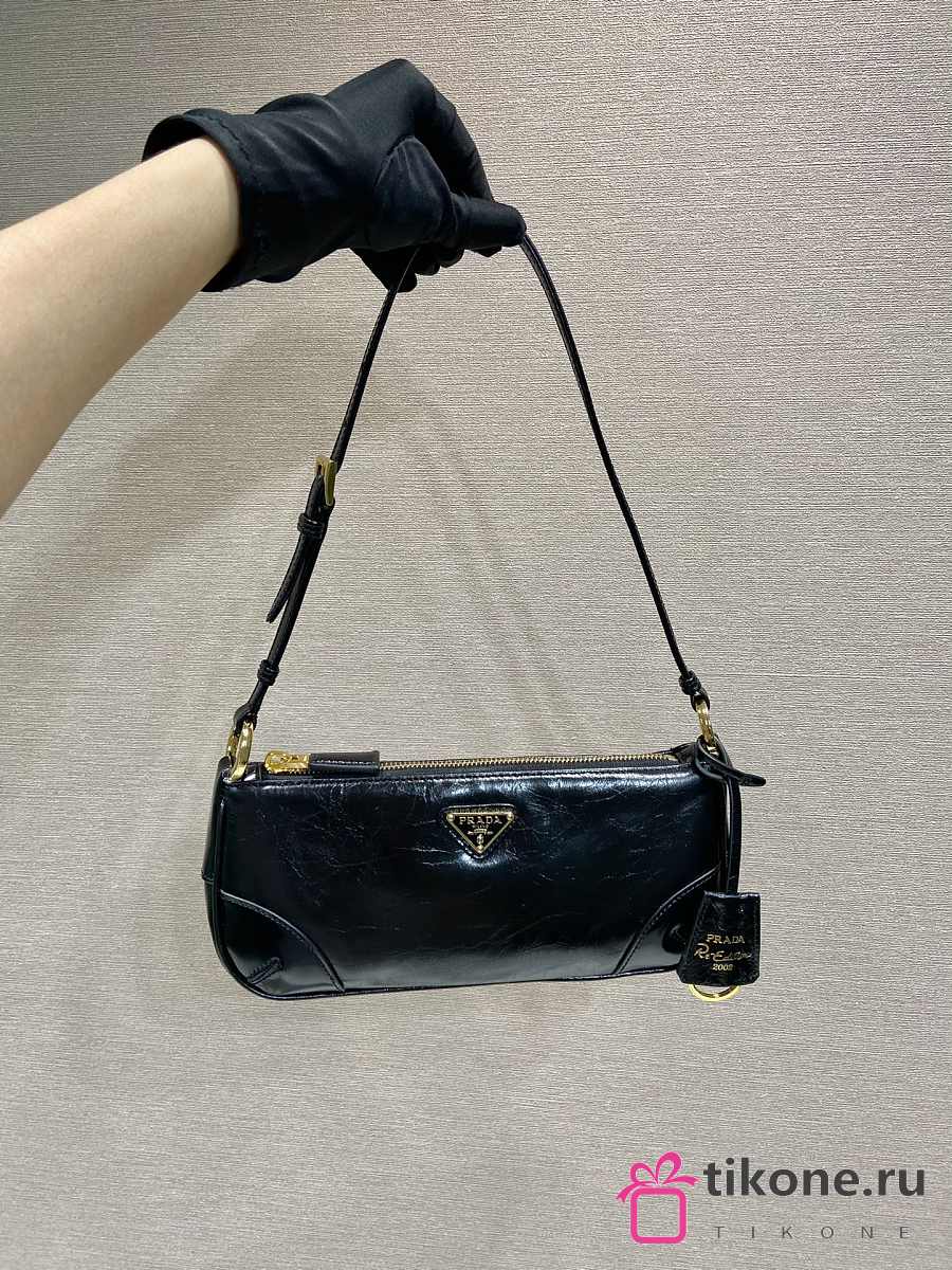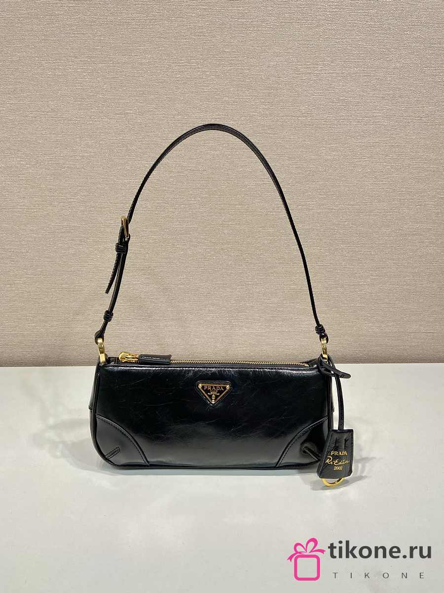 Prada Re Edition 2002 Medium Brushed Leather Shoulder Bag Black 1BC221 - 26x11.5x6cm