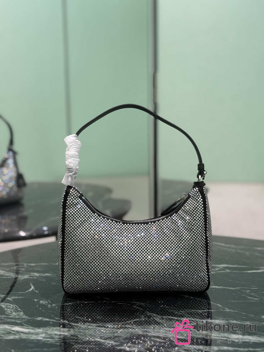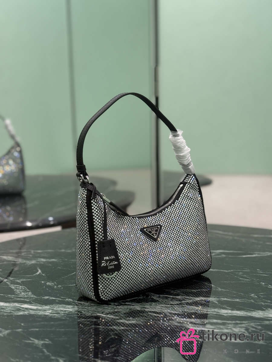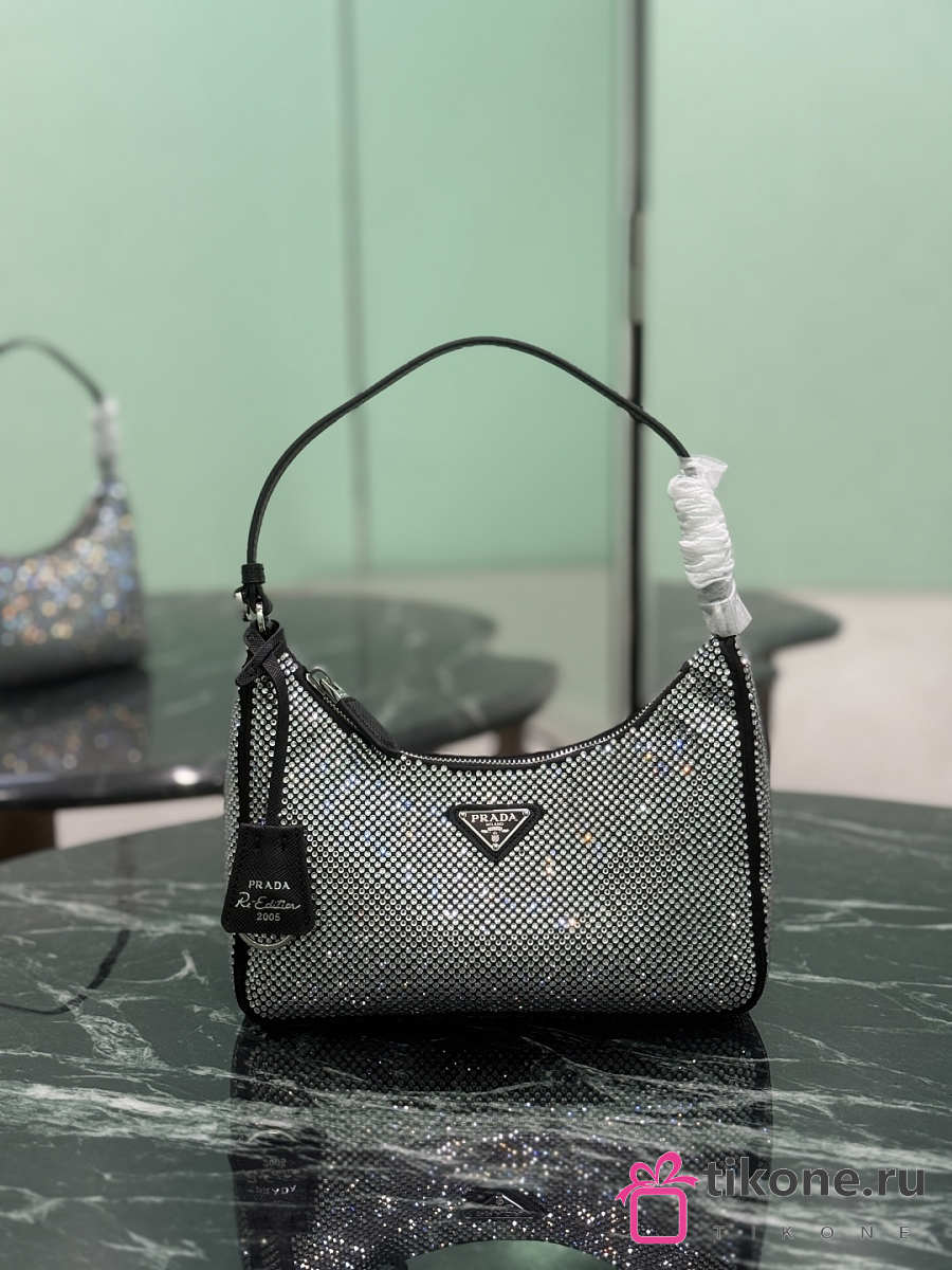 Prada Re-Edition 2005 Mini Crystal Studded Satin Bag Crystal 1BC204 - 22x18x6cm