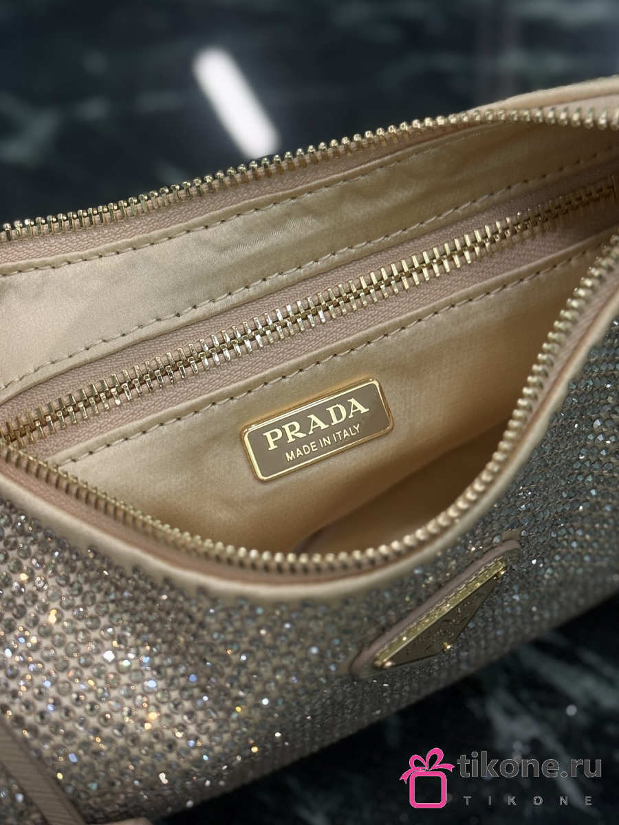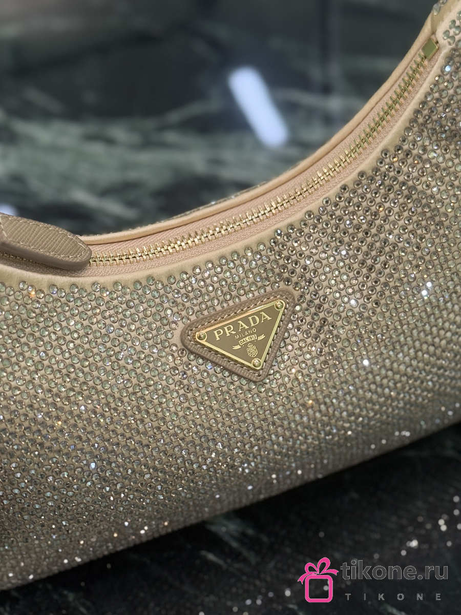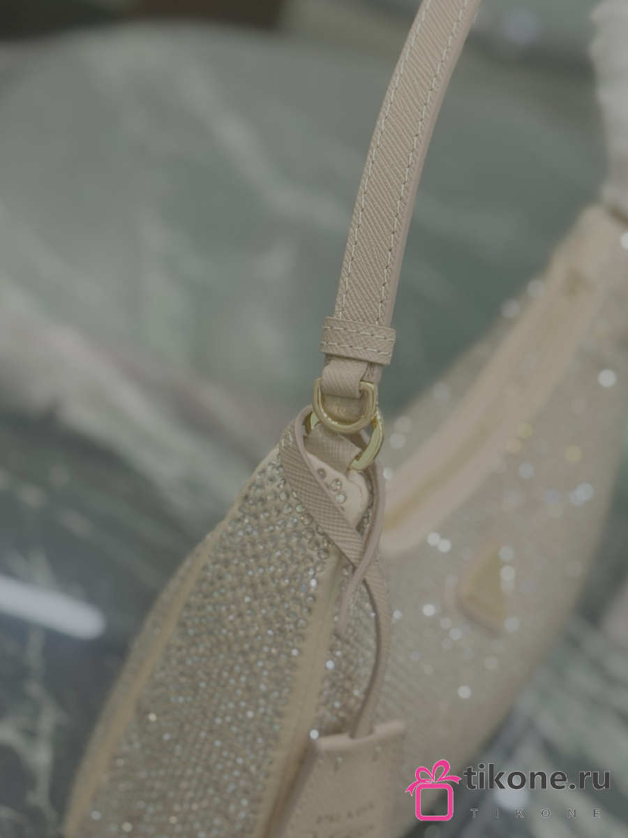 Prada Re-Edition 2005 Mini Crystal Studded Satin Bag Sand Beige 1BC204 - 22x18x6cm