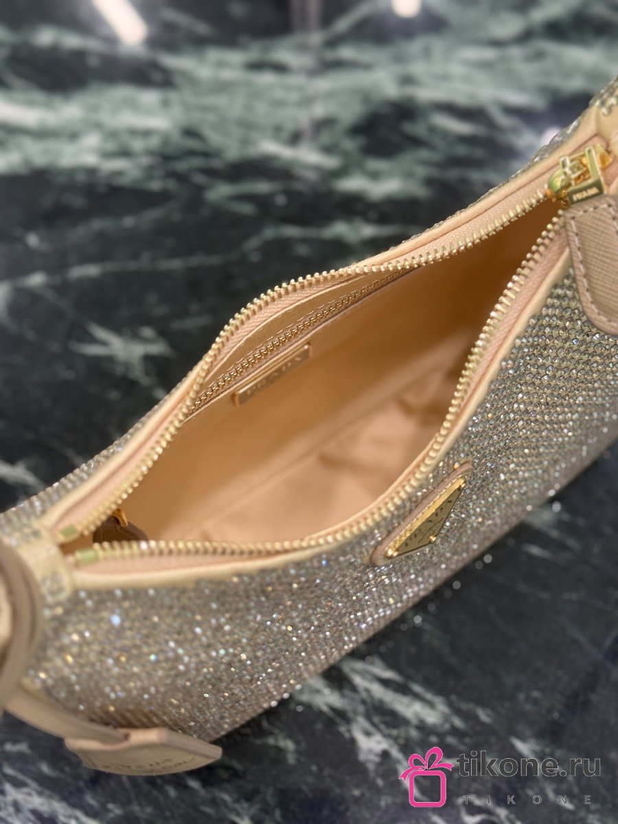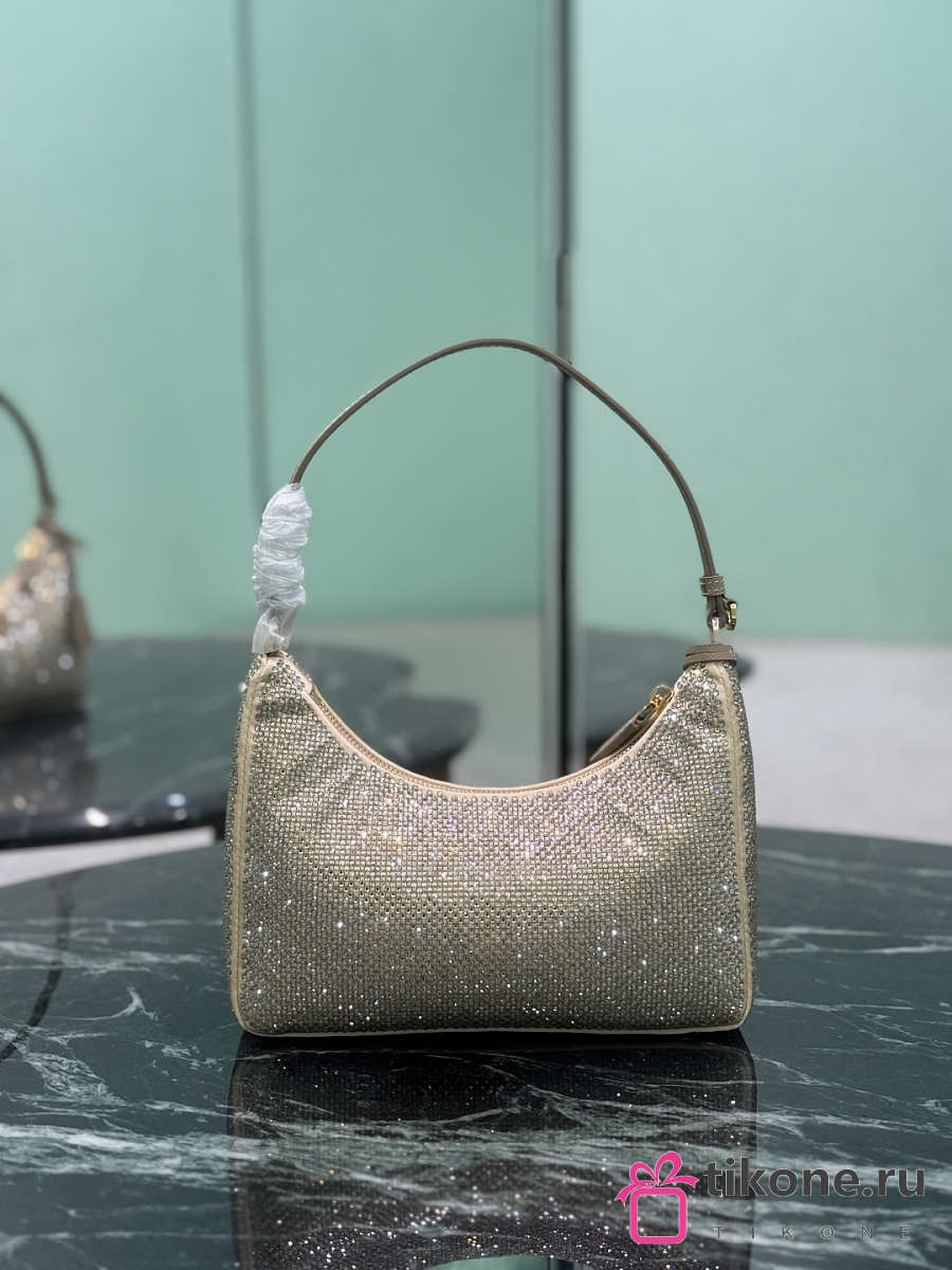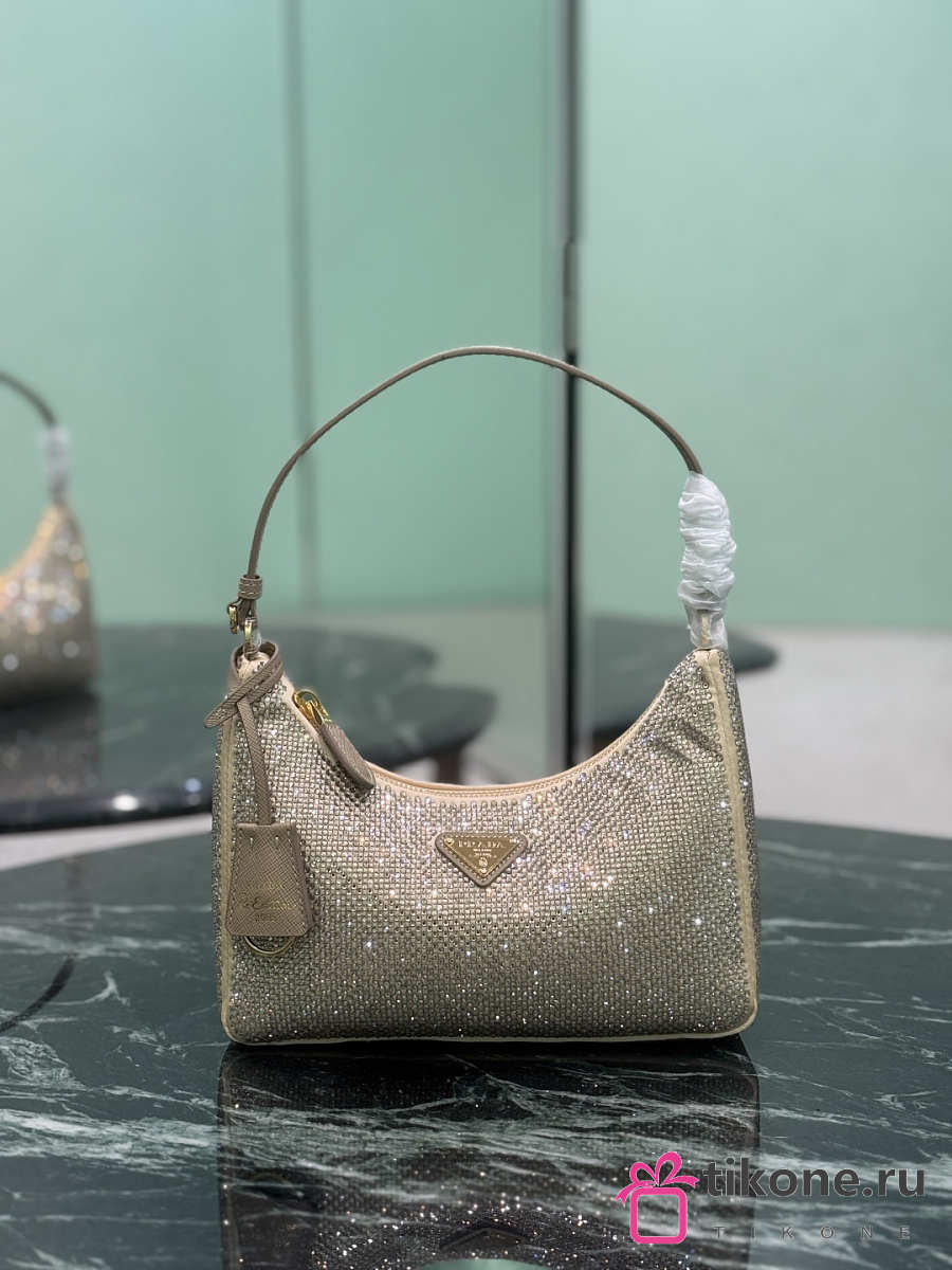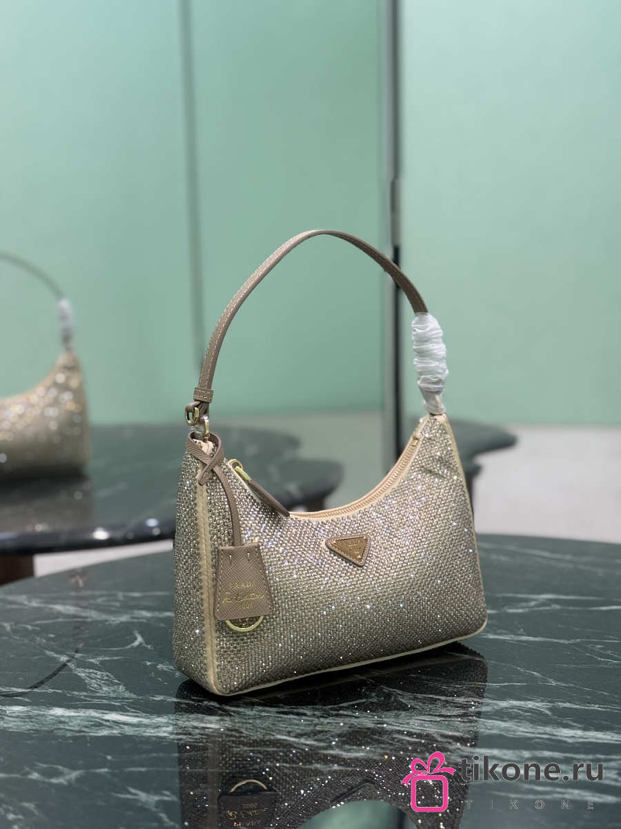 Prada Re-Edition 2005 Mini Crystal Studded Satin Bag Sand Beige 1BC204 - 22x18x6cm